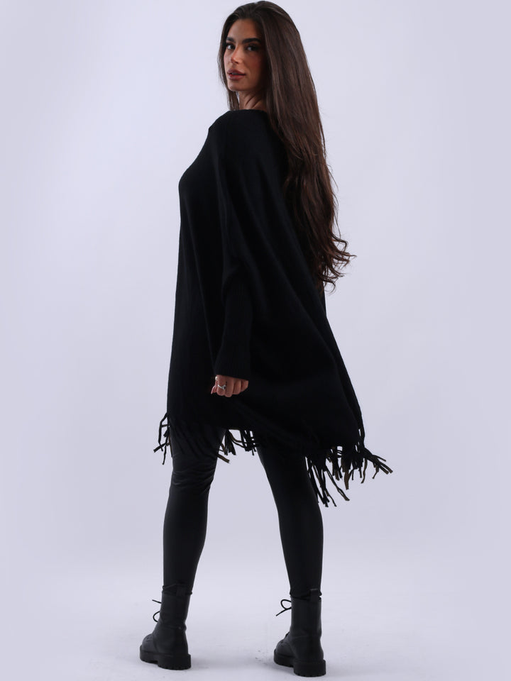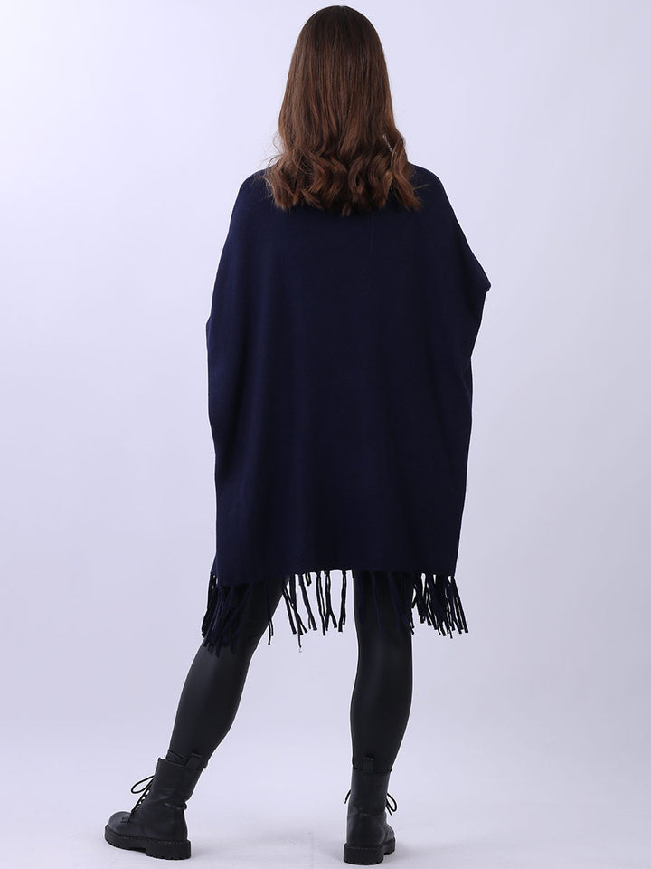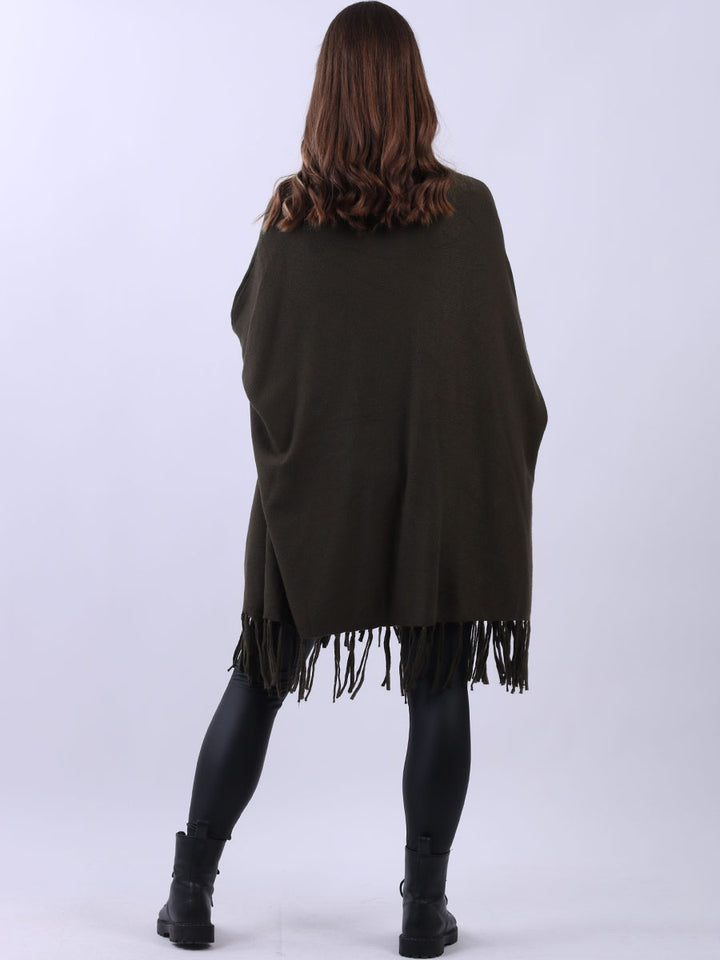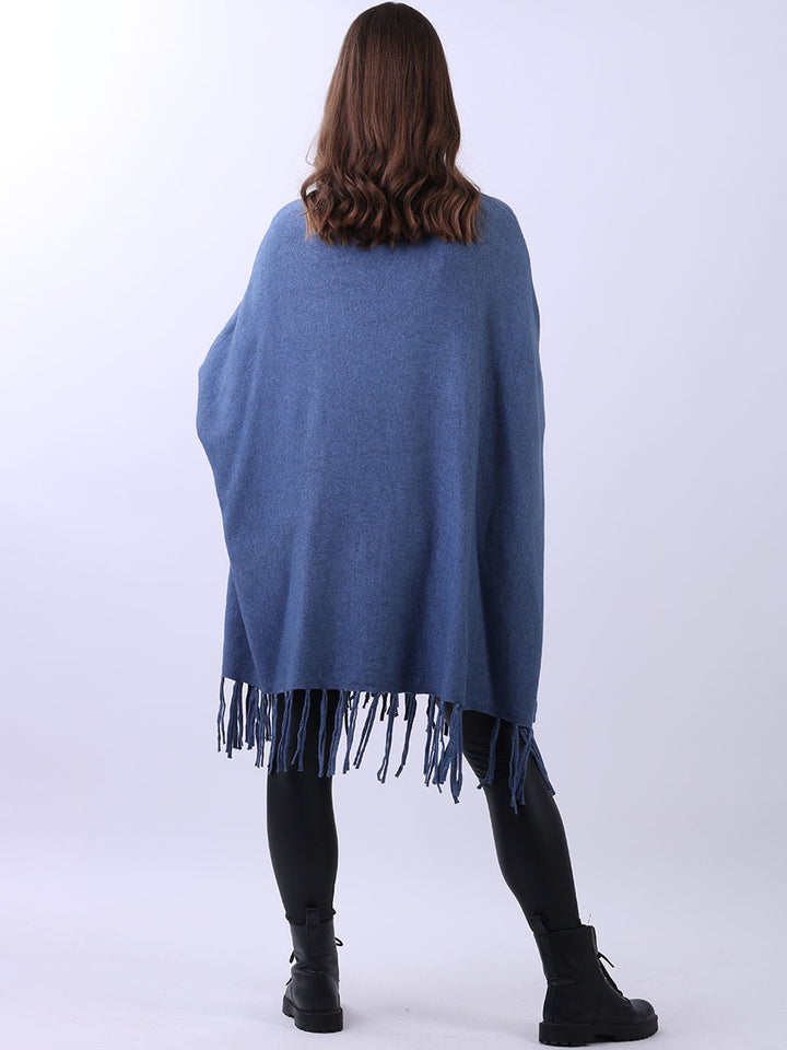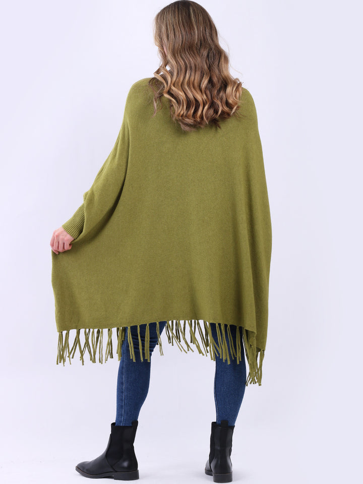 Luxurious and plush look with authentic and high quality fabric blend Redwholesale creates classy finishes. Made in Italy and wardrobe must have for women wearers the adorable fringe gives it an adventurous finish to the knitted poncho. Layer it over wide leg pants and block heels.