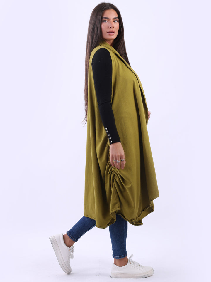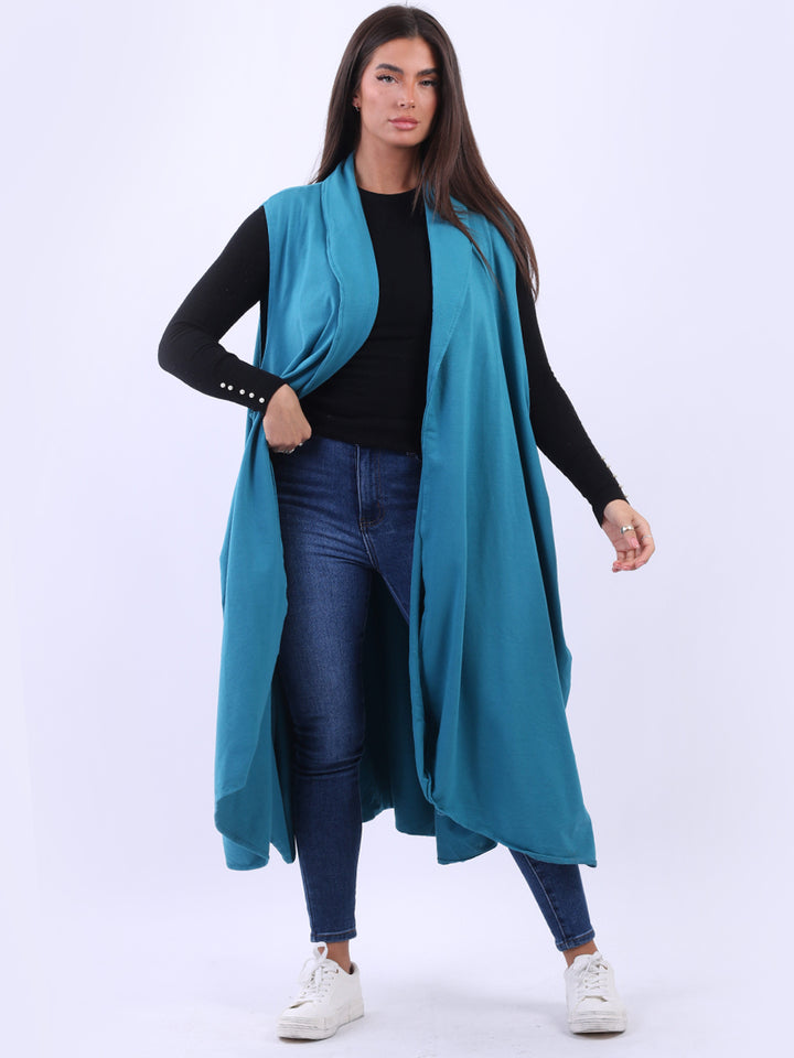 Essential and authentic Italian women most loved fabric this is the style that carries its charm forever. Made in Italy with soft and natural cotton, the sleeveless cotton jacket is ideal for adding a personal touch or uniqueness to the final look. Wide formal lapels and oversized fit all are highly on-trend. Layer over Redwholesale crochet net sheer tops and skinny denims.