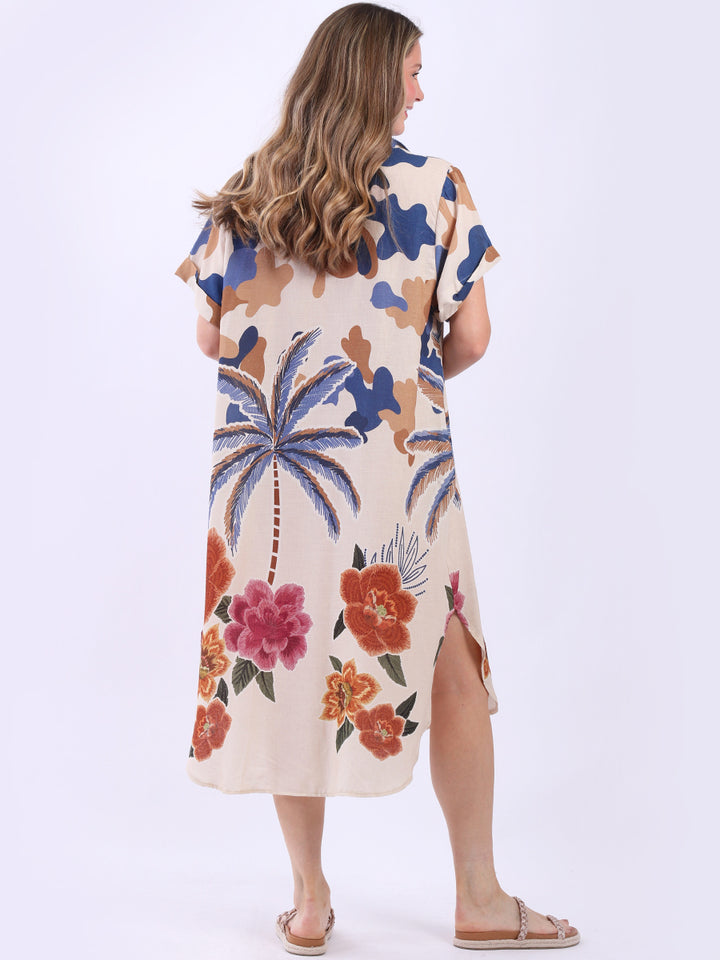 This digital printed lagenlook linen dress is perfect for welcoming the cool breeze of fall. For those who celebrate the airy comfort paired with eye-catching aesthetics, this dress offers a loose fit, short sleeves, side pockets and a collared neck, that can never go unnoticed, when ladies step out.