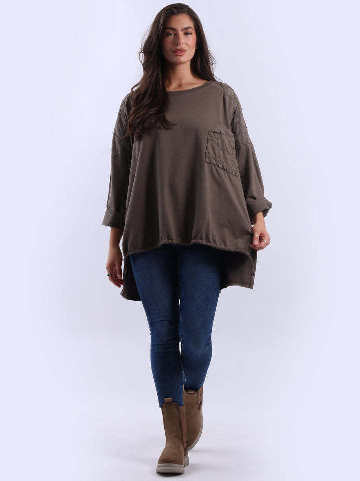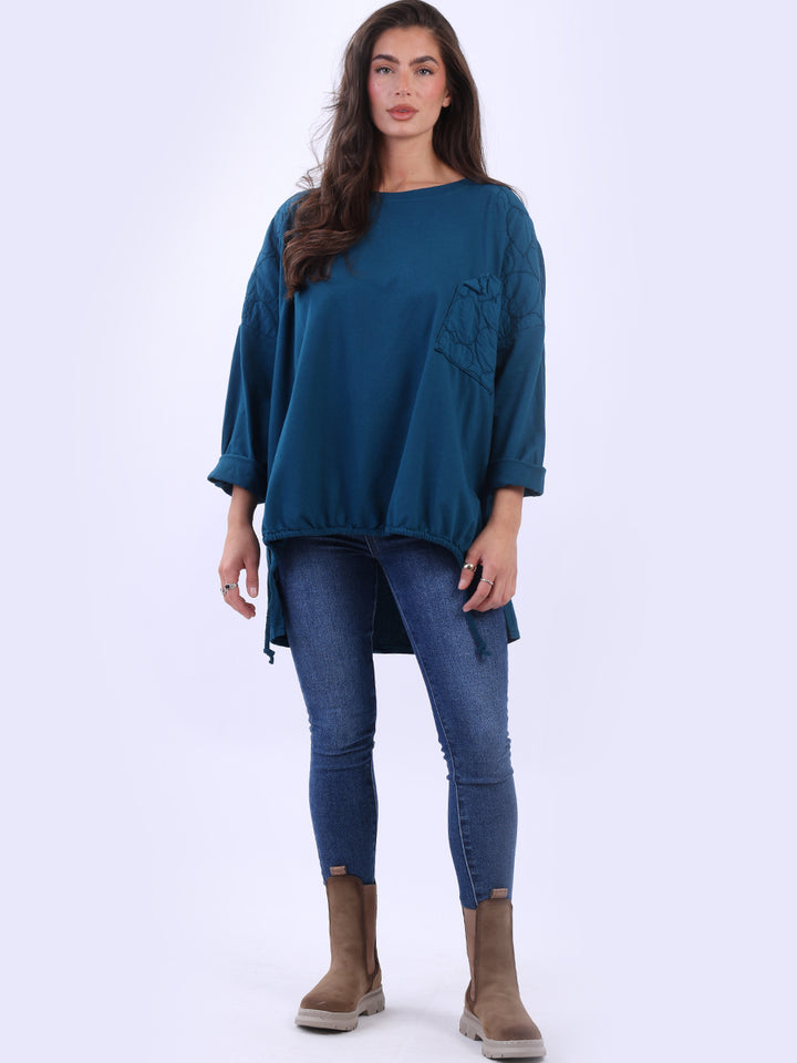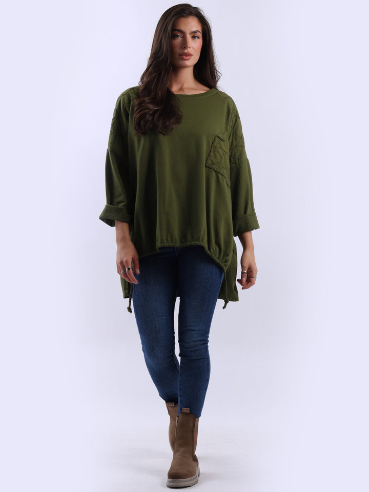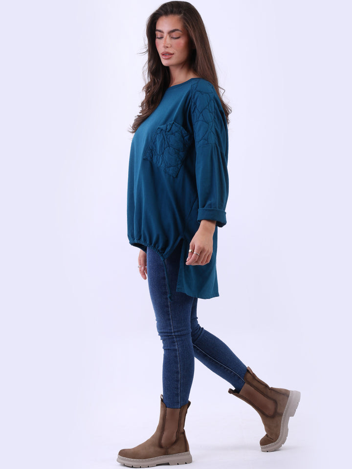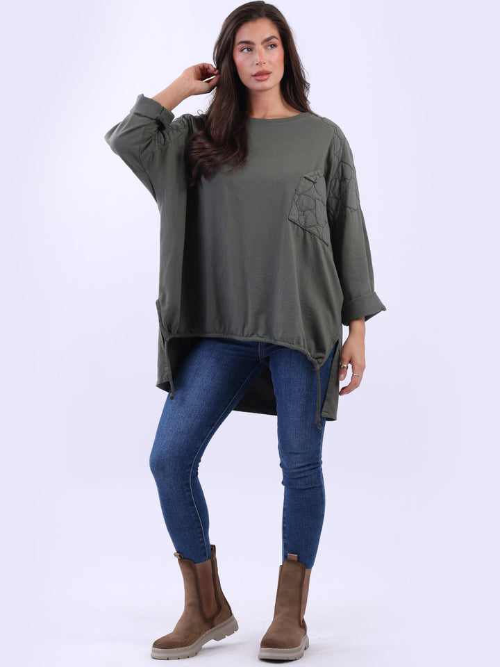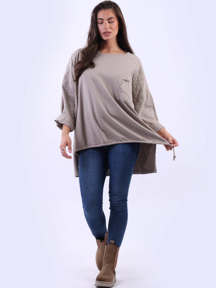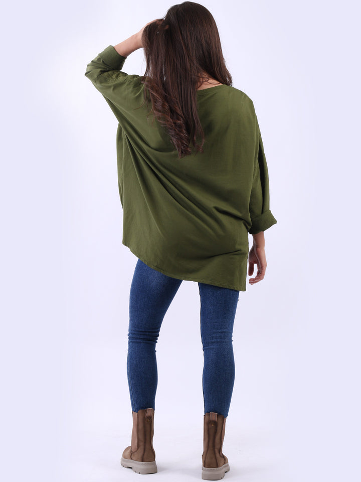 Crafted with precision in Italy, this plus size batwing cotton top is what women wearers desire in their seasonal wardrobe. Boasting delicate embroidered sleeves and front pocket, this top is scene-stealing. Perfect for casual events, it features a boat neck, drop shoulders and drawstring gathered hem, that makes it stunning and eye-catching.