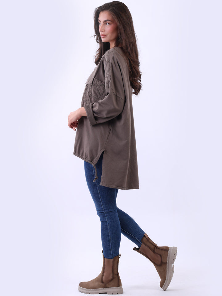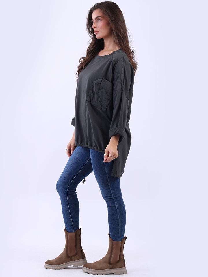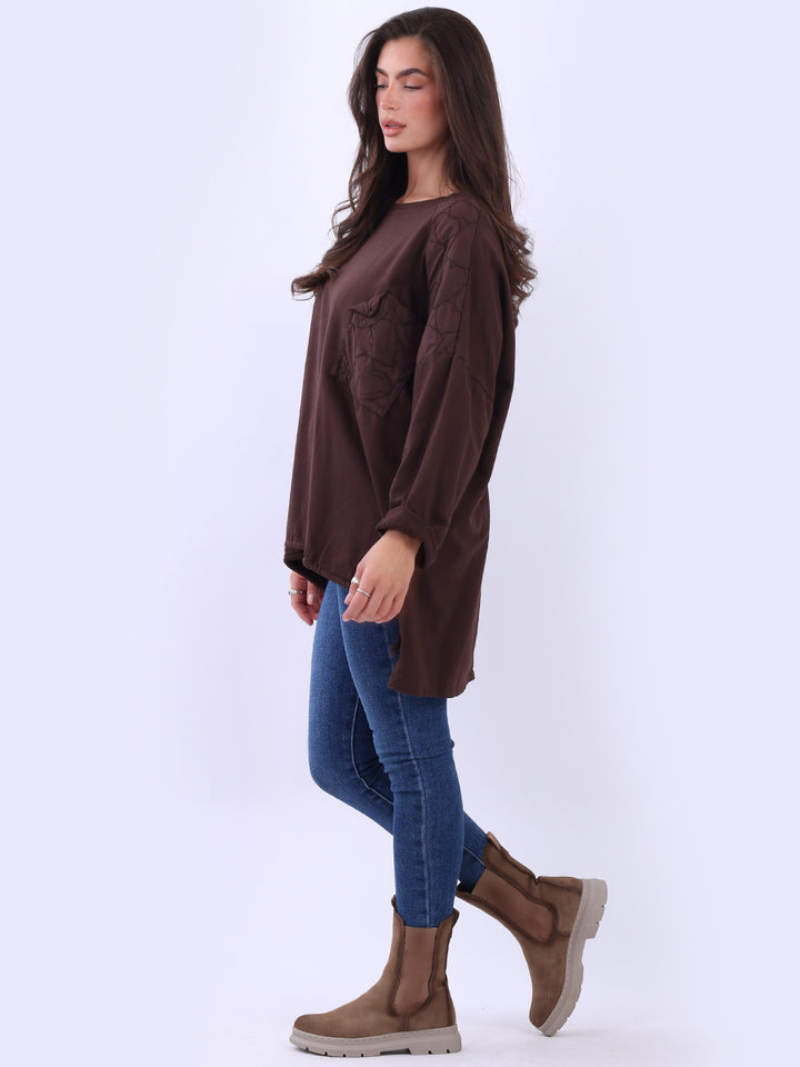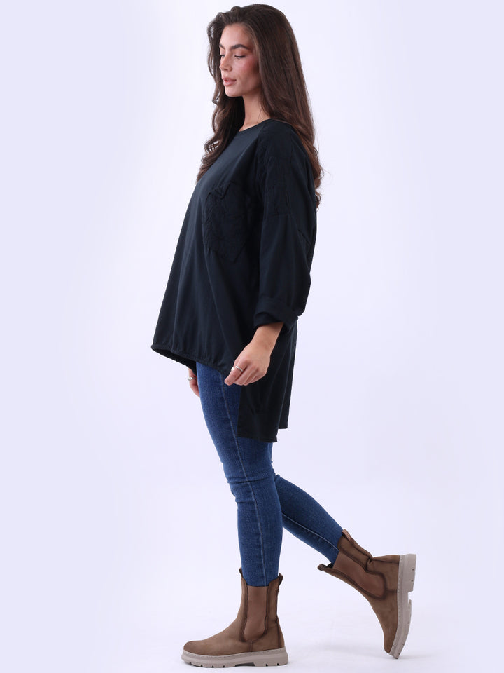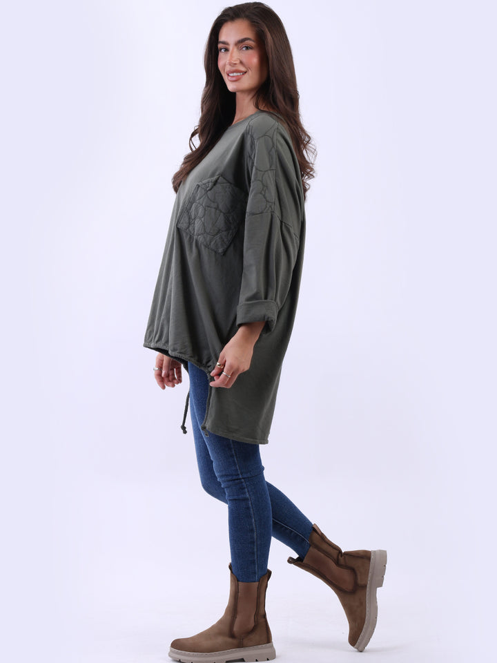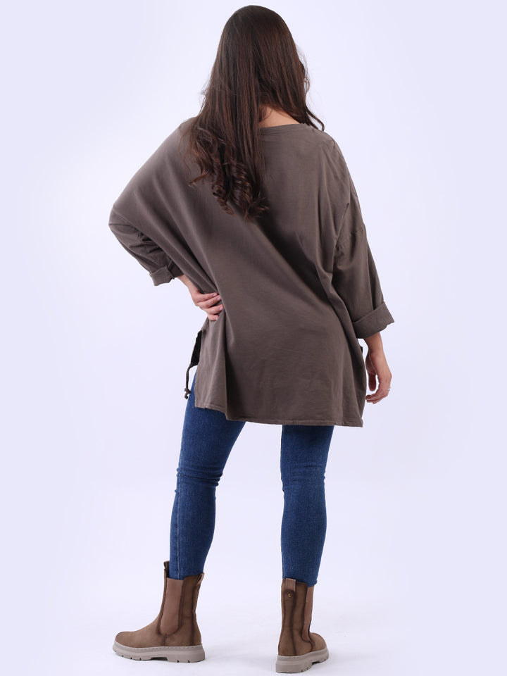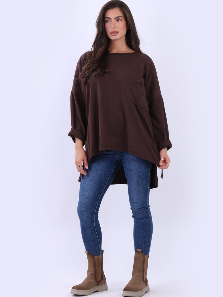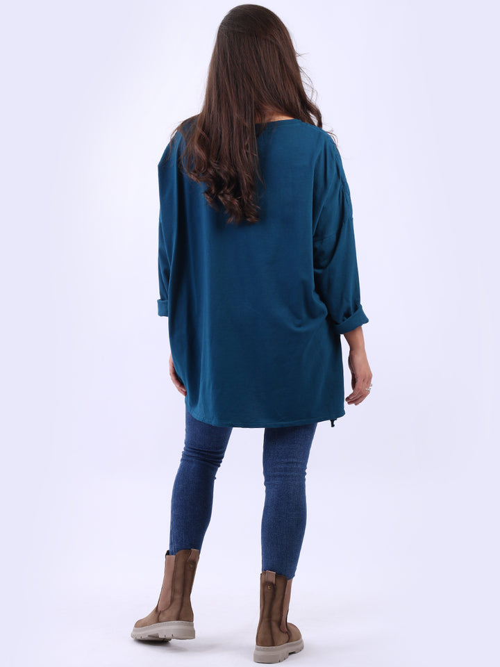 Crafted with precision in Italy, this plus size batwing cotton top is what women wearers desire in their seasonal wardrobe. Boasting delicate embroidered sleeves and front pocket, this top is scene-stealing. Perfect for casual events, it features a boat neck, drop shoulders and drawstring gathered hem, that makes it stunning and eye-catching.