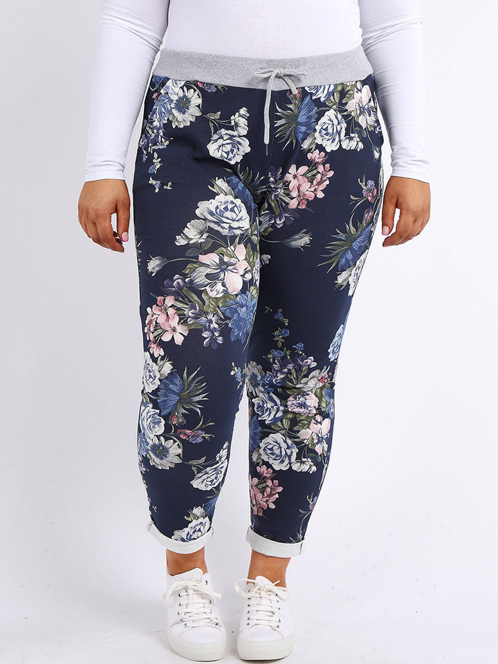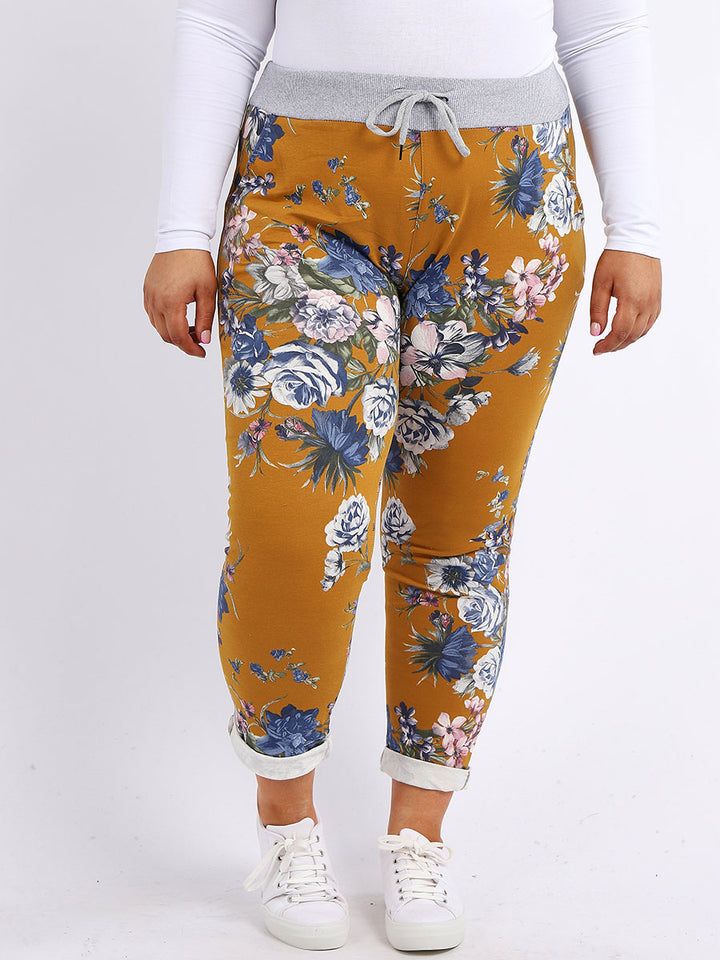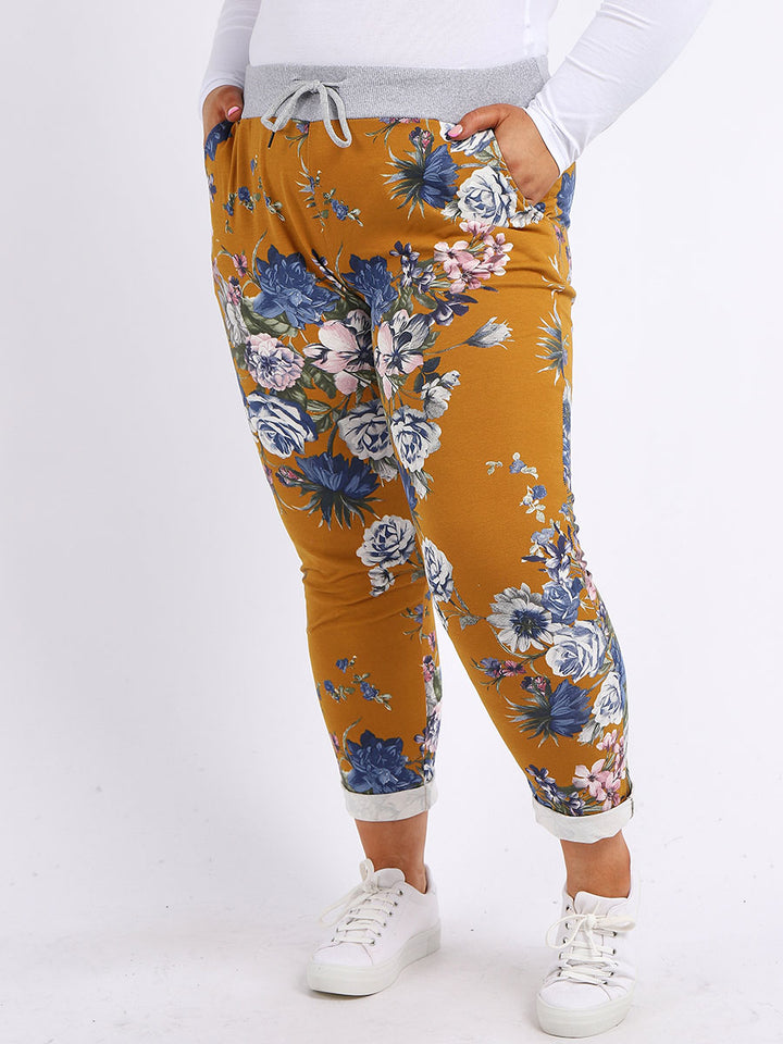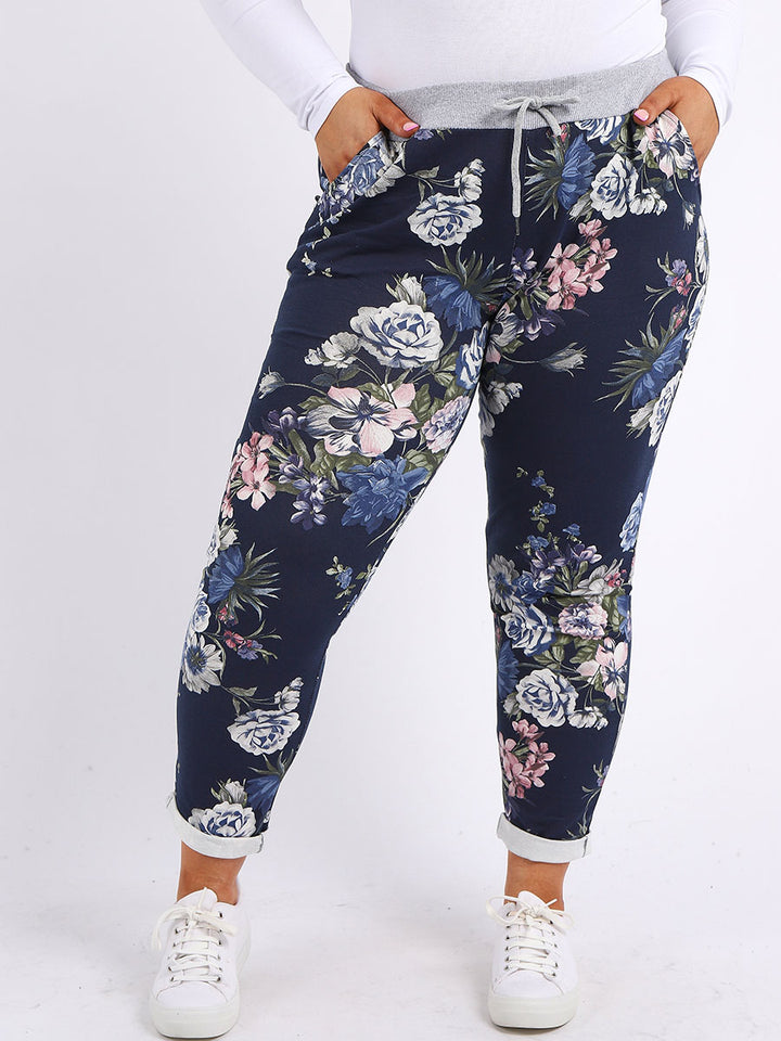 Plus Size Floral Print Side Pockets Ladies Cotton Trouser