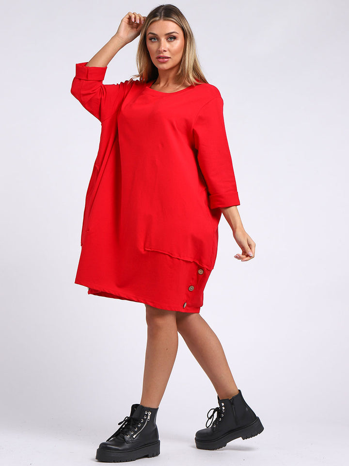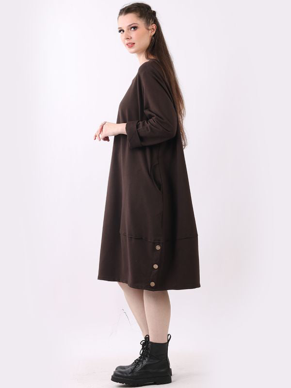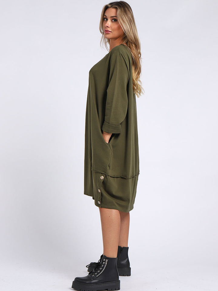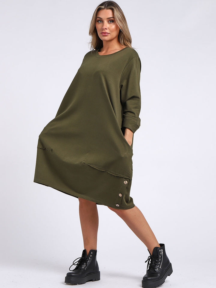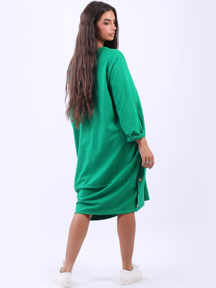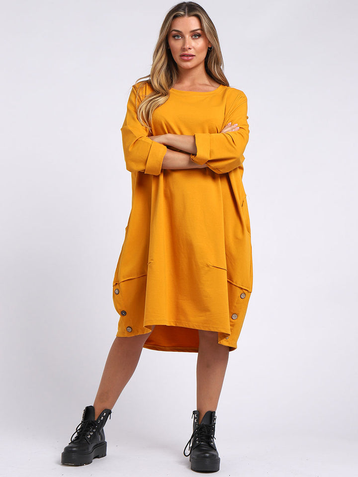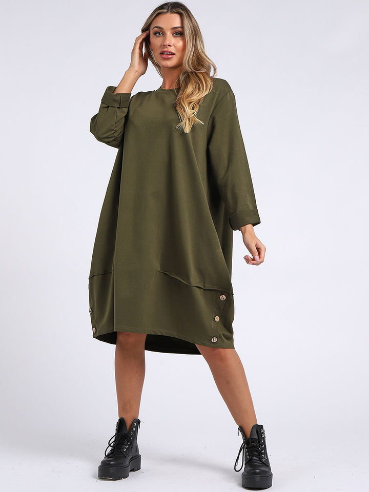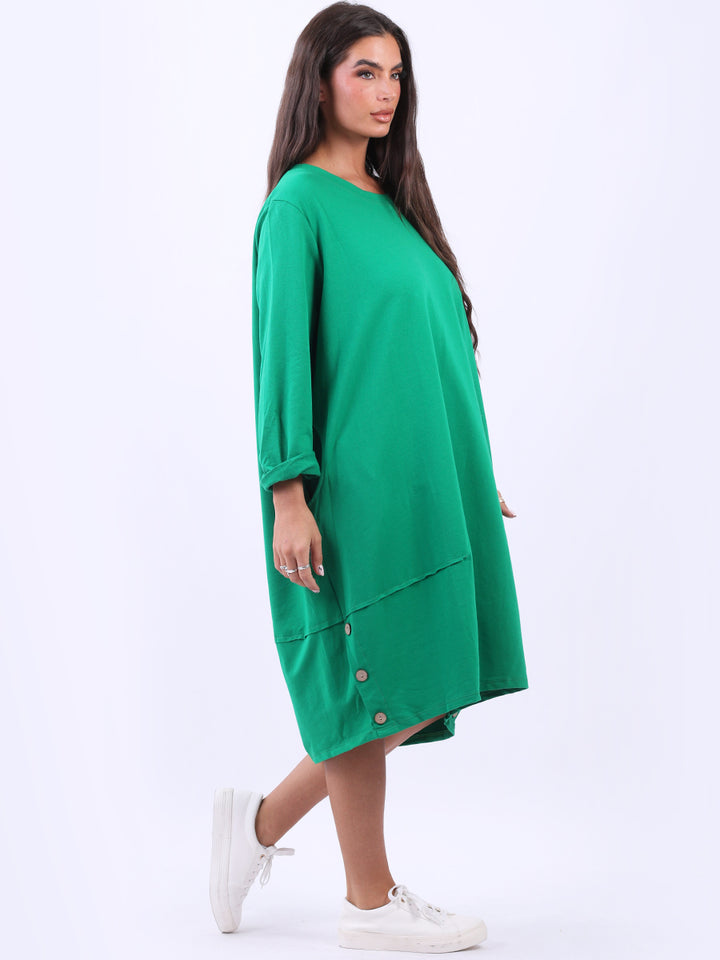 Plus Size Plain Buttoned Hem Cotton Lagenlook Slouch Dress