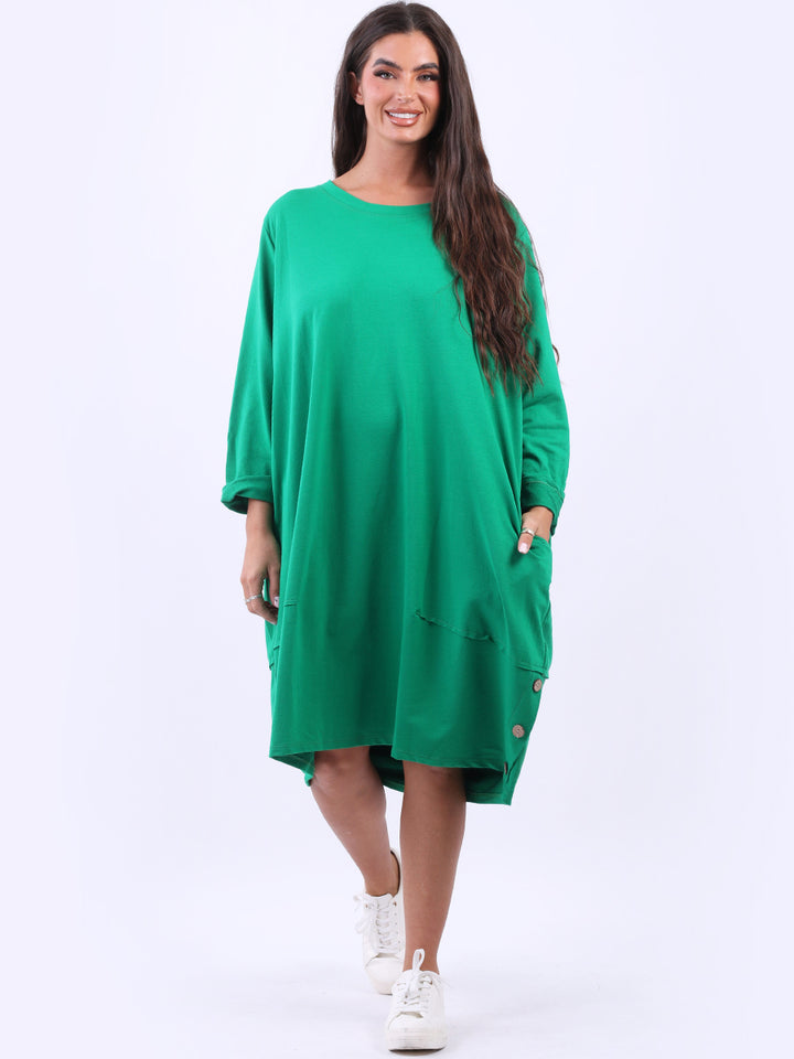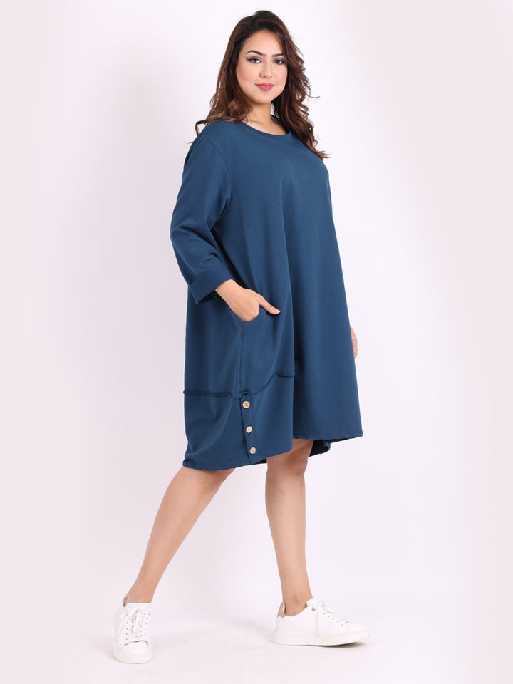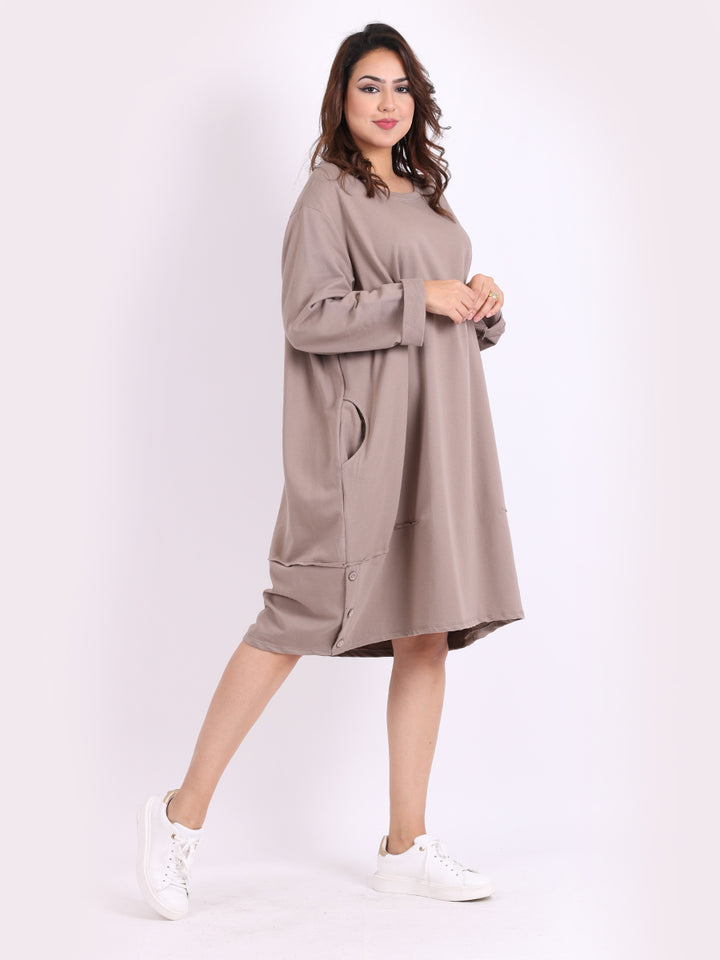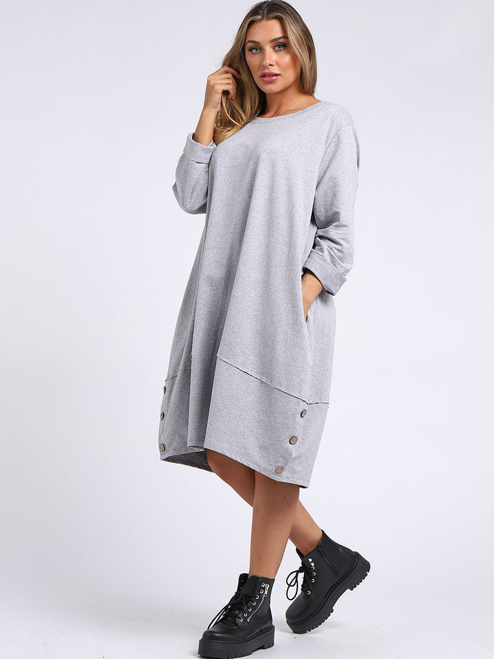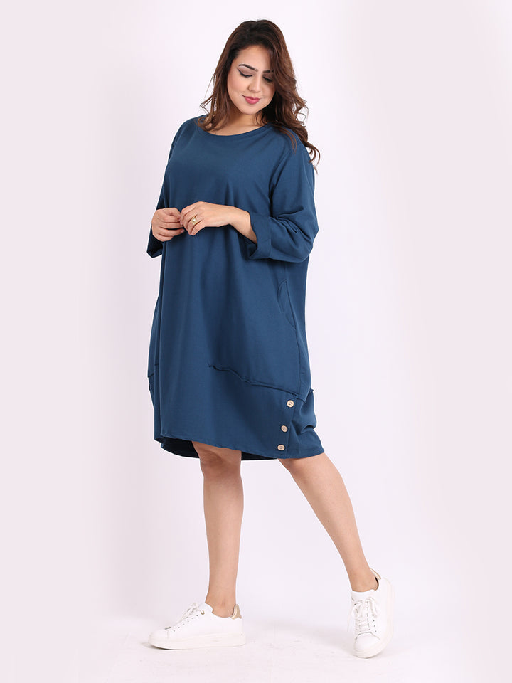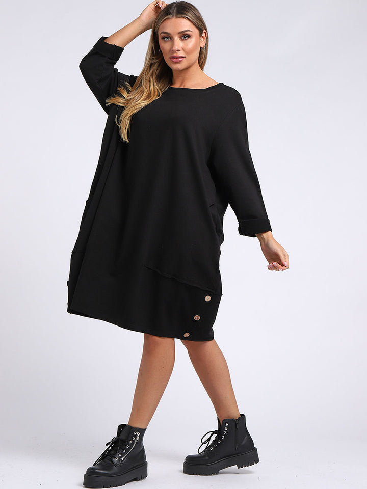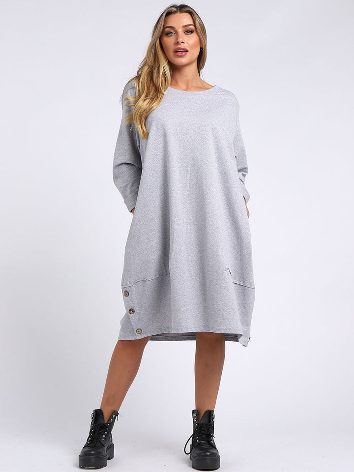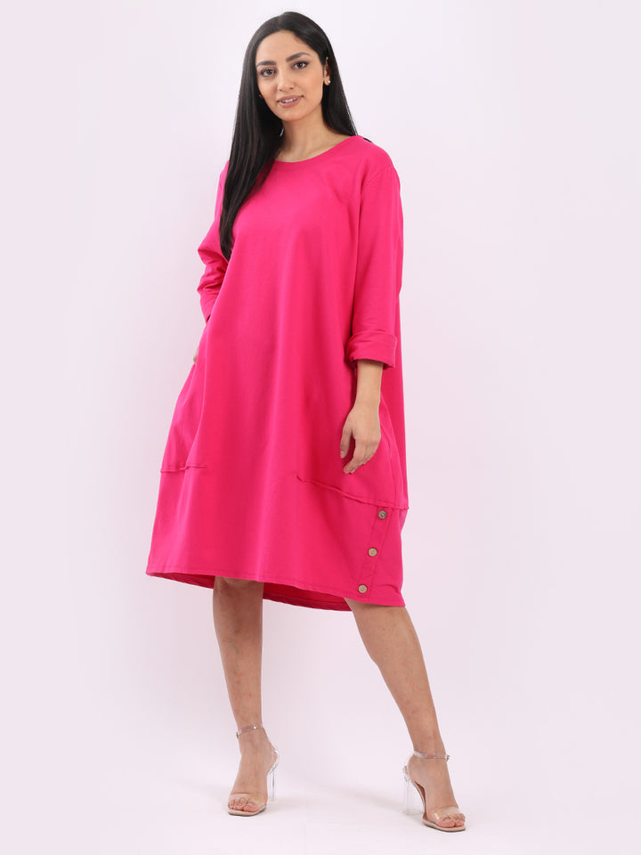 Plus Size Plain Buttoned Hem Cotton Lagenlook Slouch Dress