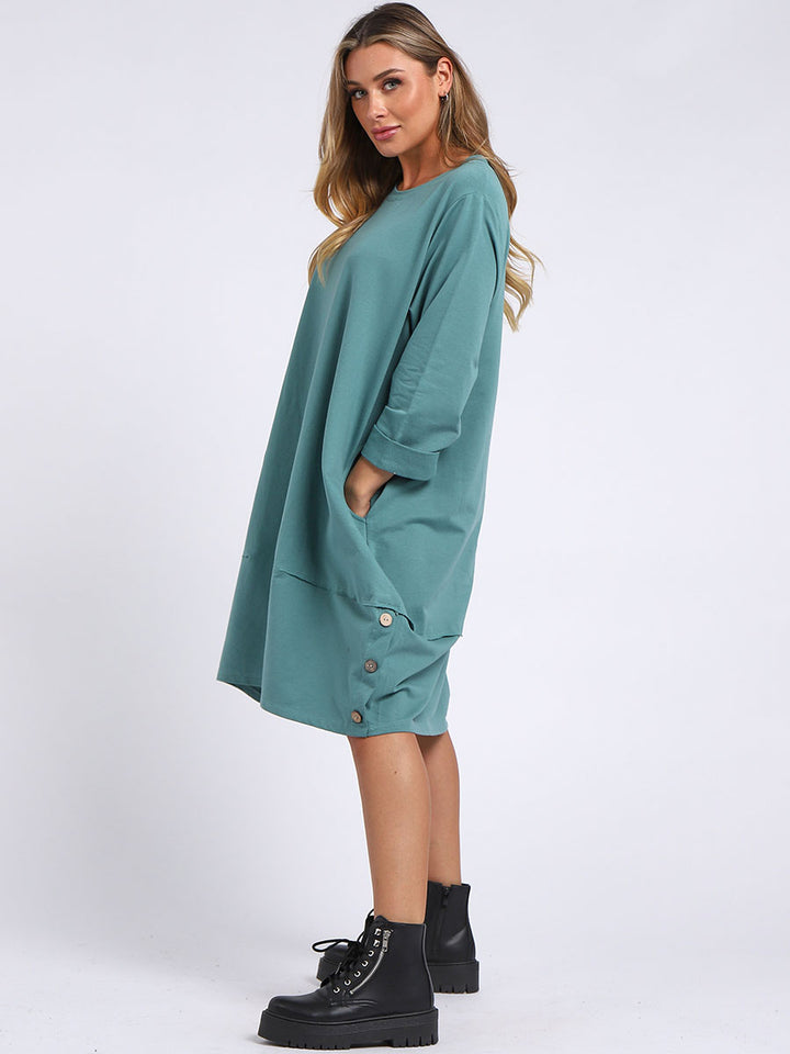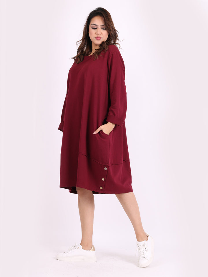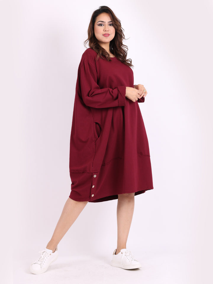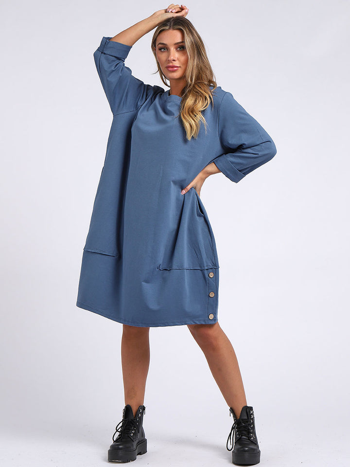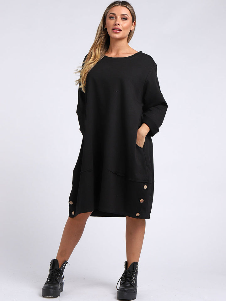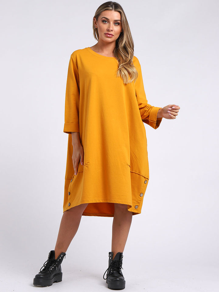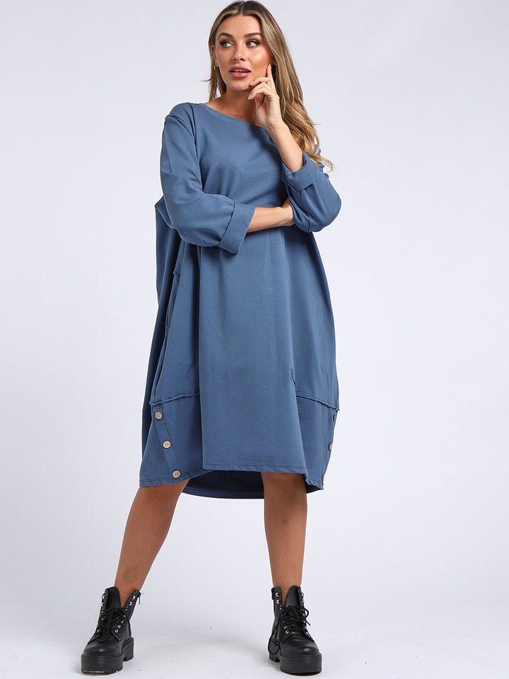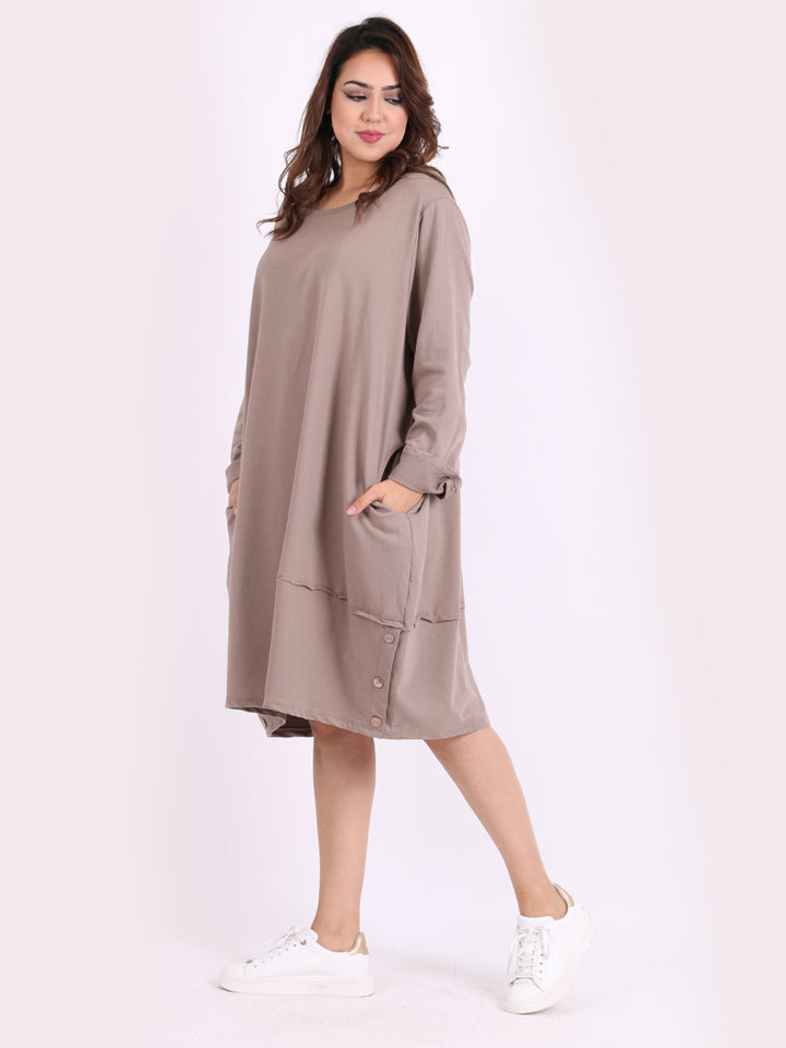 Plus Size Plain Buttoned Hem Cotton Lagenlook Slouch Dress