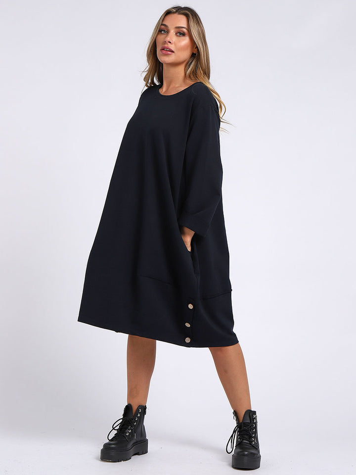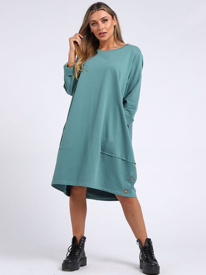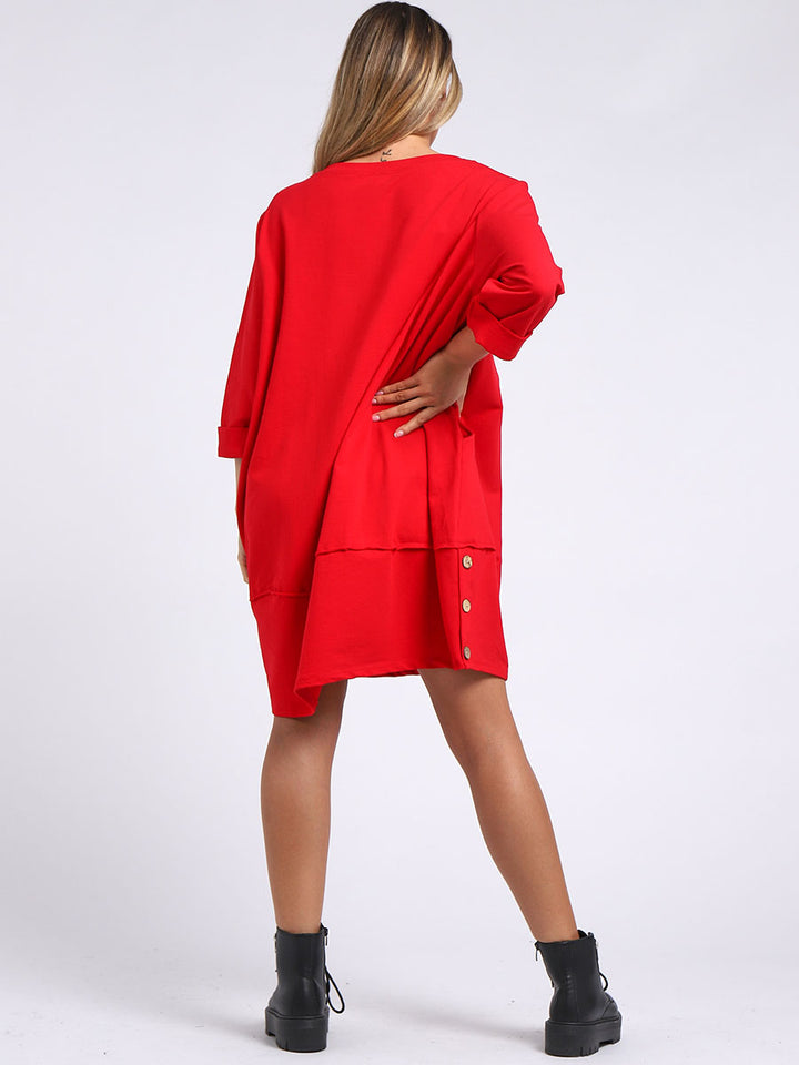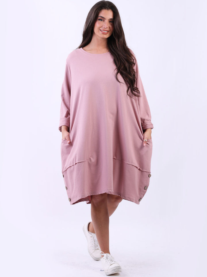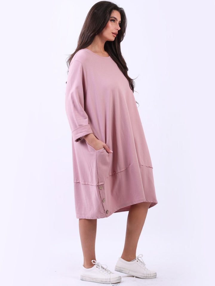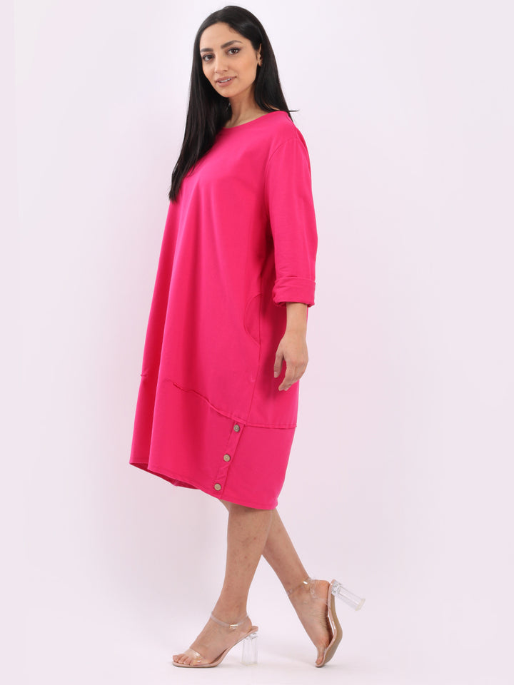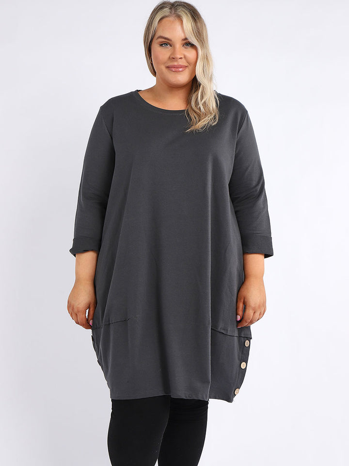 Plus Size Plain Buttoned Hem Cotton Lagenlook Slouch Dress