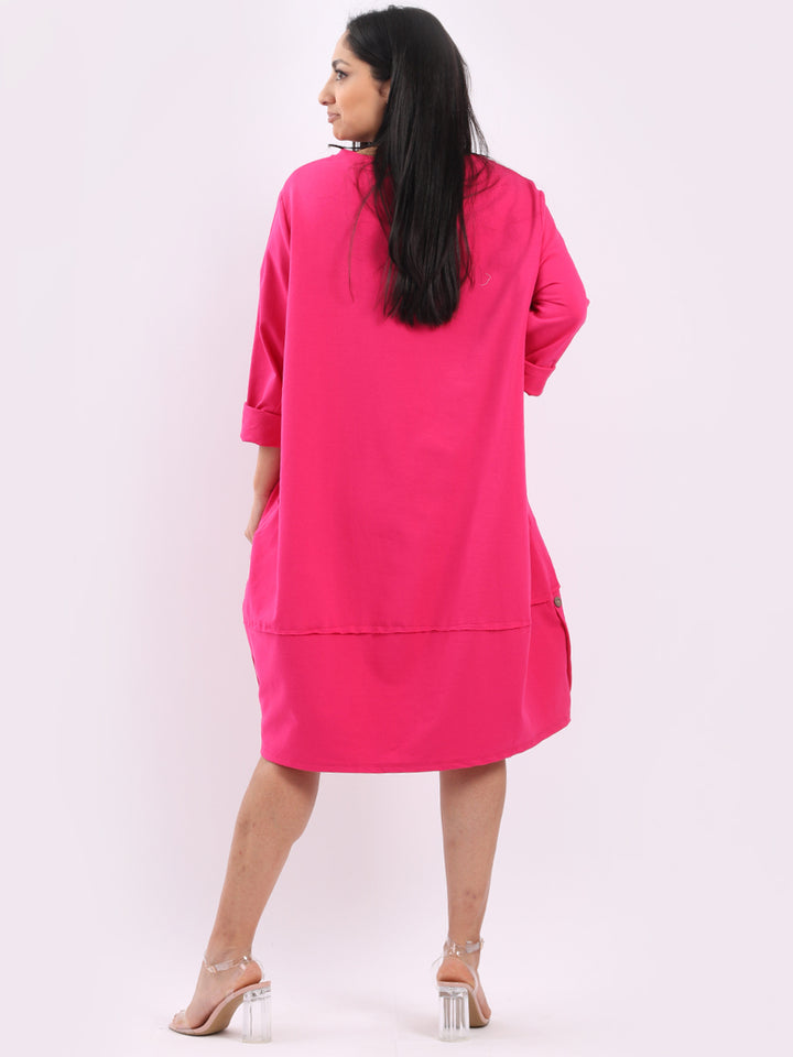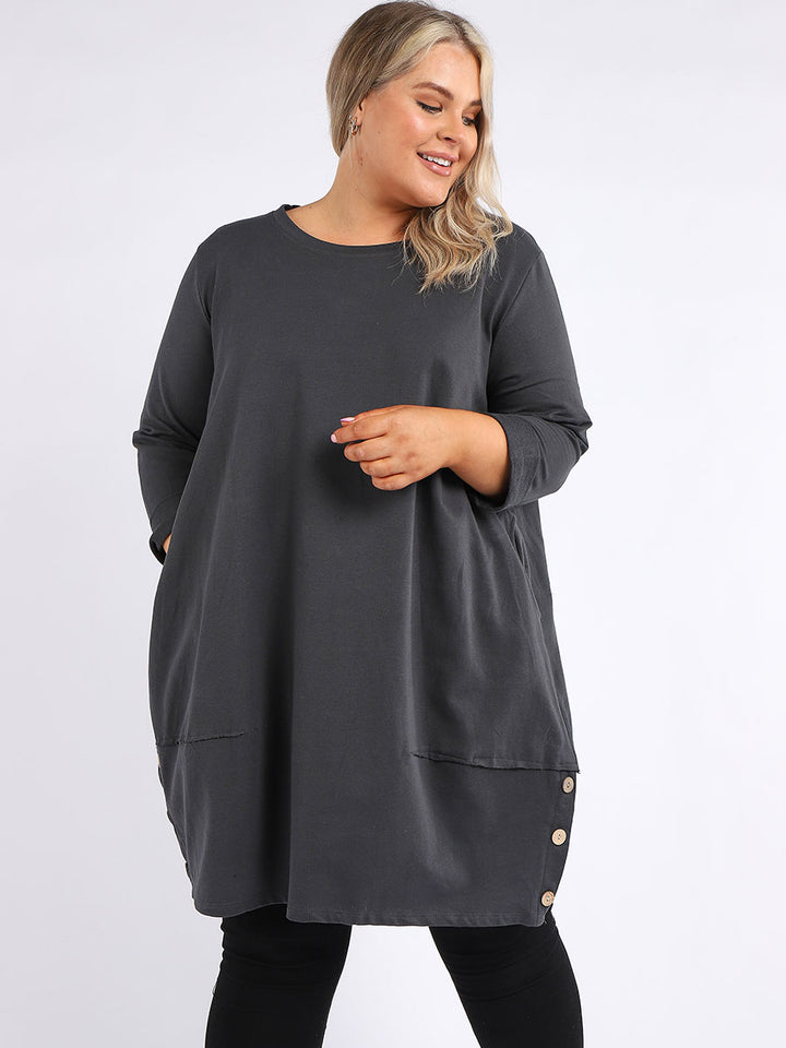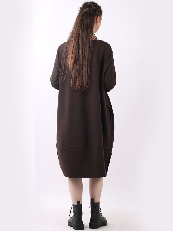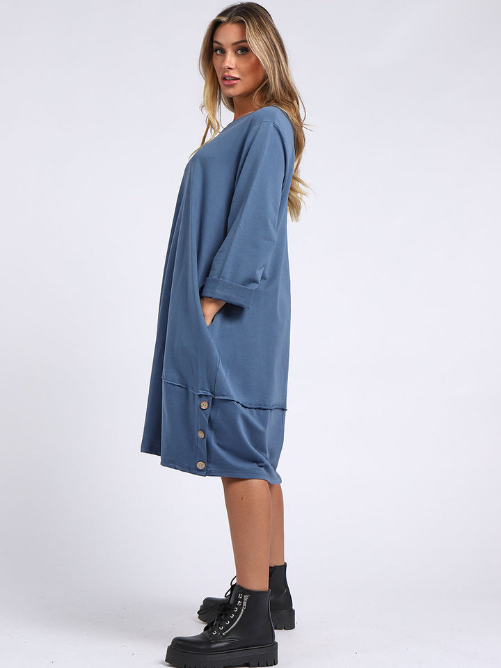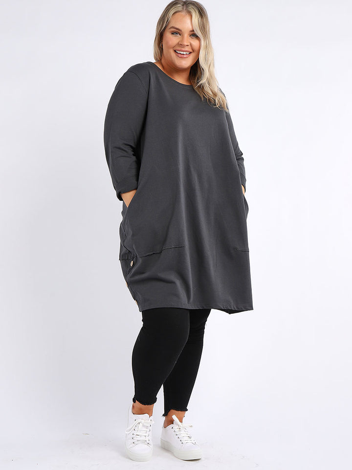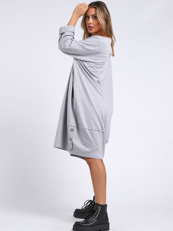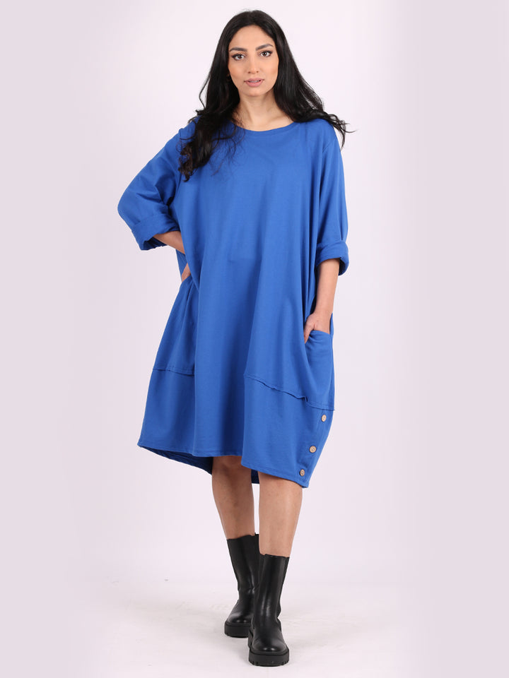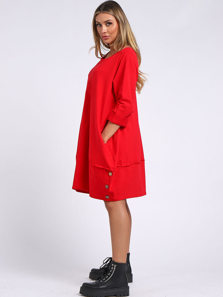 Plus Size Plain Buttoned Hem Cotton Lagenlook Slouch Dress