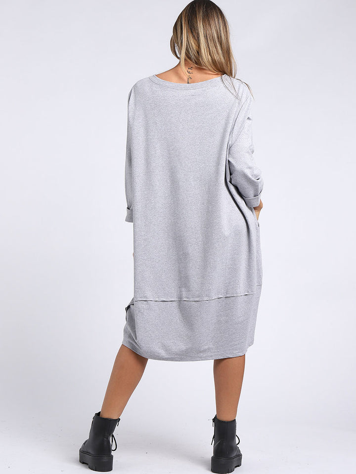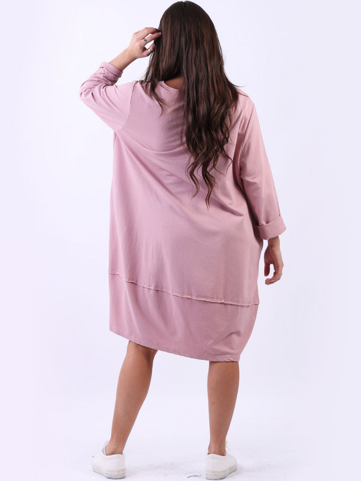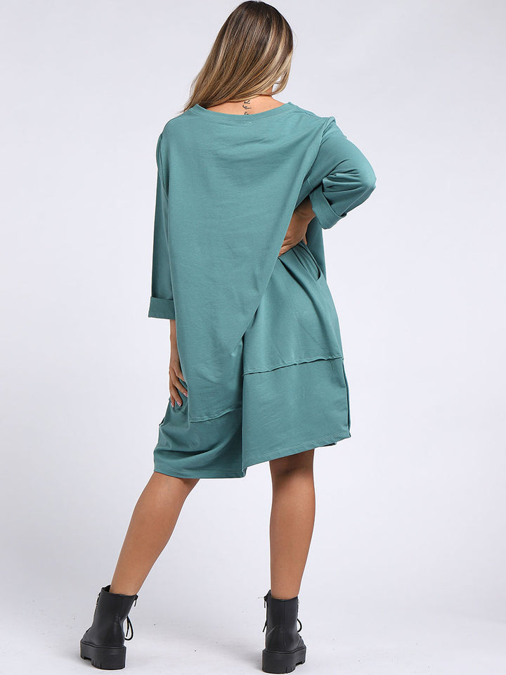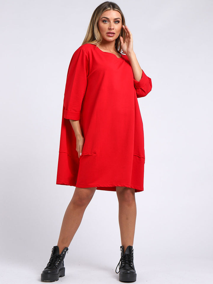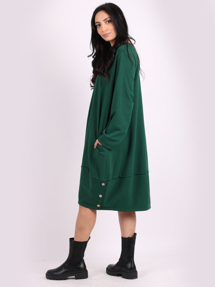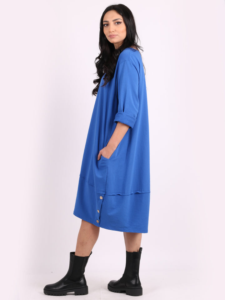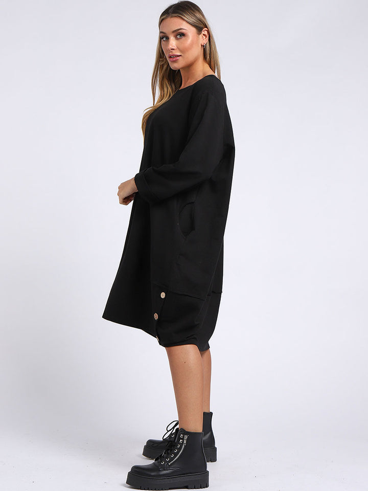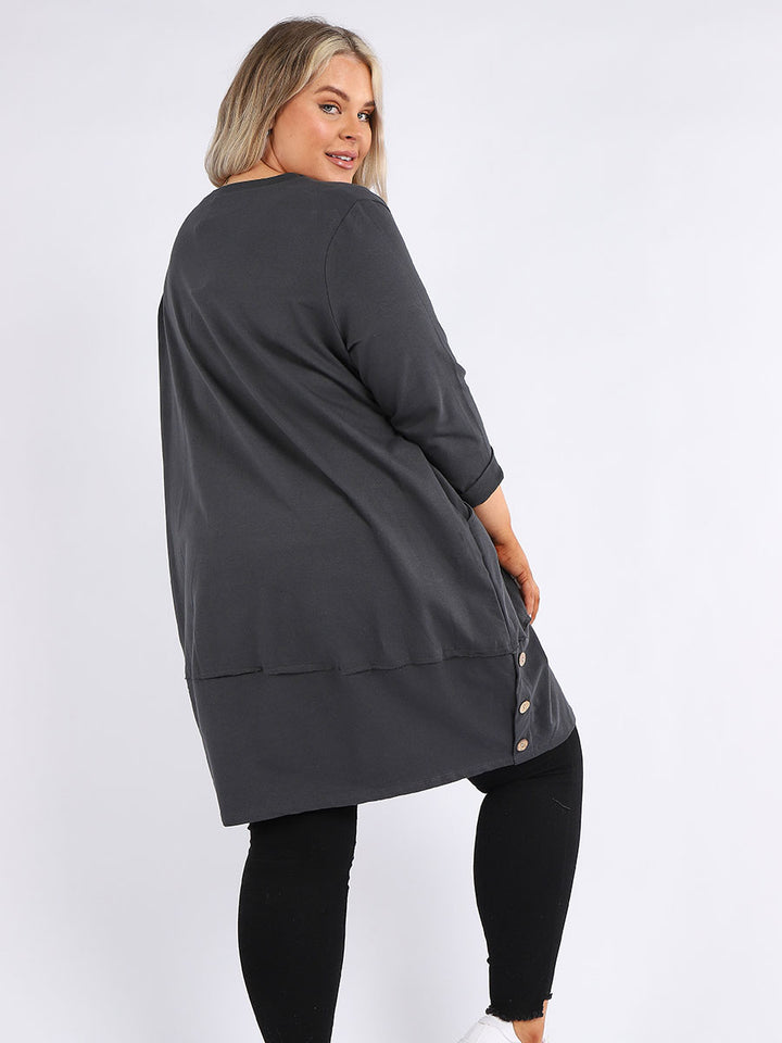 Plus Size Plain Buttoned Hem Cotton Lagenlook Slouch Dress