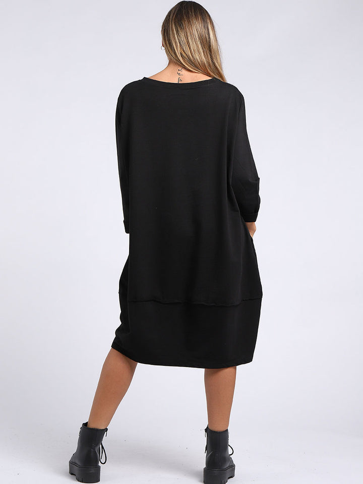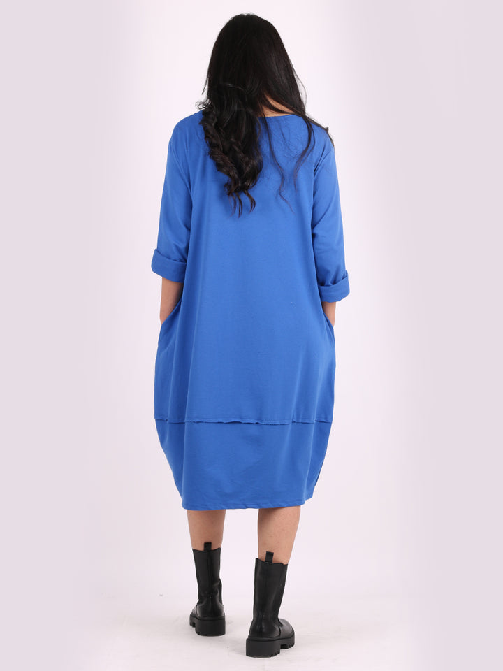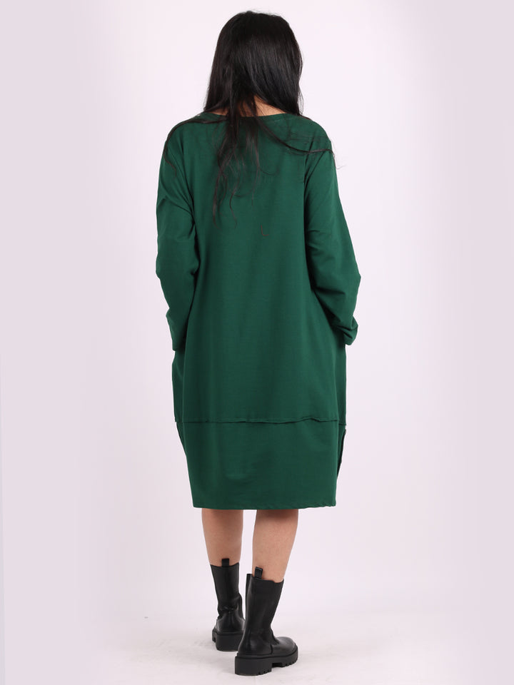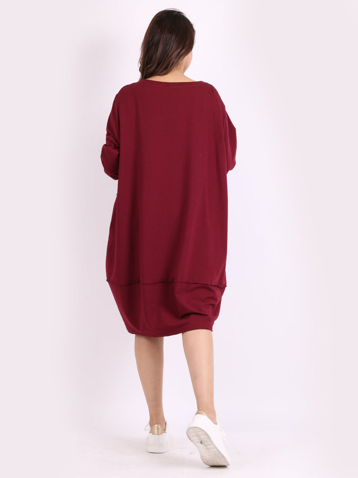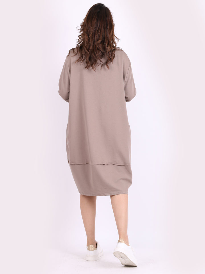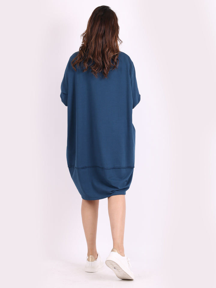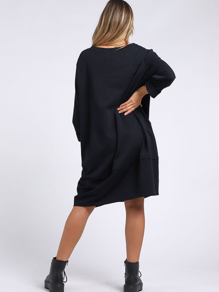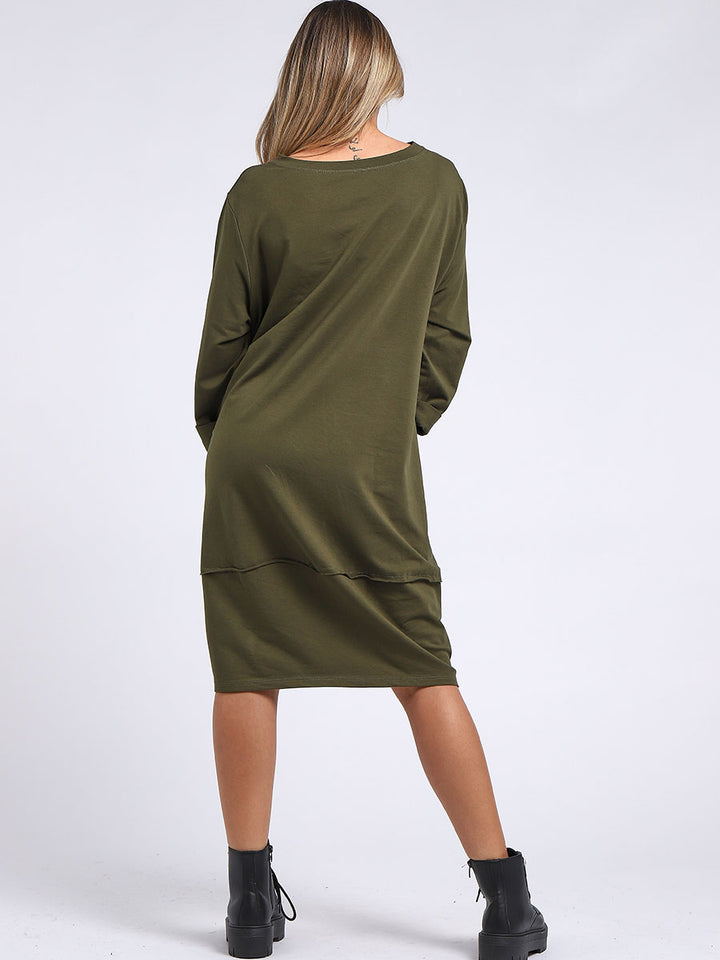 Plus Size Plain Buttoned Hem Cotton Lagenlook Slouch Dress