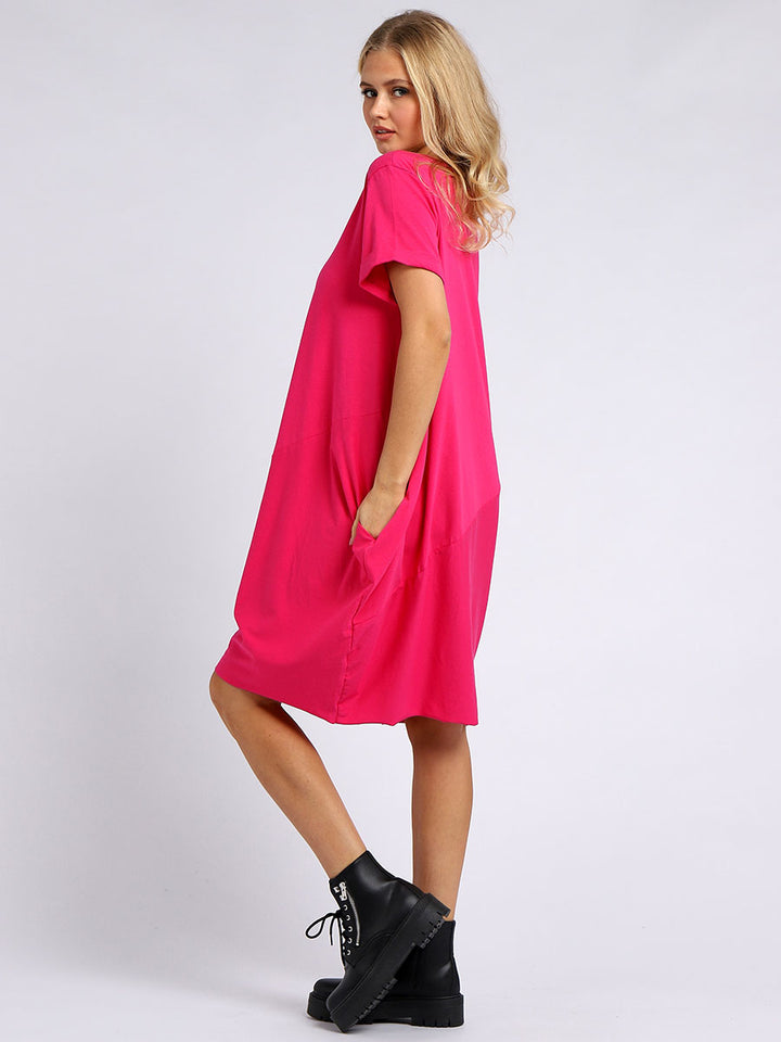 One dress every women wearer needs to kick off the season with style, confidence and comfort. This all in one piece by fashion boutique Manchester is especially crafted in Italy for highest quality standard a wearer can dream of, fine round neckline, rolled up short sleeves, blooming bright hues and designer cuts the lagenlook fit on natural pure cotton dress is sure to impress. Toss a printed scarf and straps heals to finish the look.