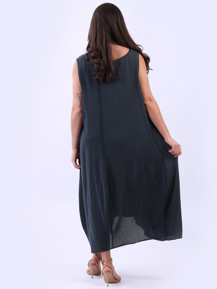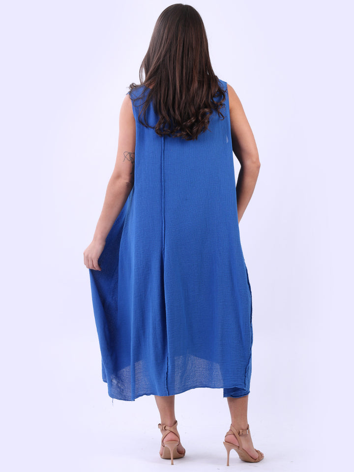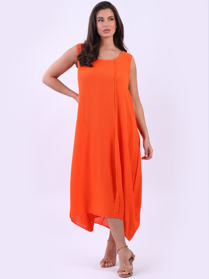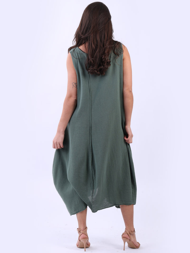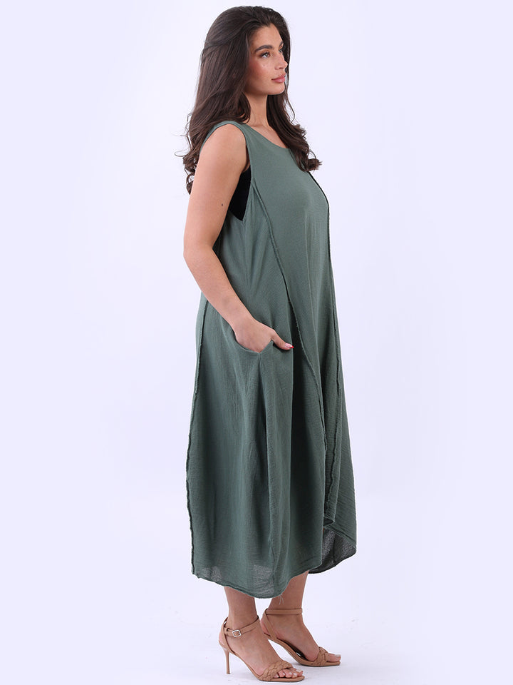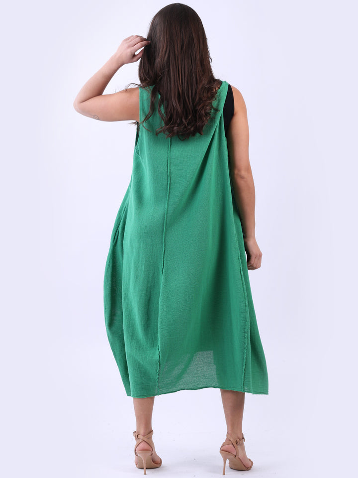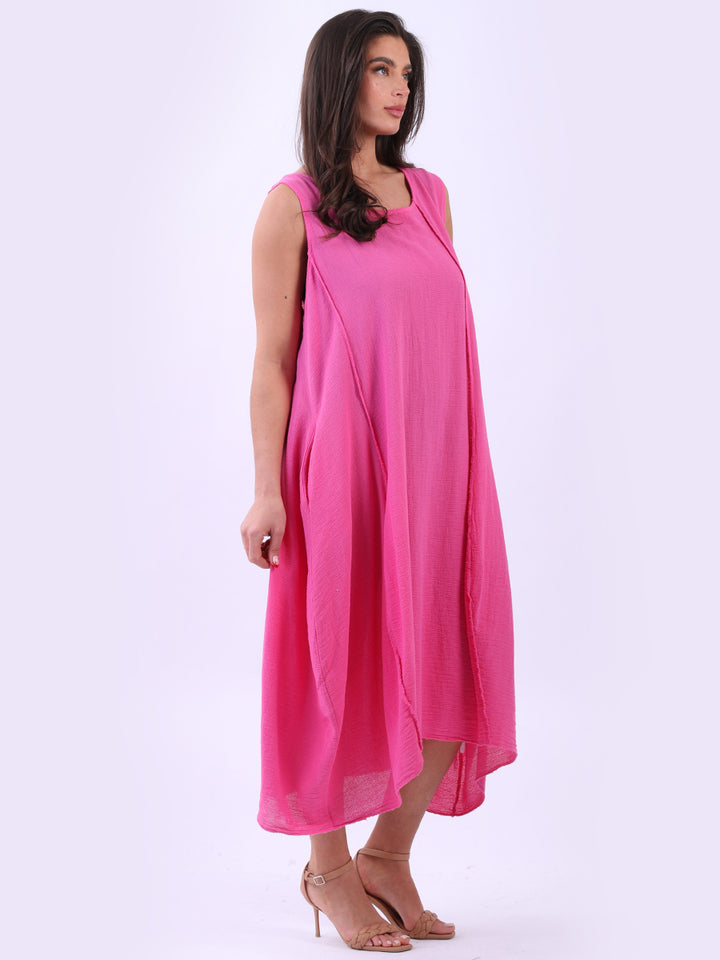 Plus Size Plain Cotton Raw Edges Lagenlook Sleeveless Slouchy Dress