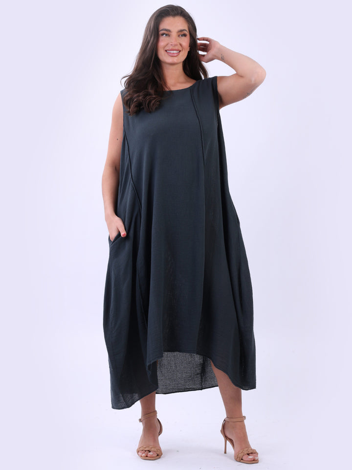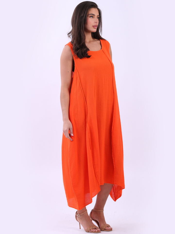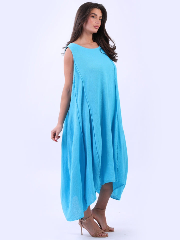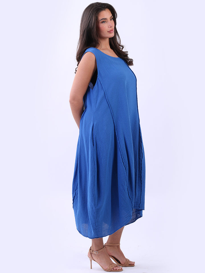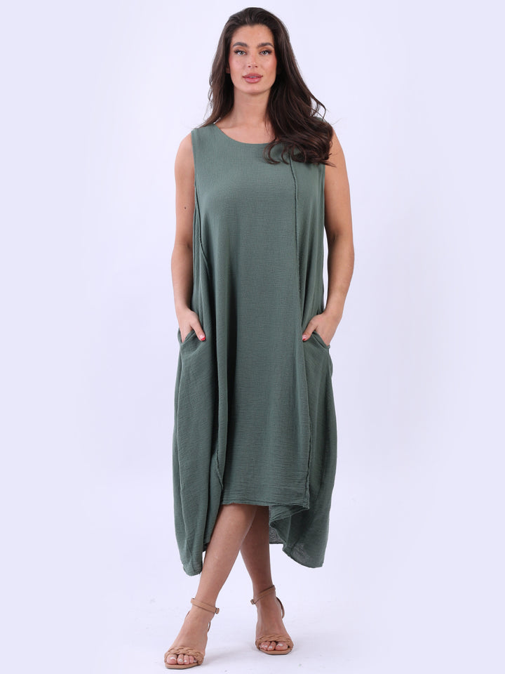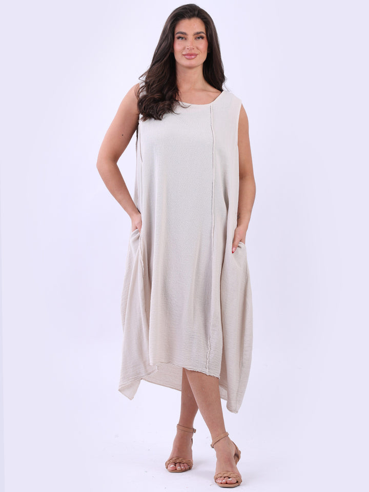 Plus Size Plain Cotton Raw Edges Lagenlook Sleeveless Slouchy Dress