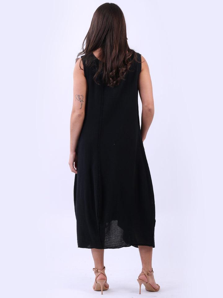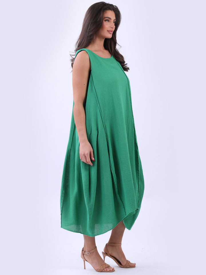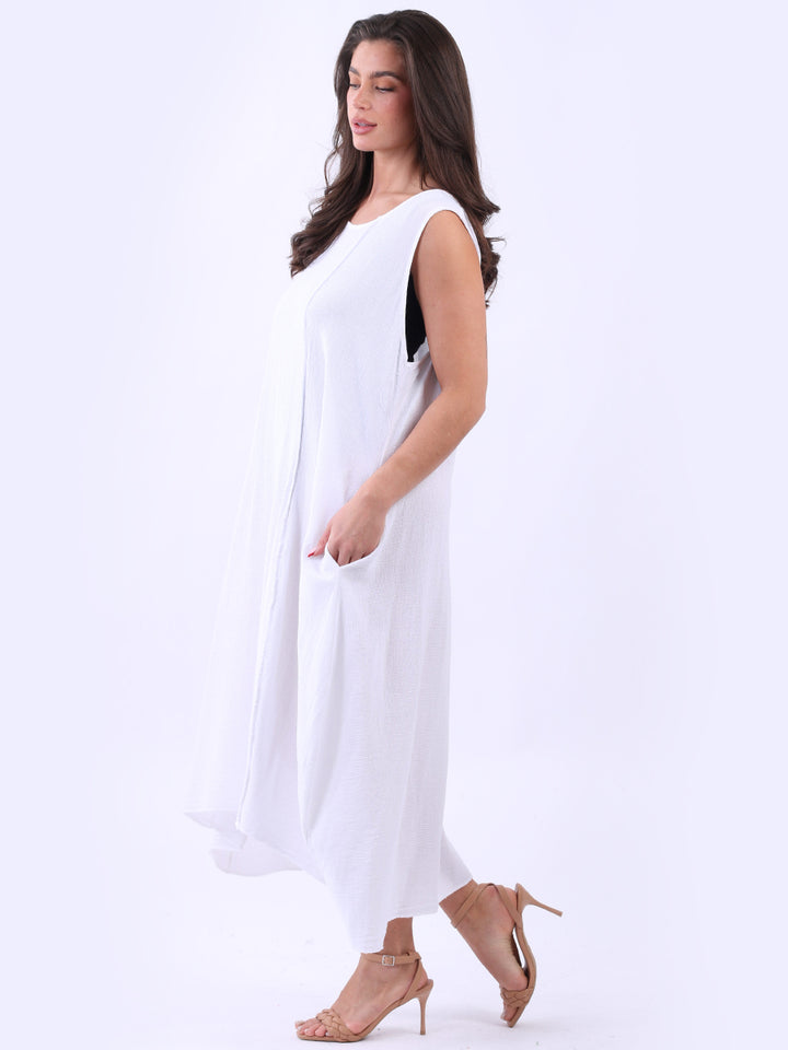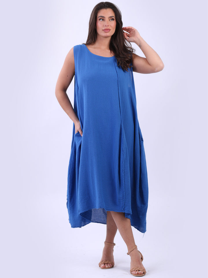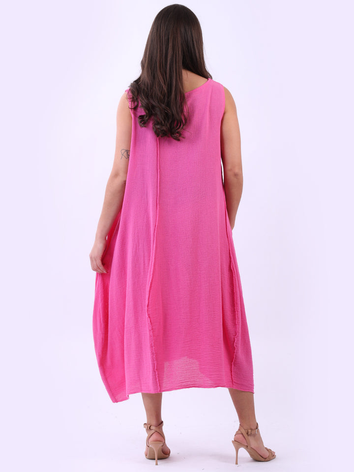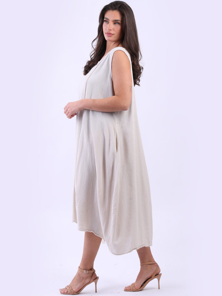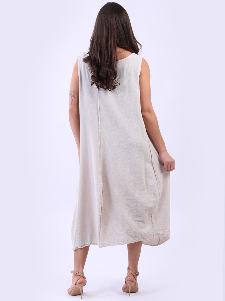 Plus Size Plain Cotton Raw Edges Lagenlook Sleeveless Slouchy Dress