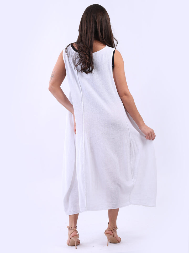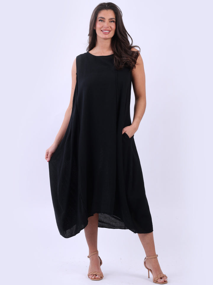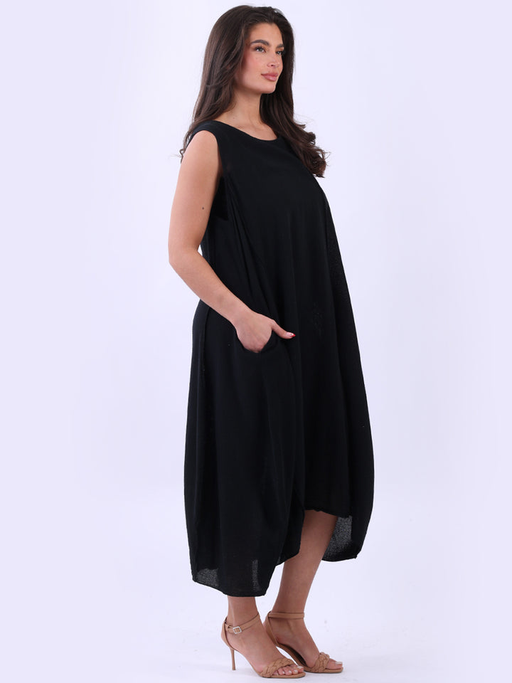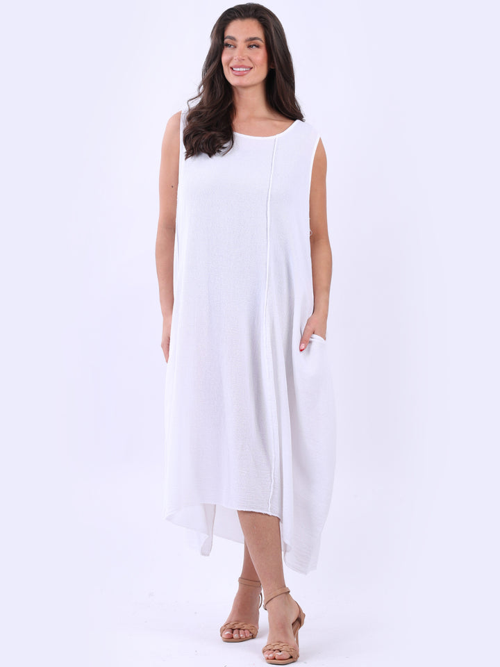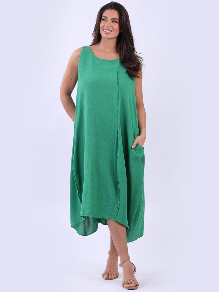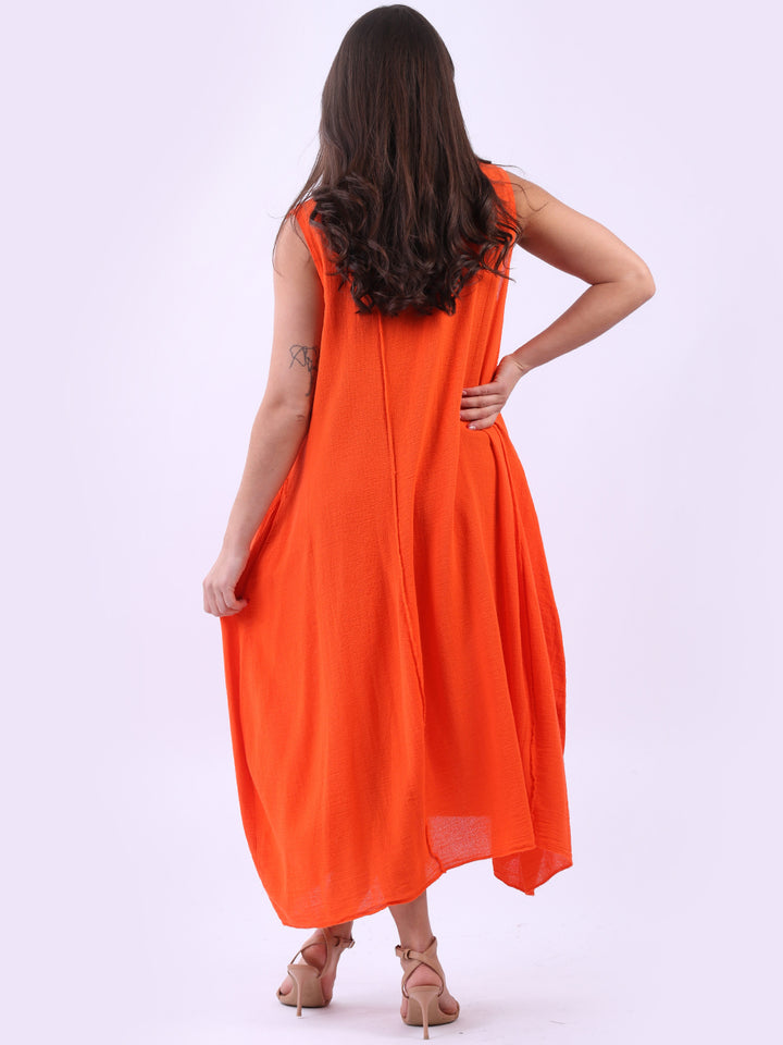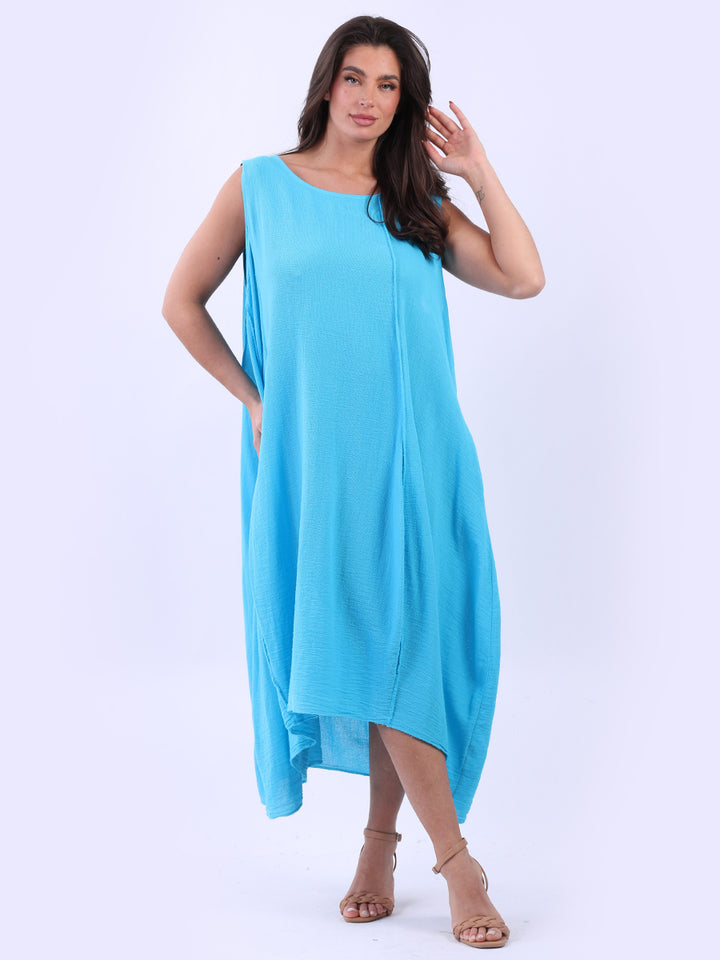 Plus Size Plain Cotton Raw Edges Lagenlook Sleeveless Slouchy Dress