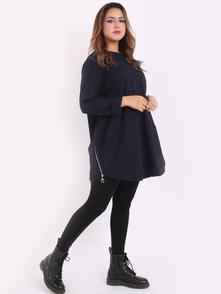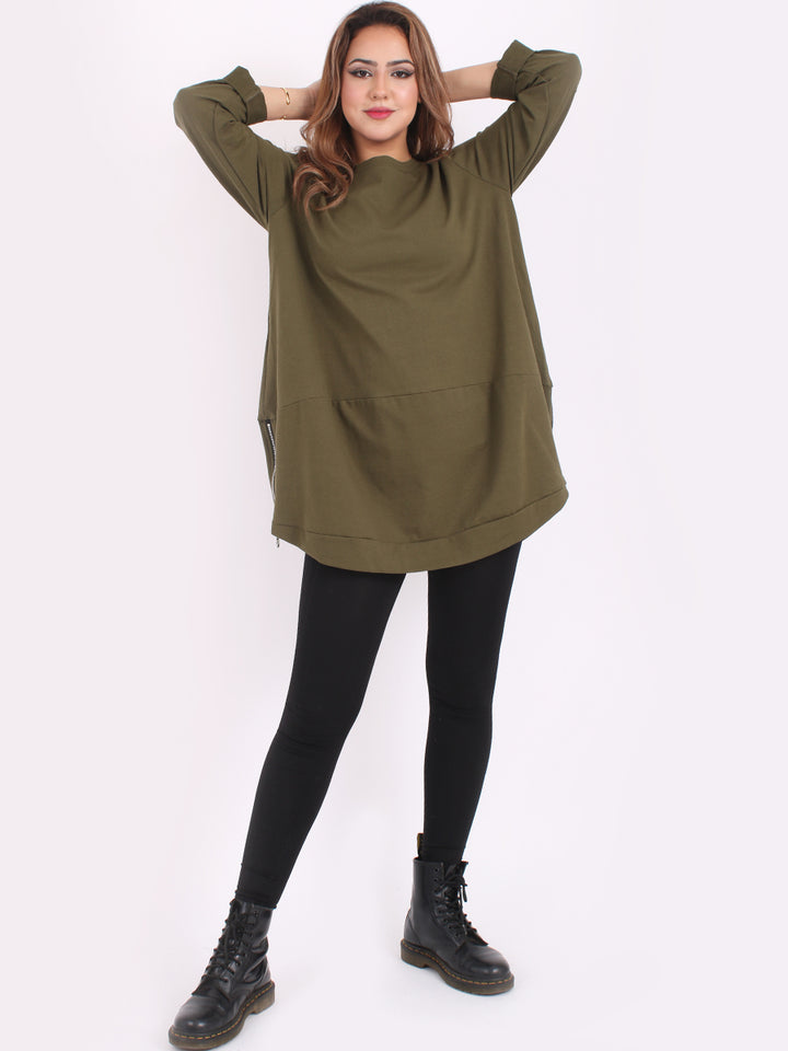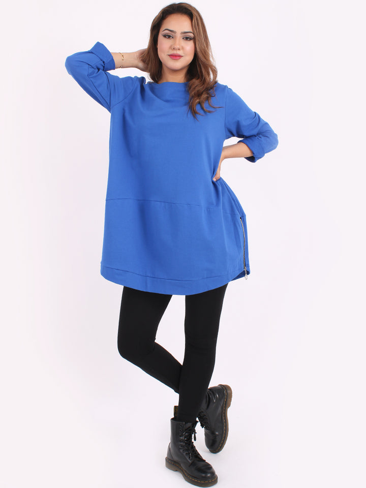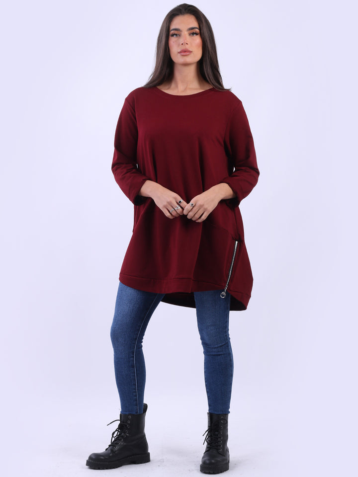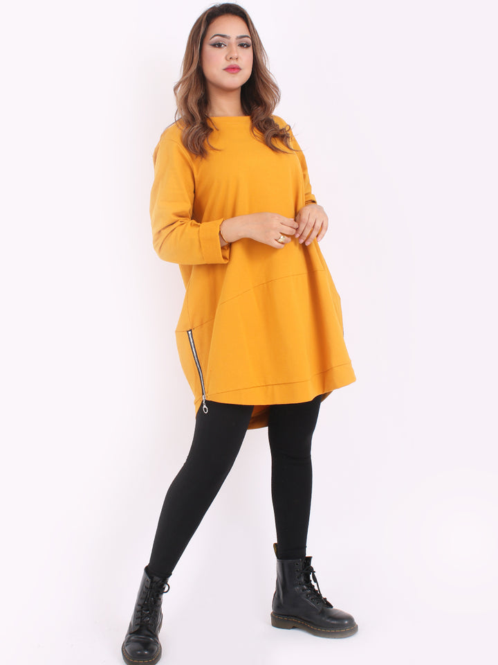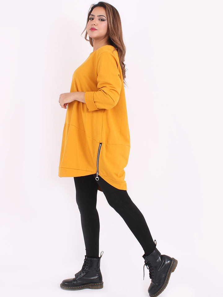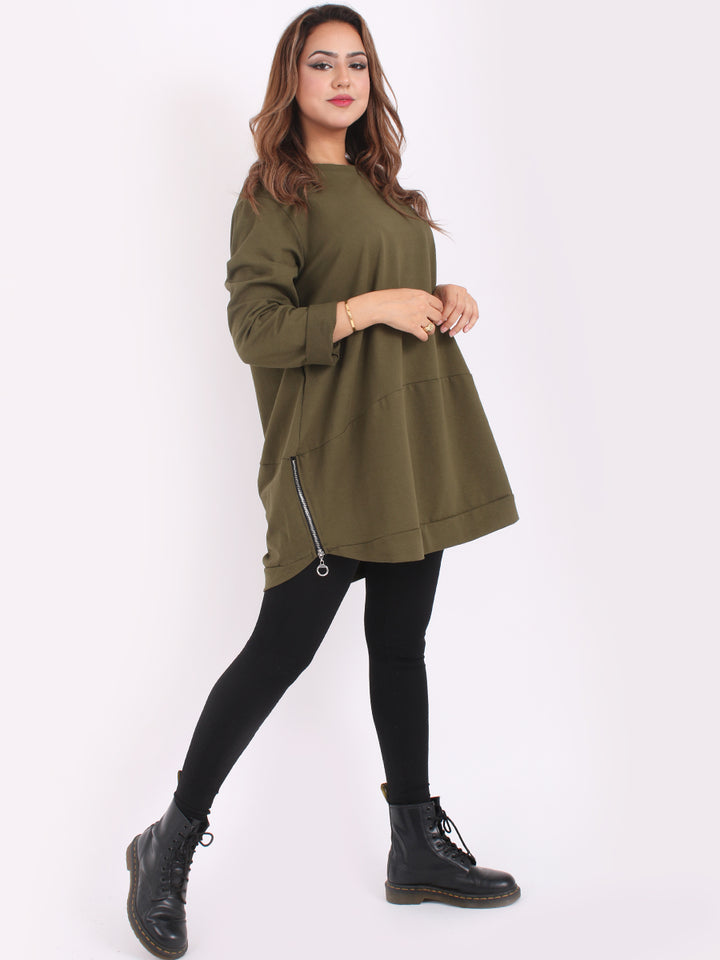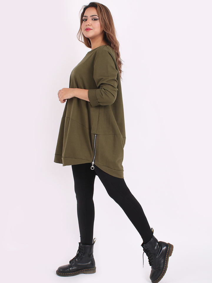 Plus Size Plain Cotton Zipped Hem Lagenlook Top
