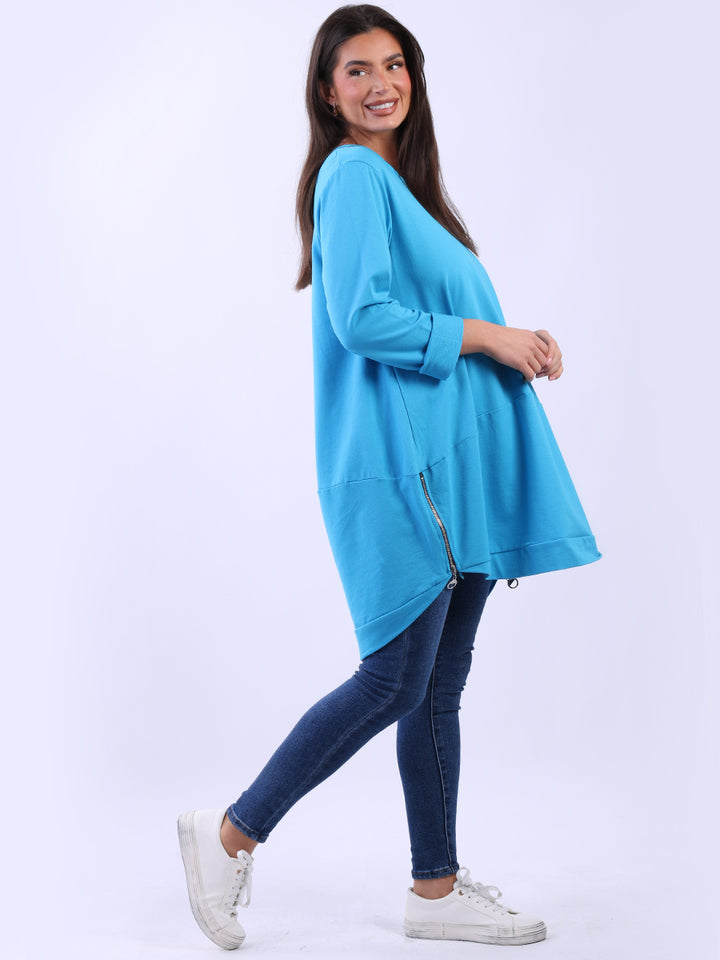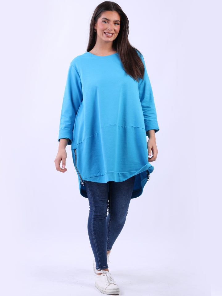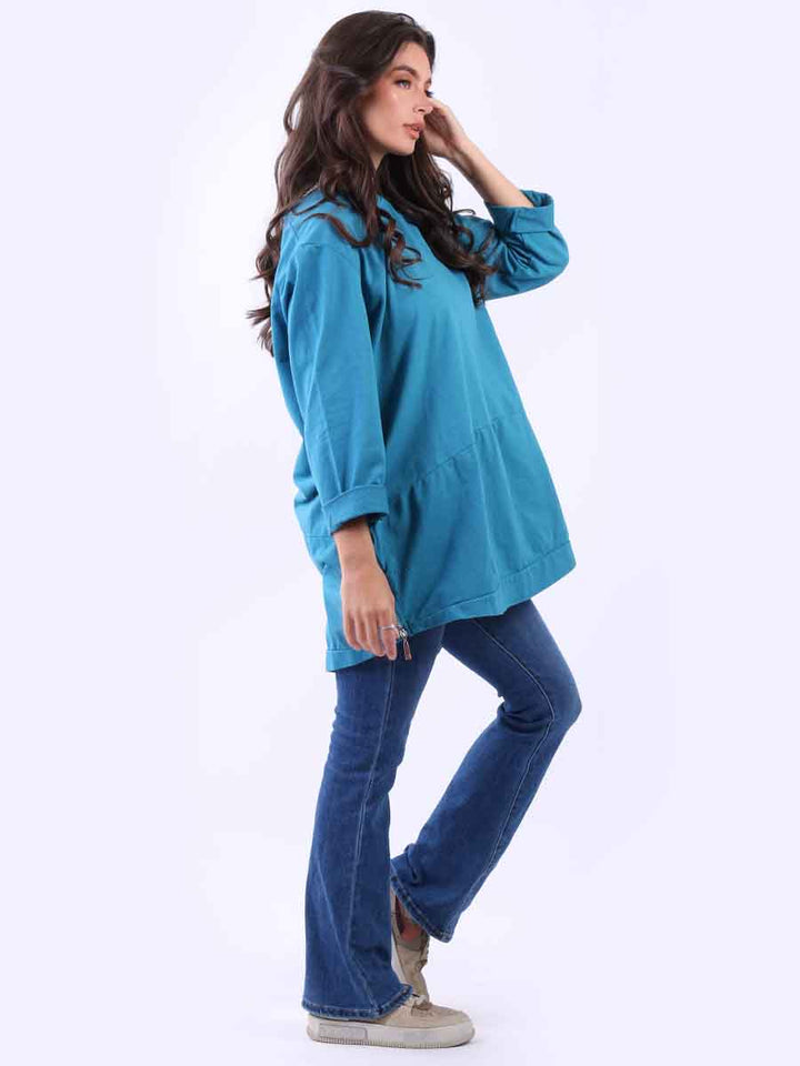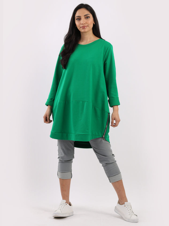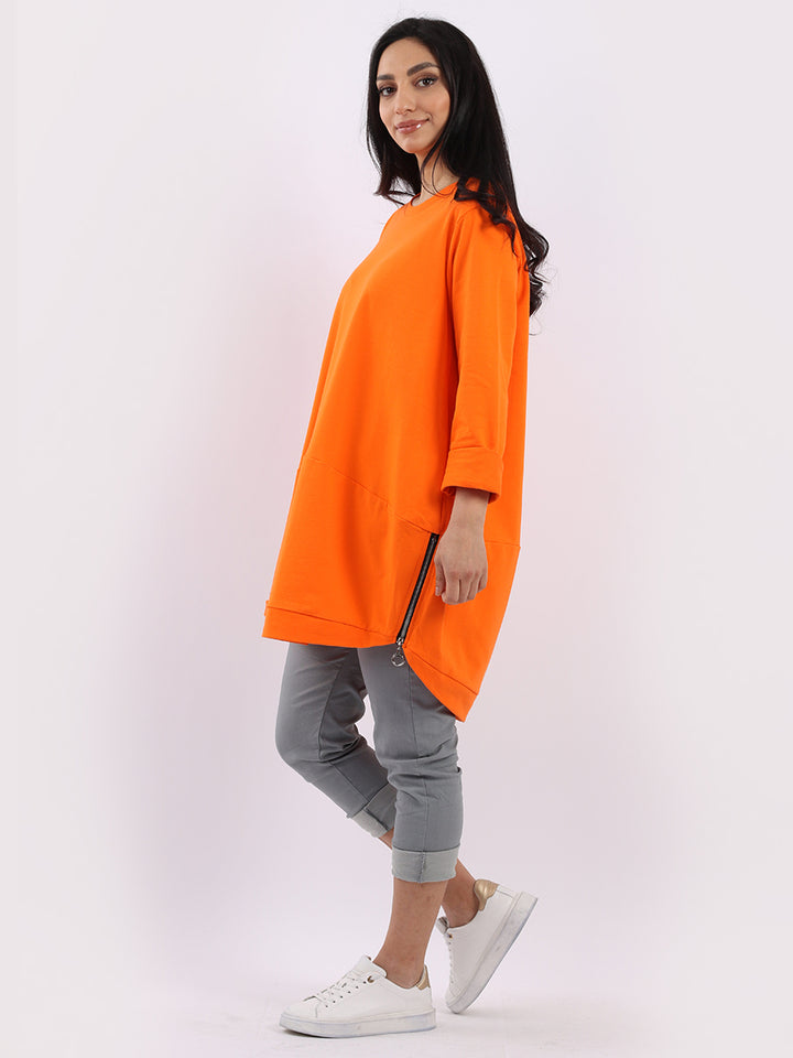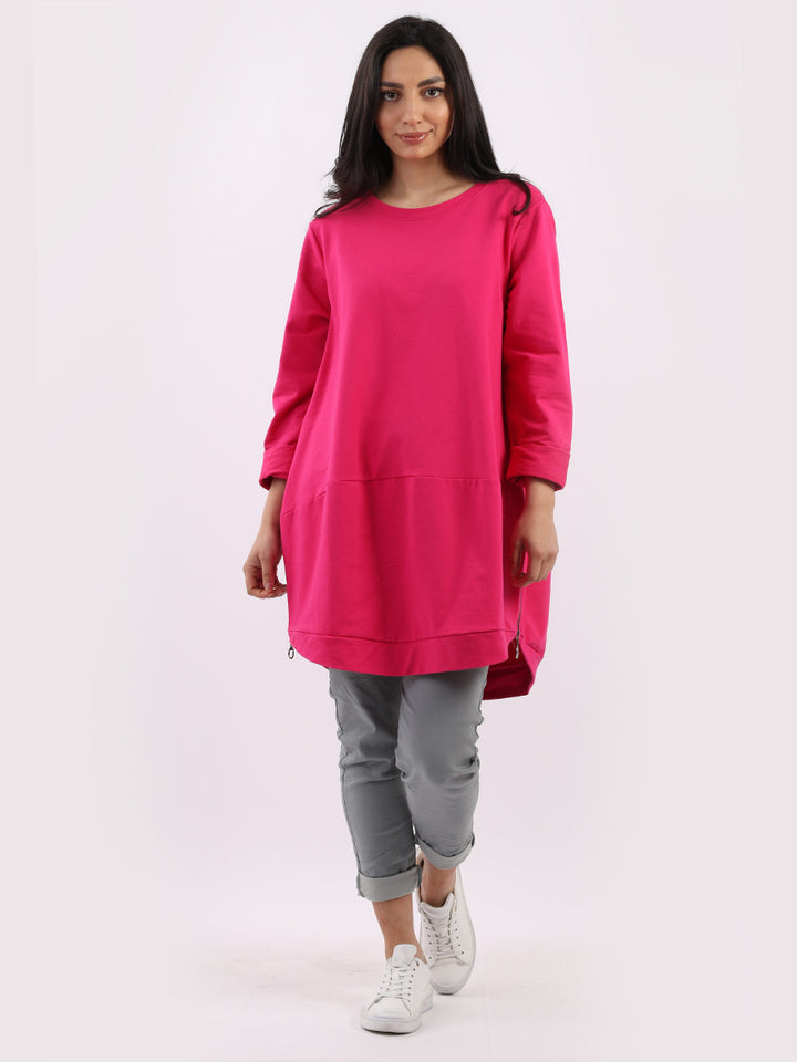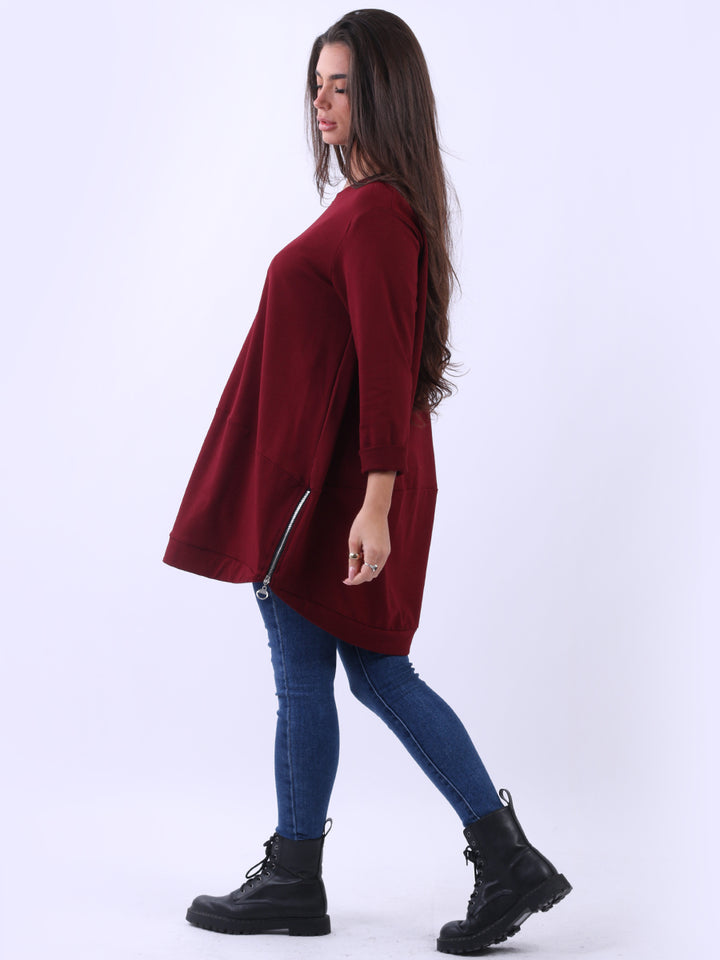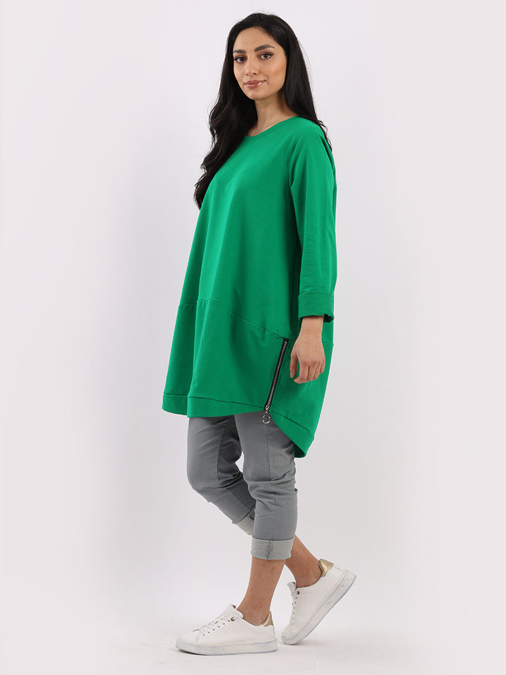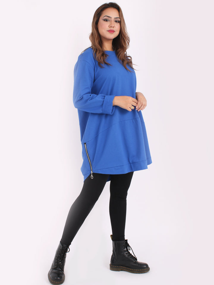 Plus Size Plain Cotton Zipped Hem Lagenlook Top