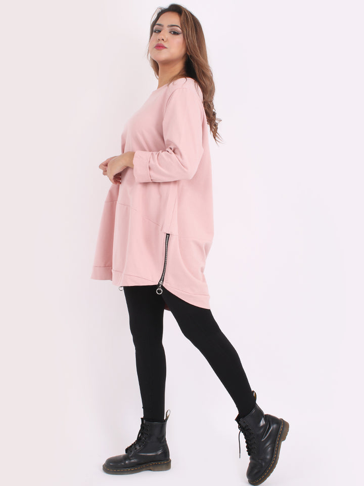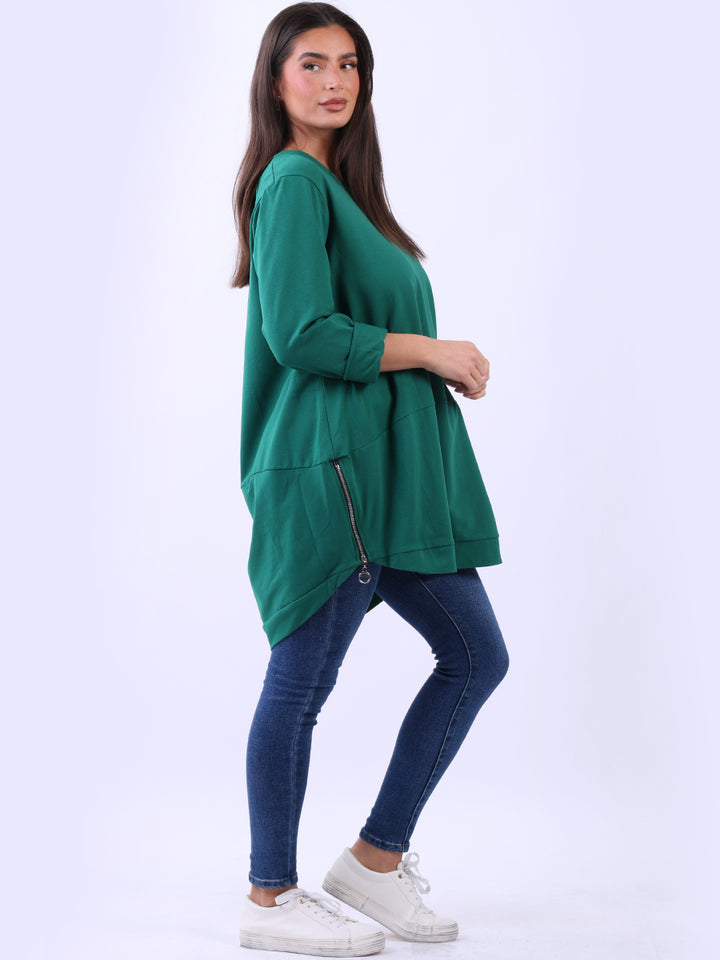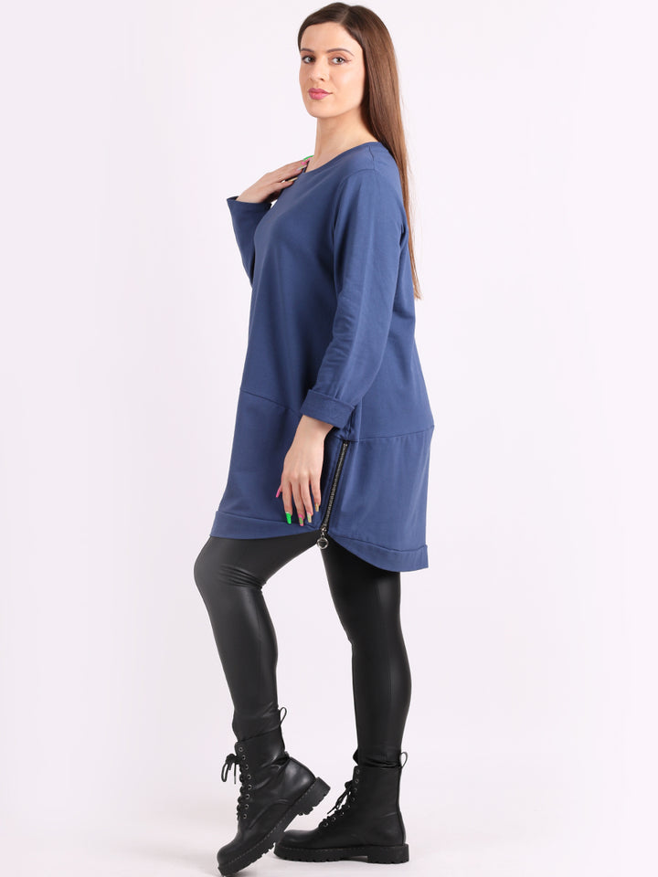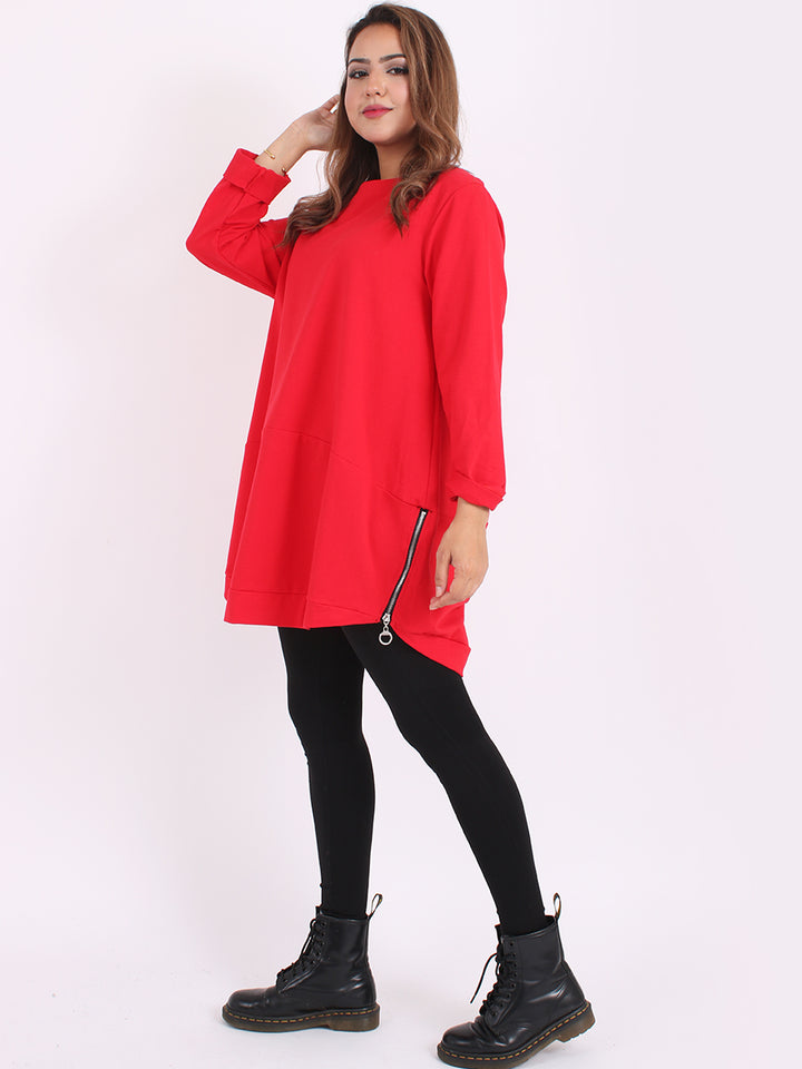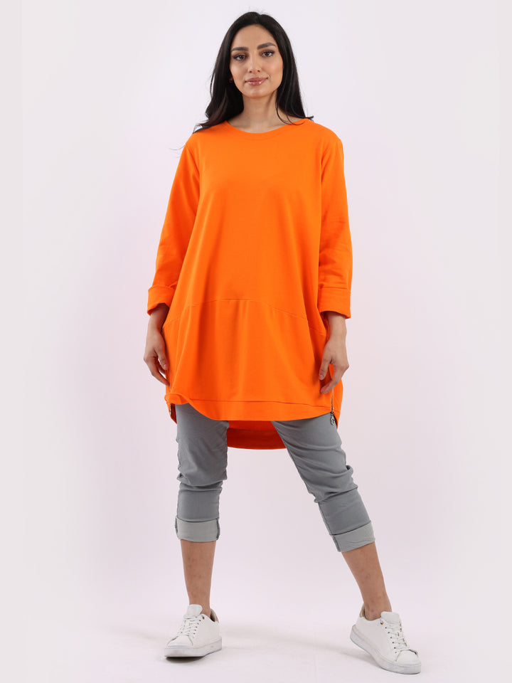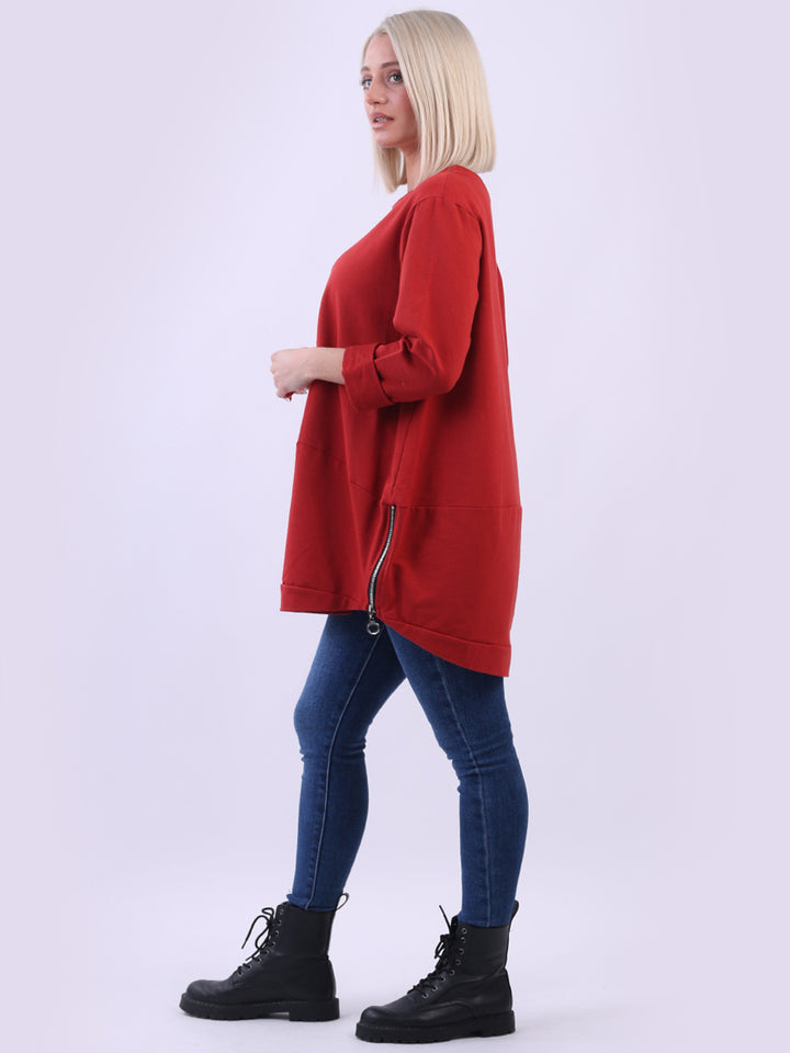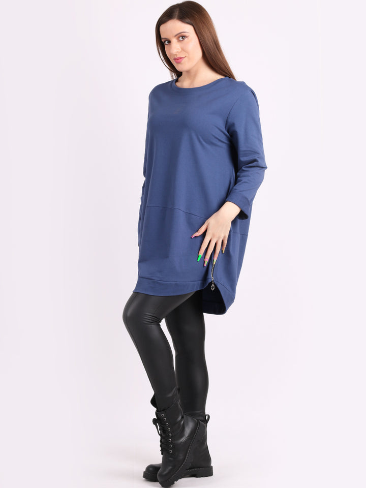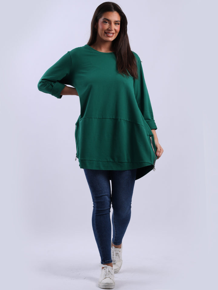 Plus Size Plain Cotton Zipped Hem Lagenlook Top