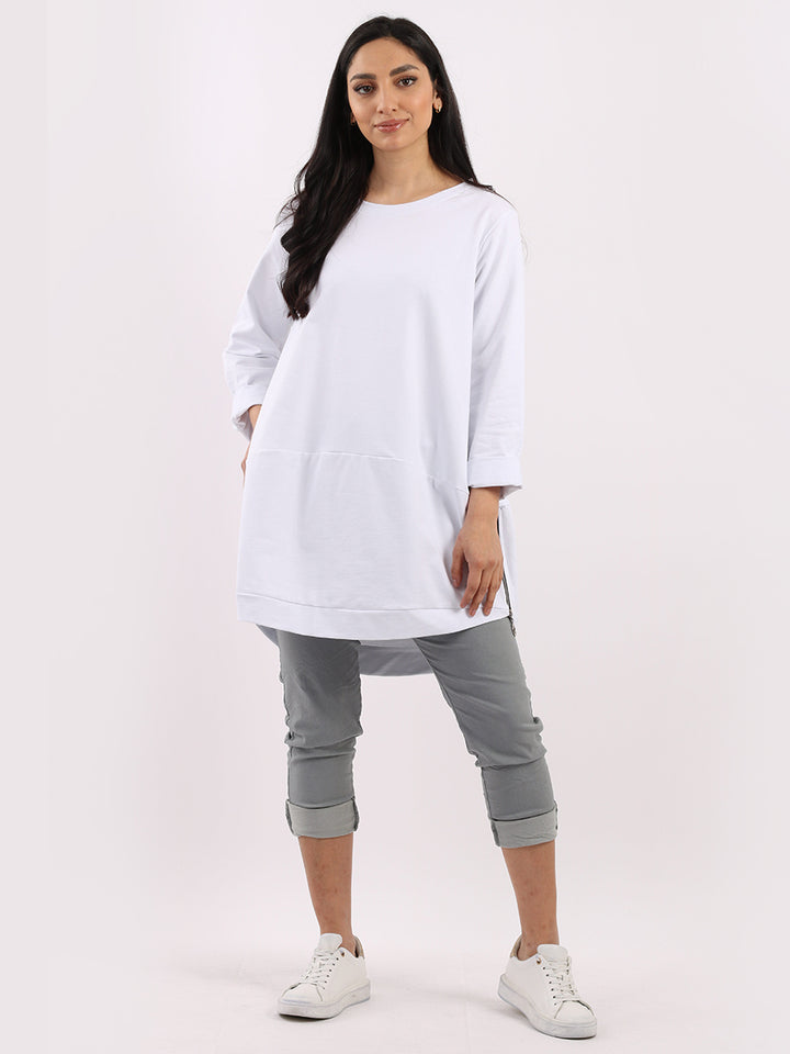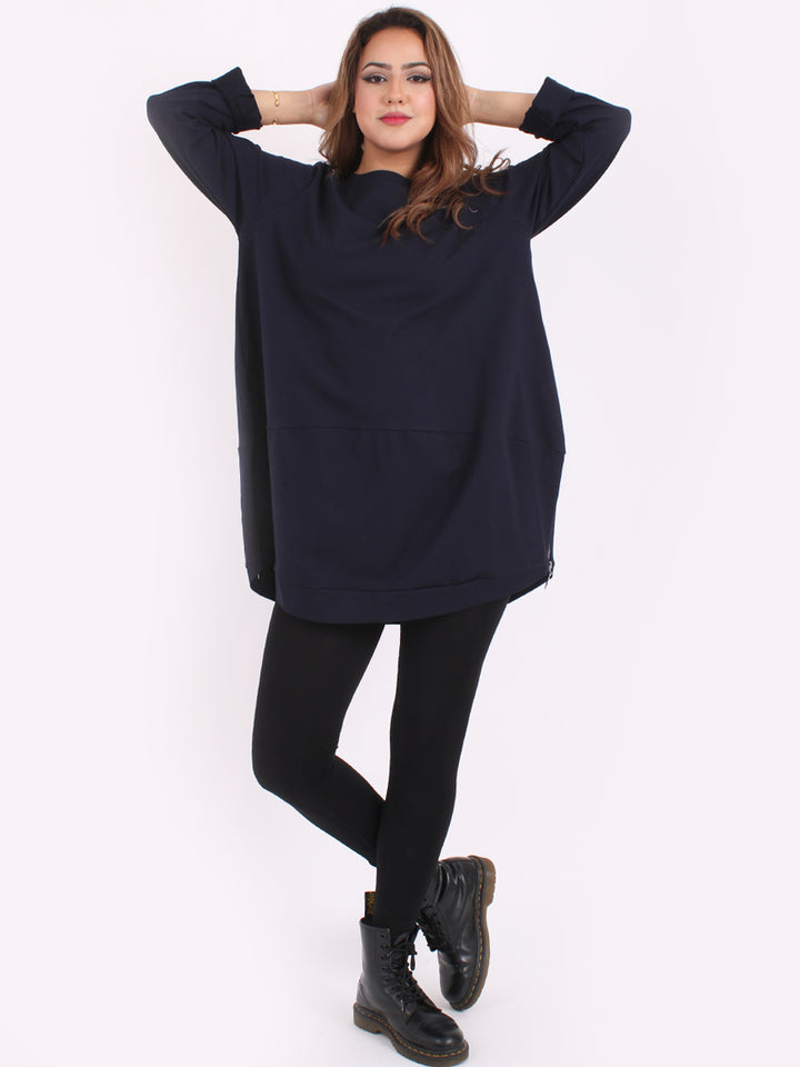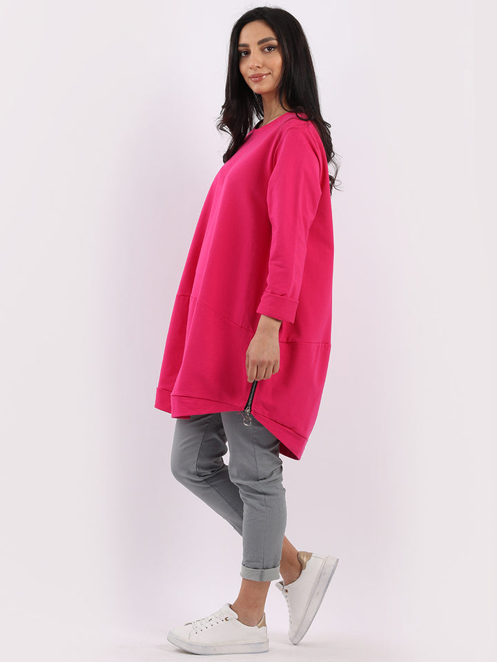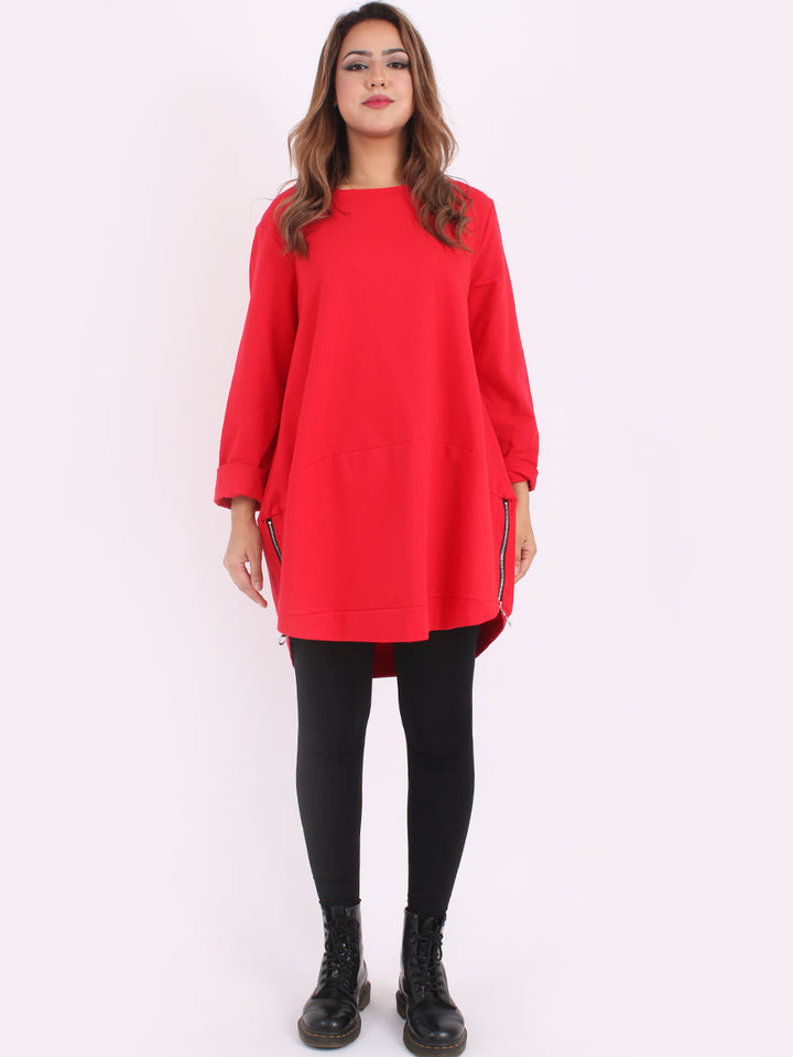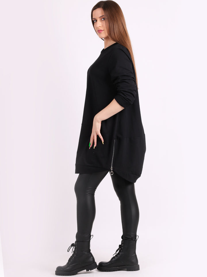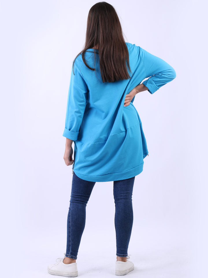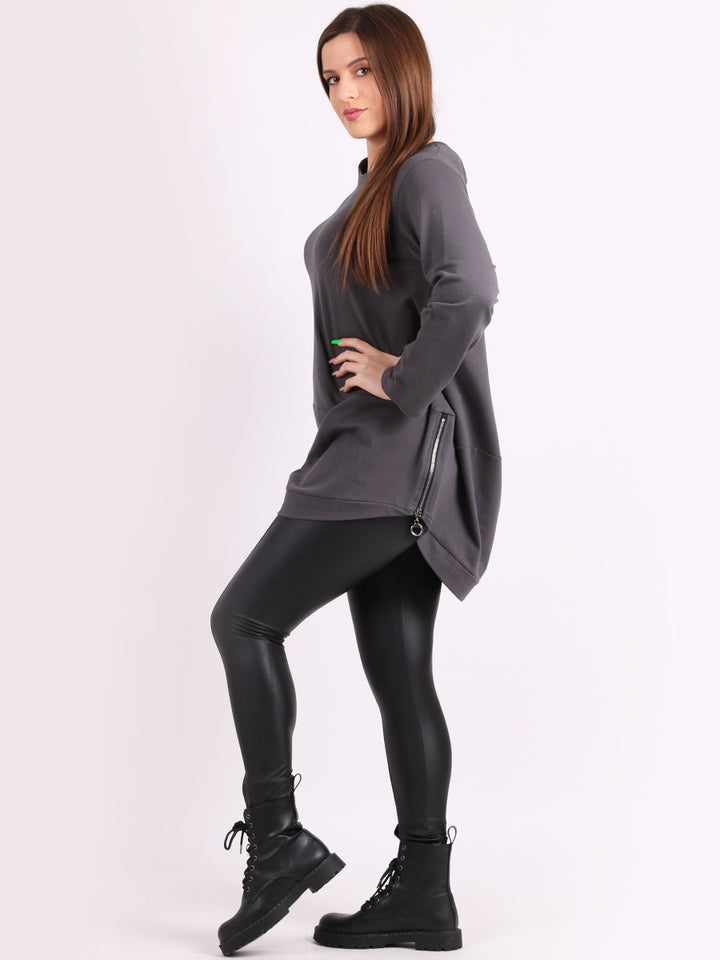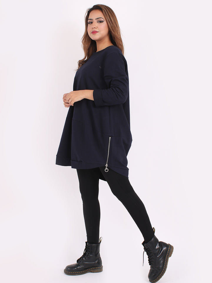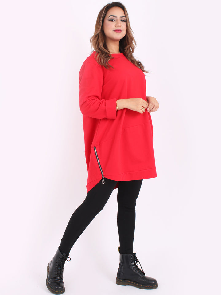 Plus Size Plain Cotton Zipped Hem Lagenlook Top