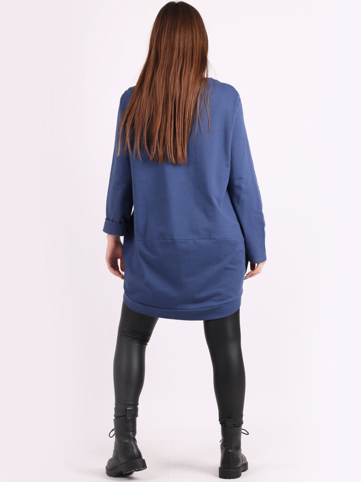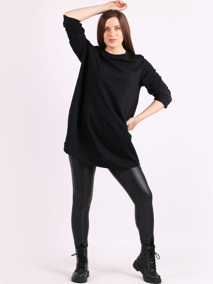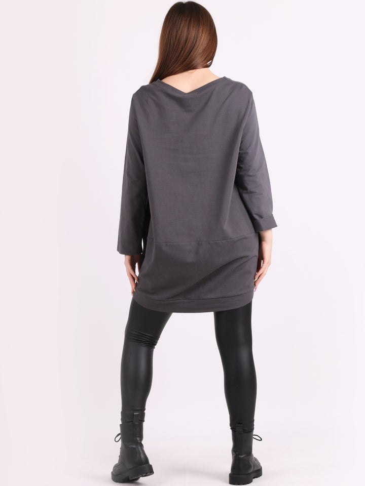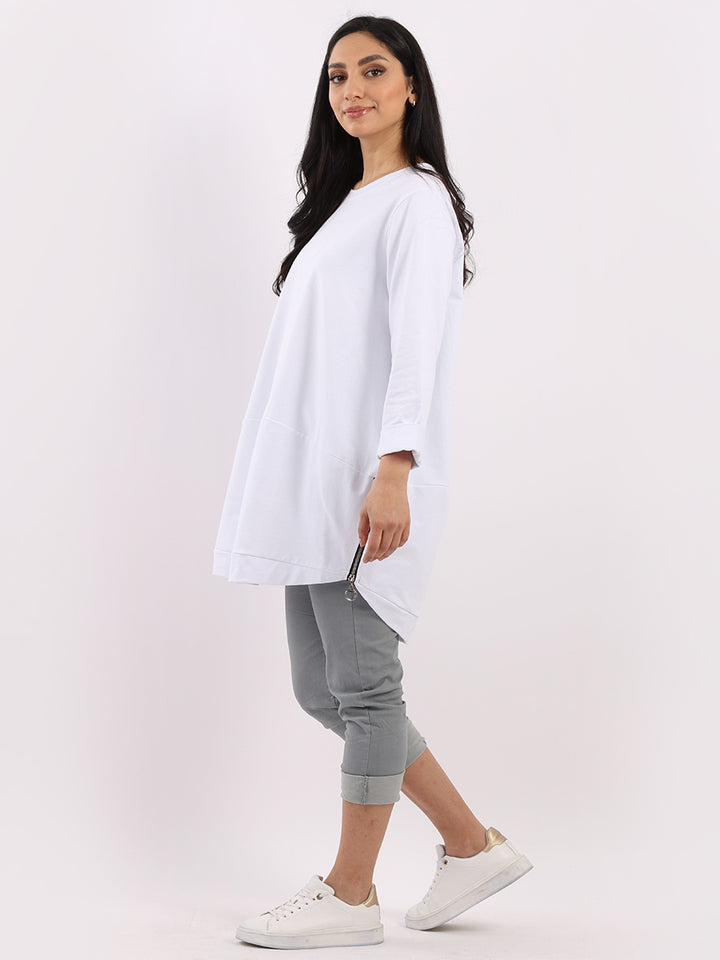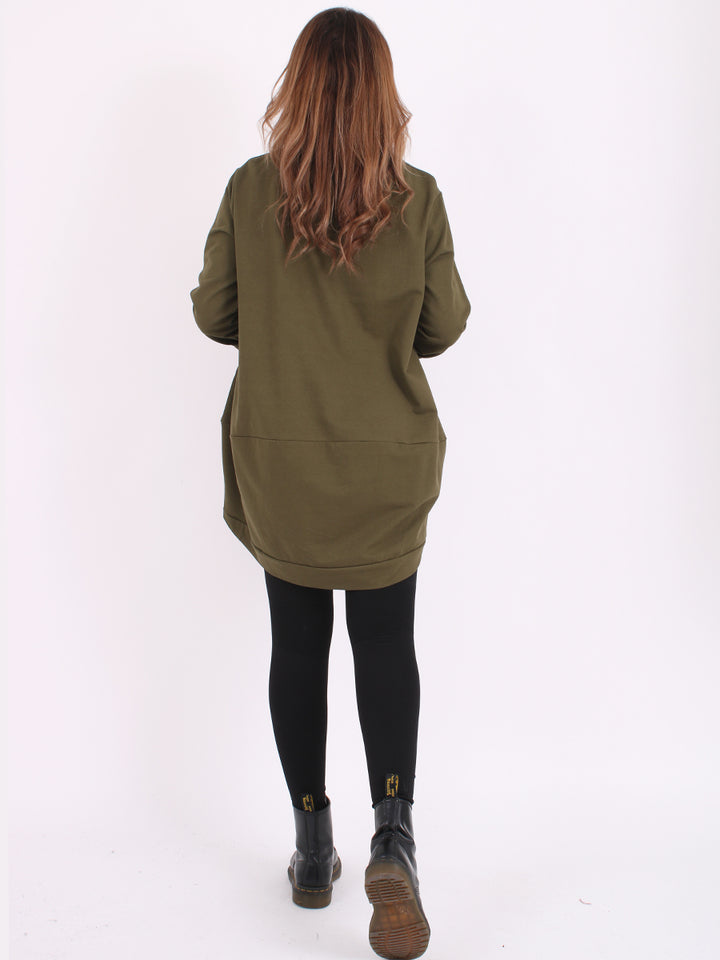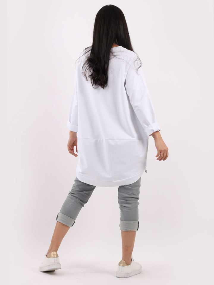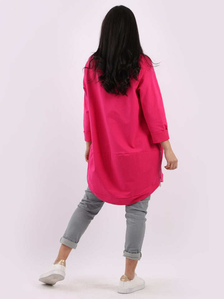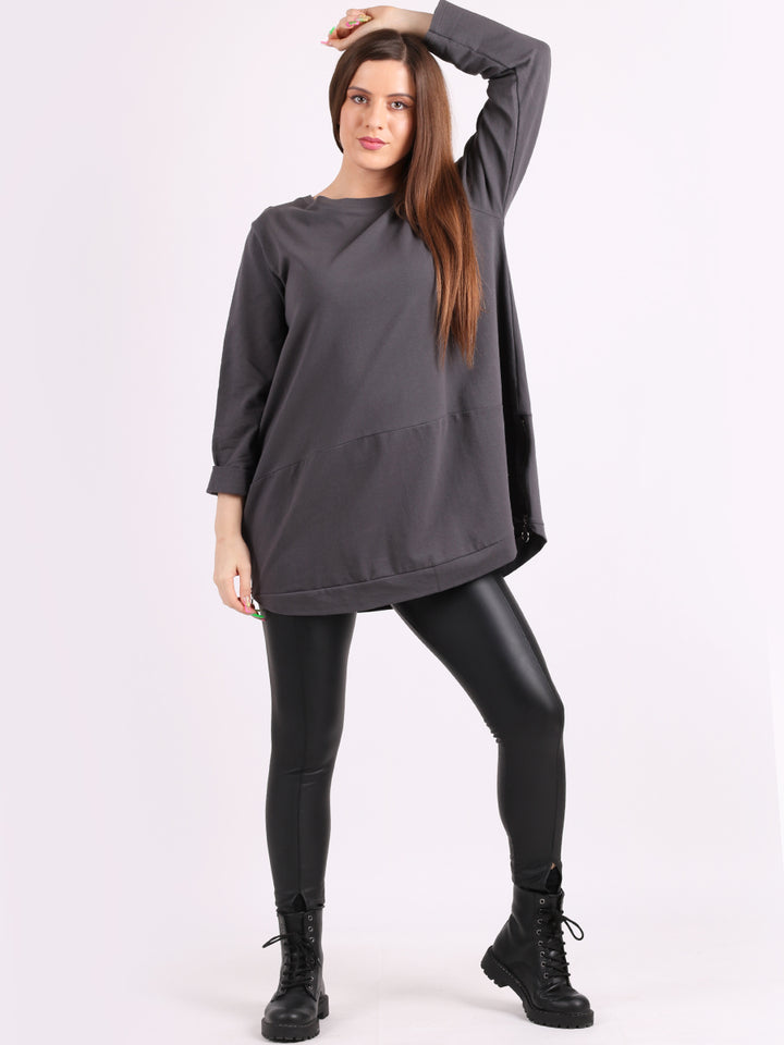 Plus Size Plain Cotton Zipped Hem Lagenlook Top
