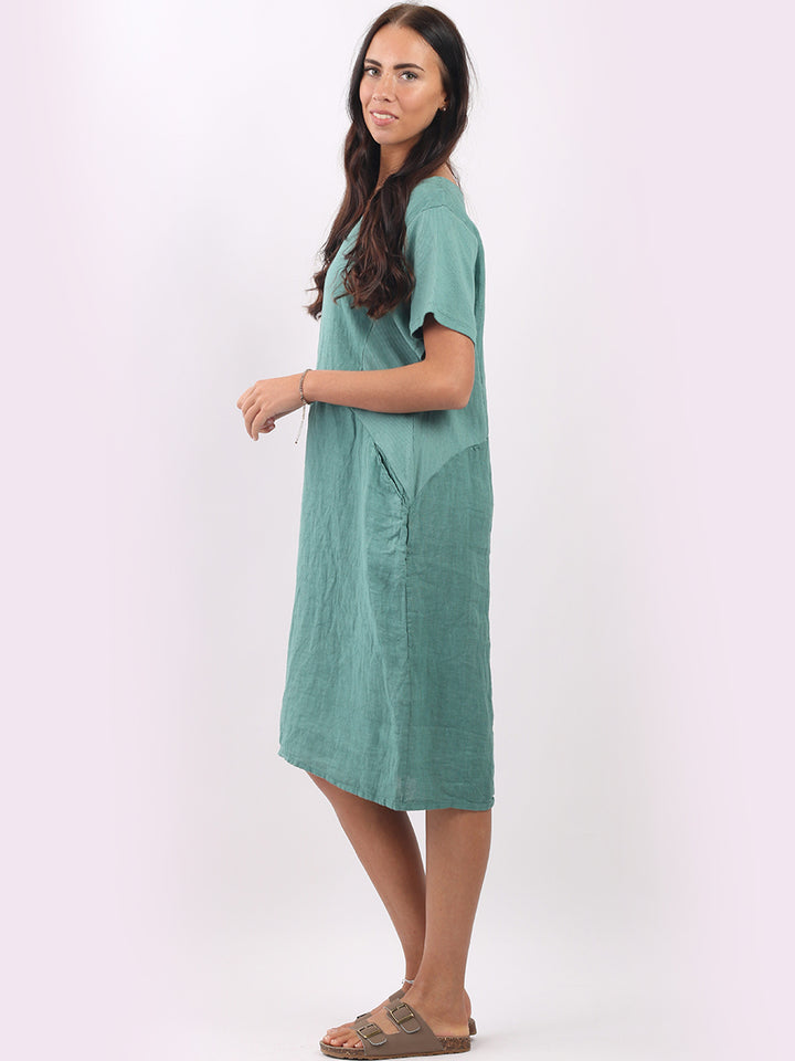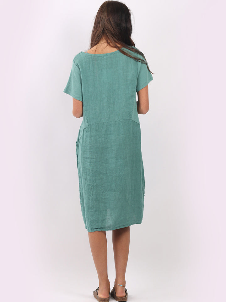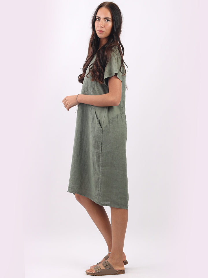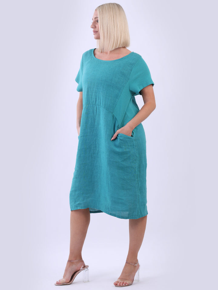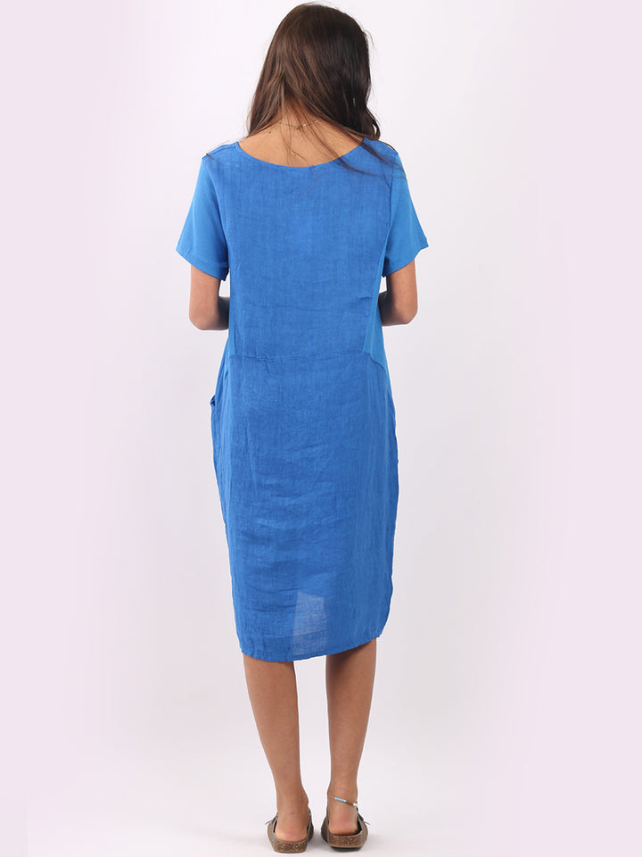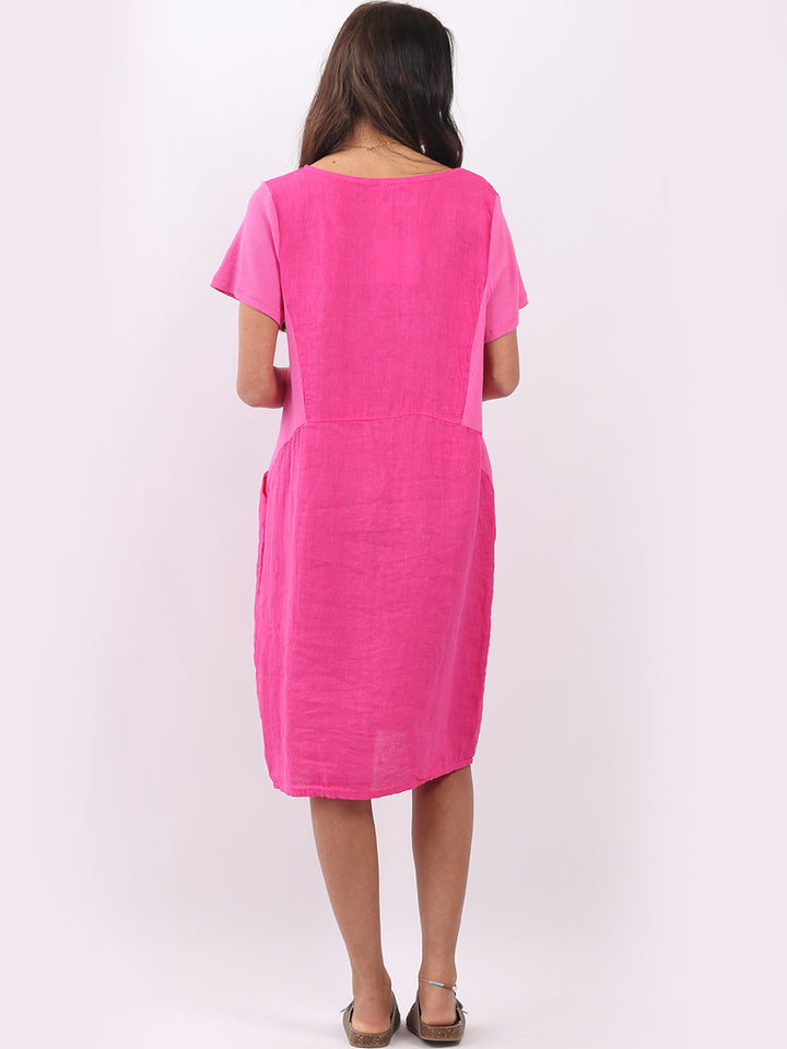 Bright and colorful with all the coziness of pure linen this is the ideal dress that women wearers adore for laid back days. Made in Italy with high quality fabric the plain dress has ribbed sides for a sleek finish, plunging round neckline and refreshing bold colors. Team it with a floral scarf for blissful finish.