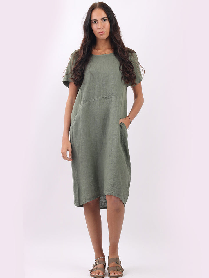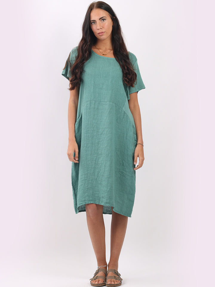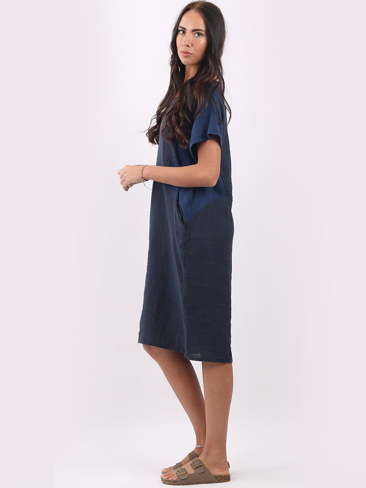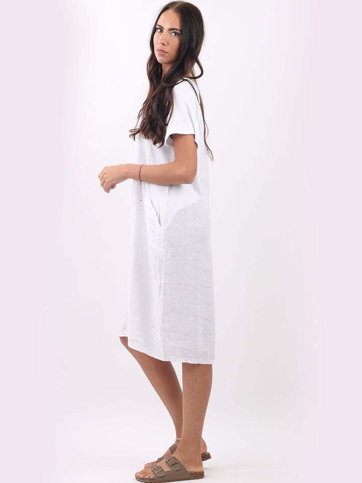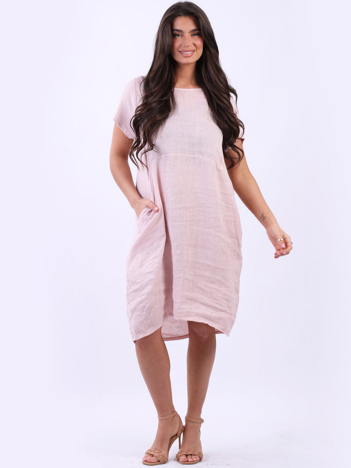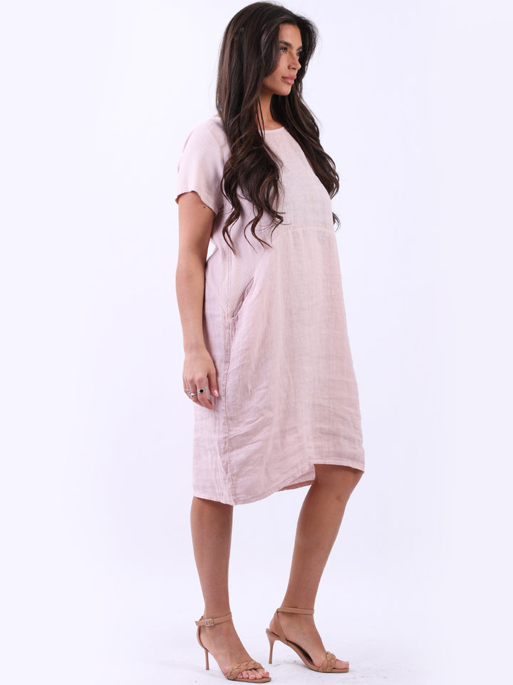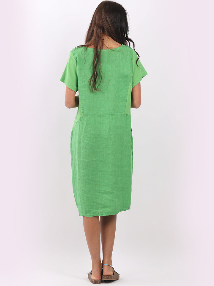 Bright and colorful with all the coziness of pure linen this is the ideal dress that women wearers adore for laid back days. Made in Italy with high quality fabric the plain dress has ribbed sides for a sleek finish, plunging round neckline and refreshing bold colors. Team it with a floral scarf for blissful finish.