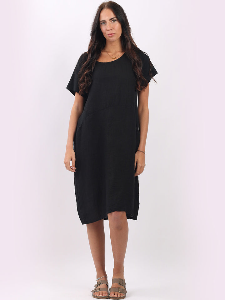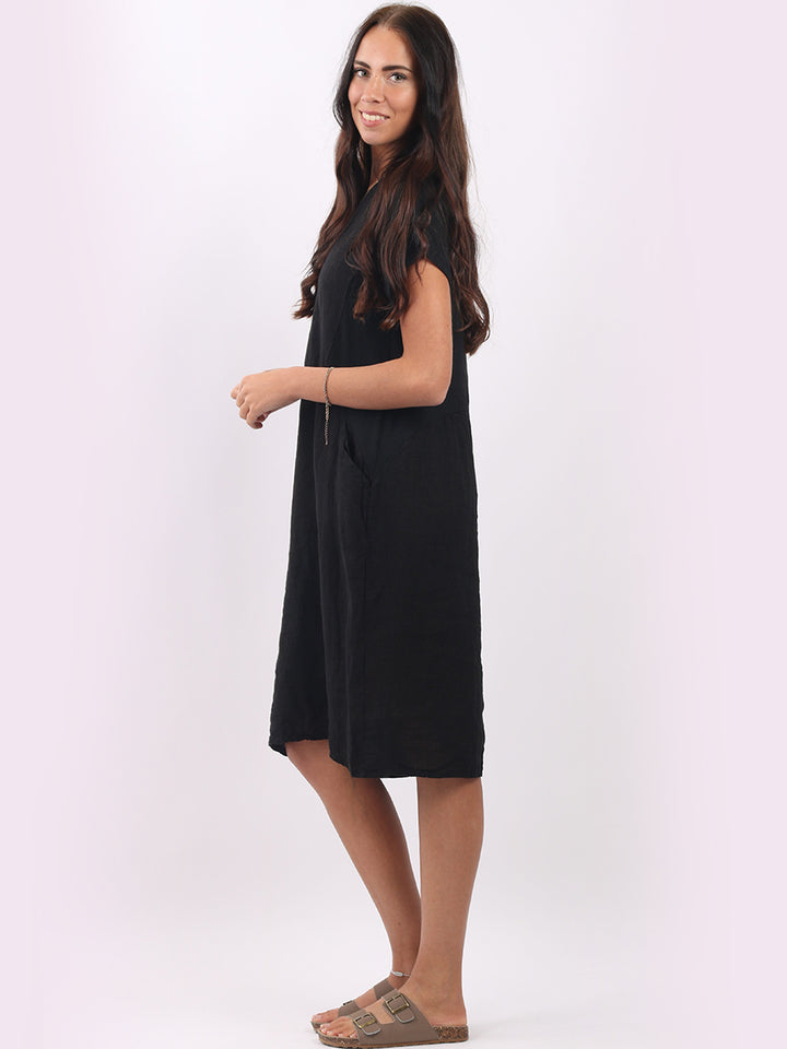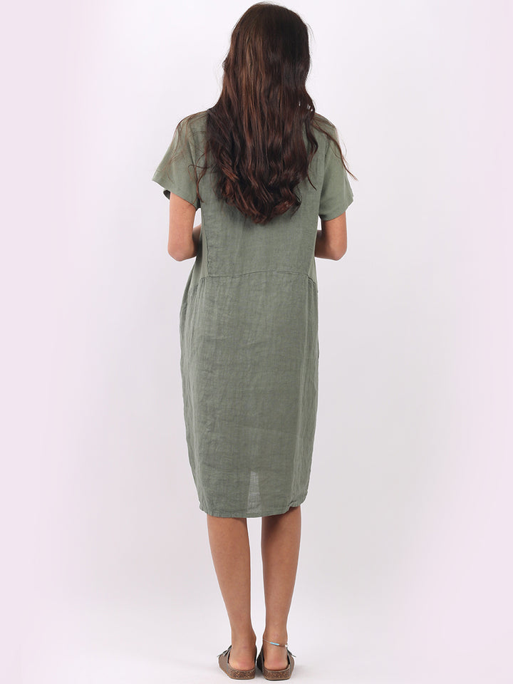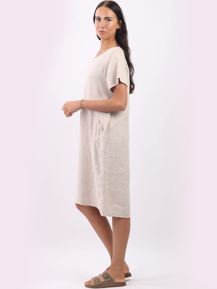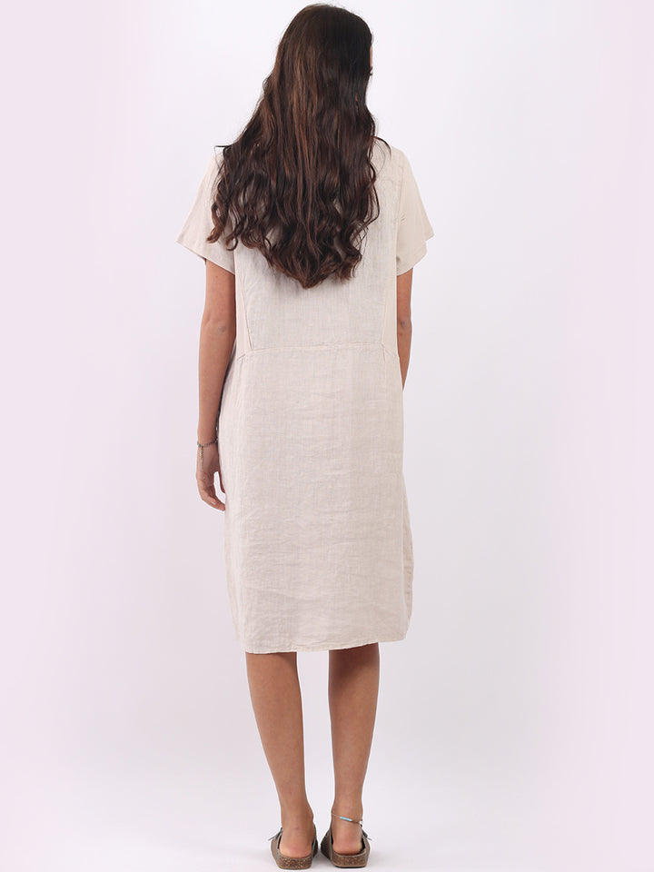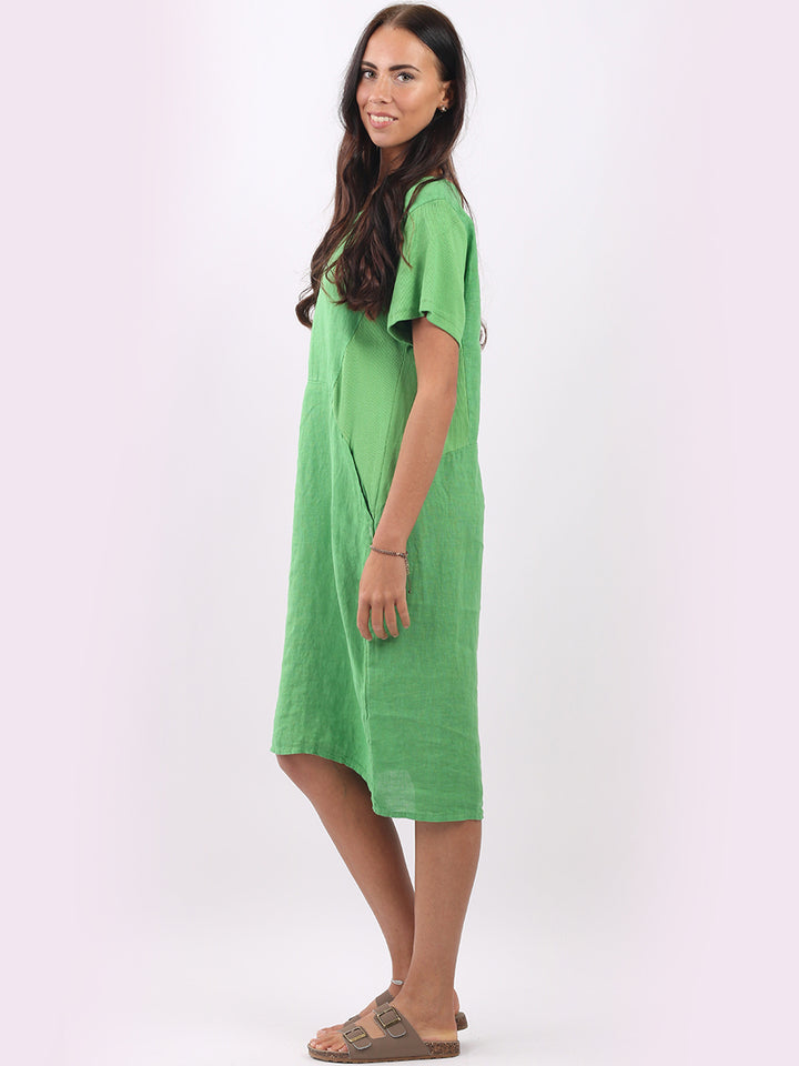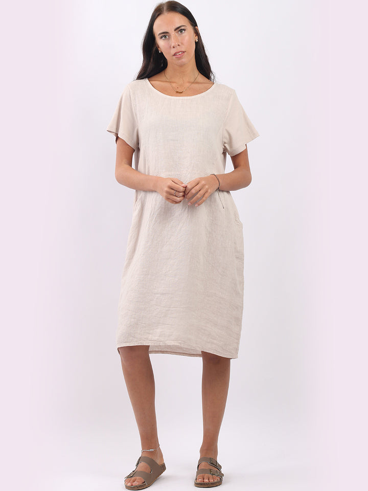 Bright and colorful with all the coziness of pure linen this is the ideal dress that women wearers adore for laid back days. Made in Italy with high quality fabric the plain dress has ribbed sides for a sleek finish, plunging round neckline and refreshing bold colors. Team it with a floral scarf for blissful finish.