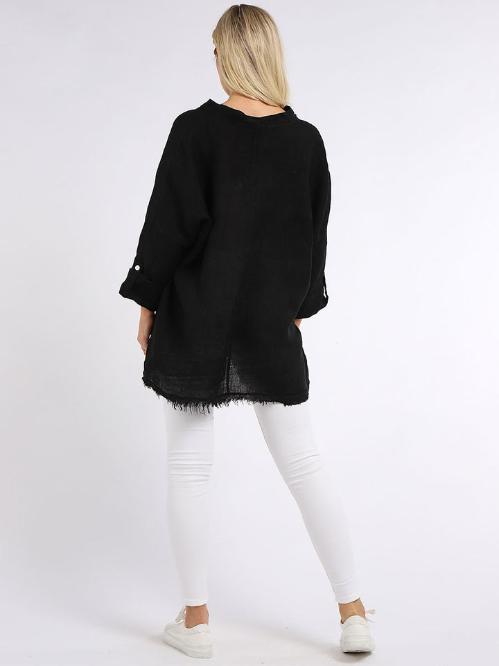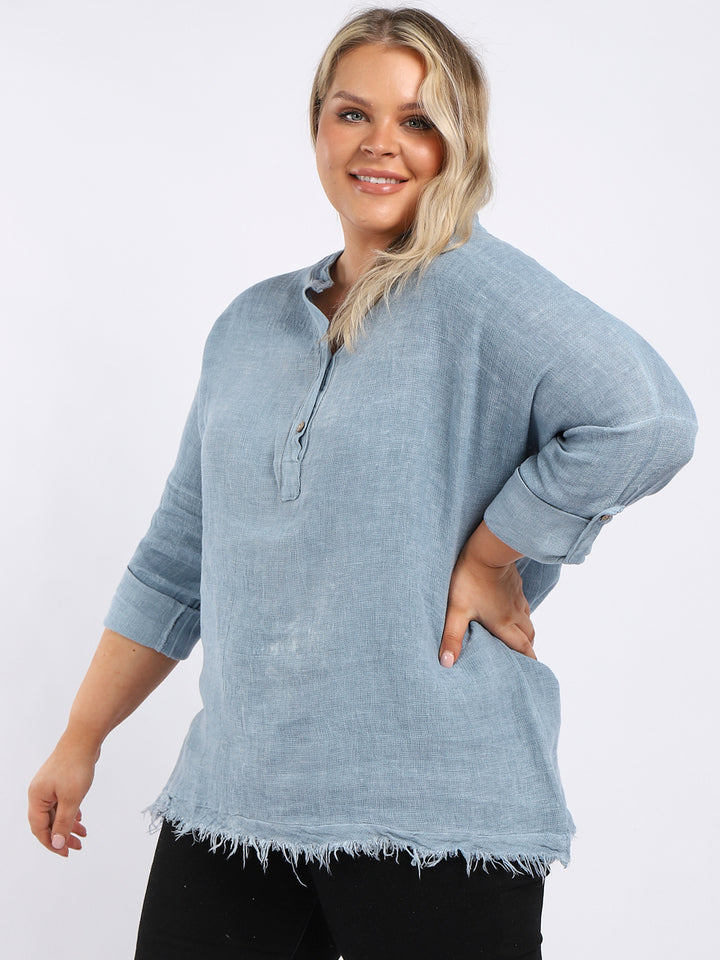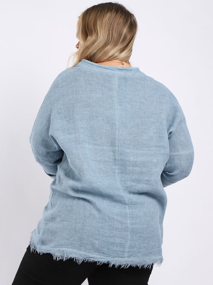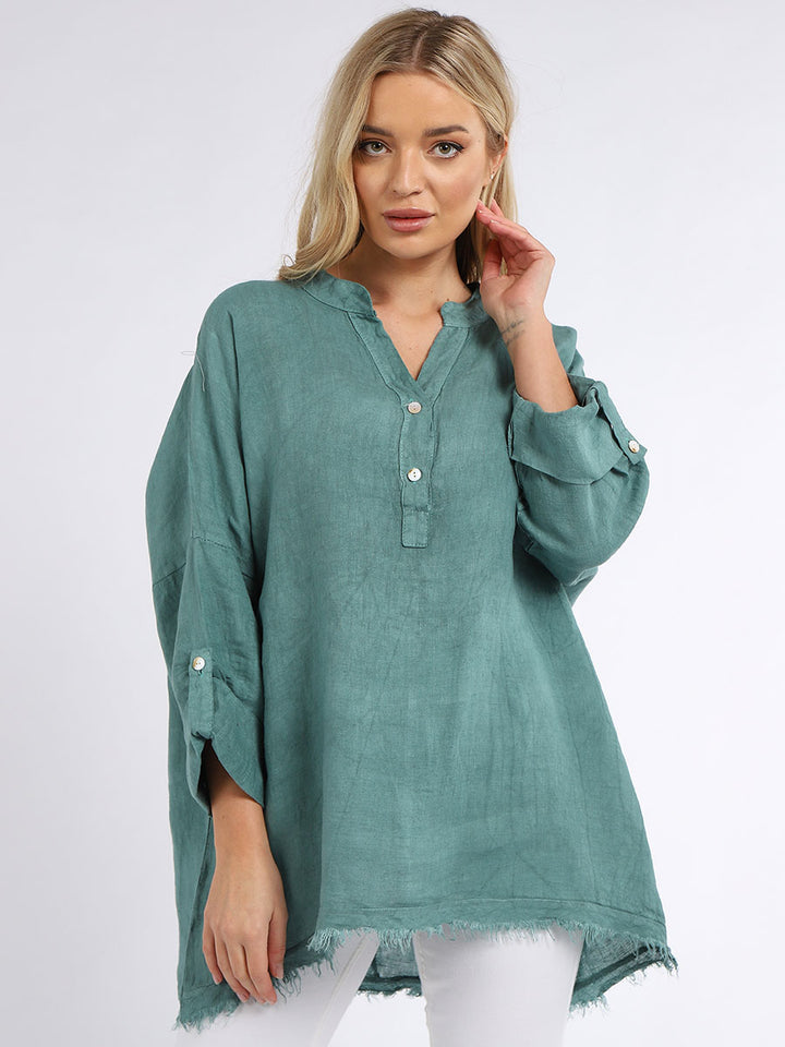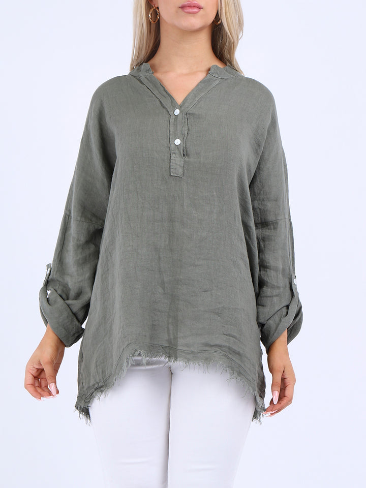 Plus Size Plain Raw Edges Relaxed Fit Linen Lagenlook Top