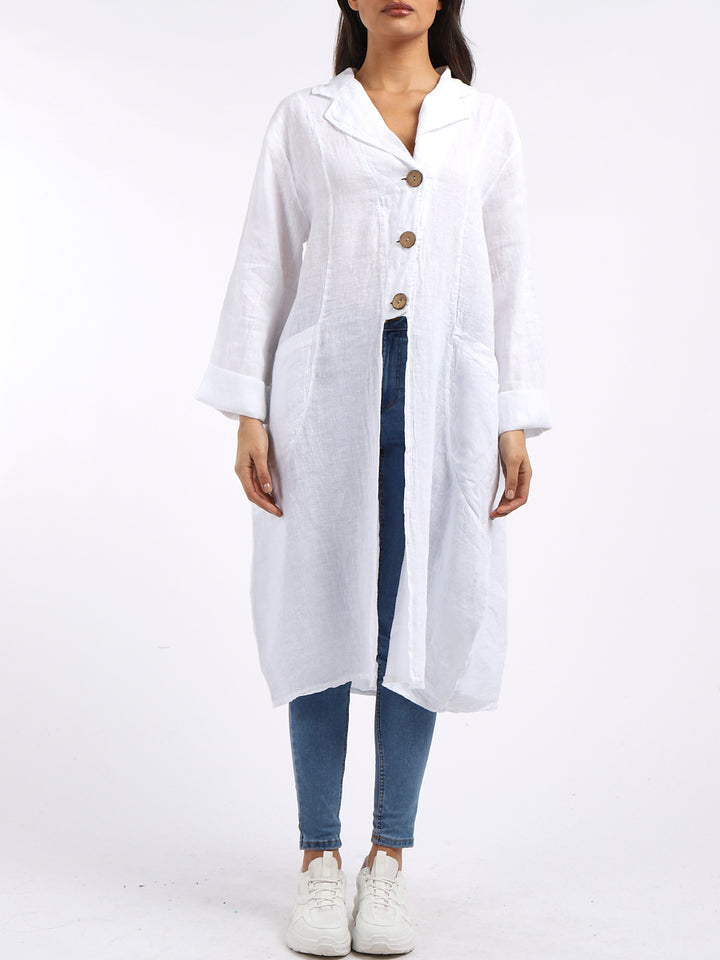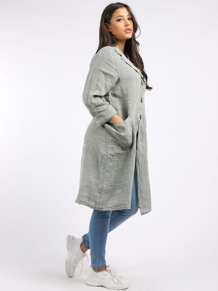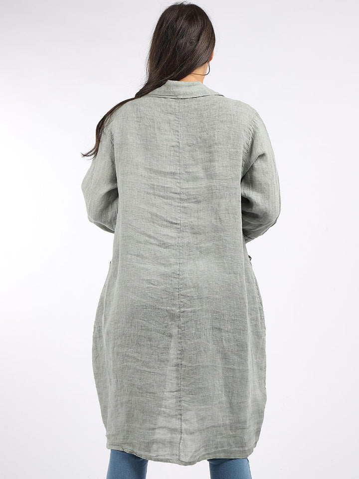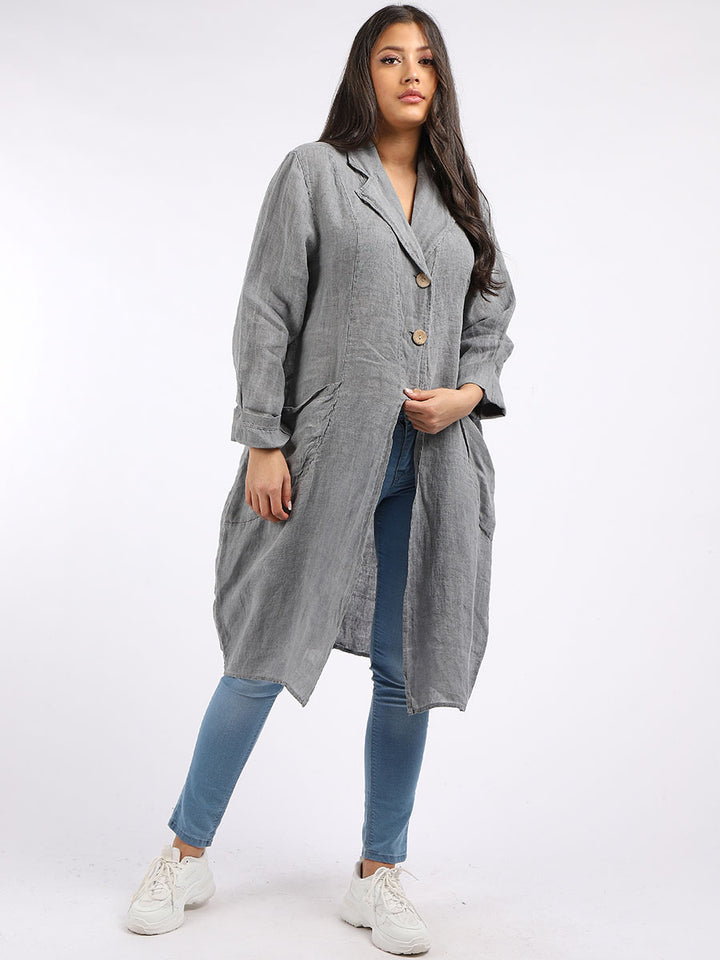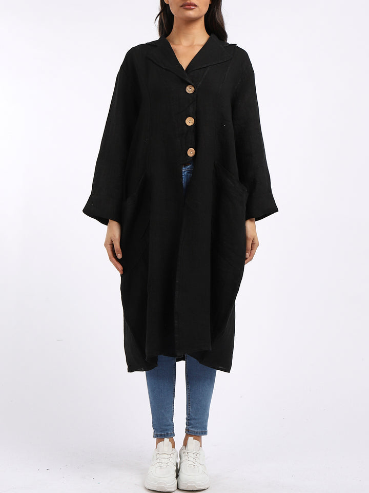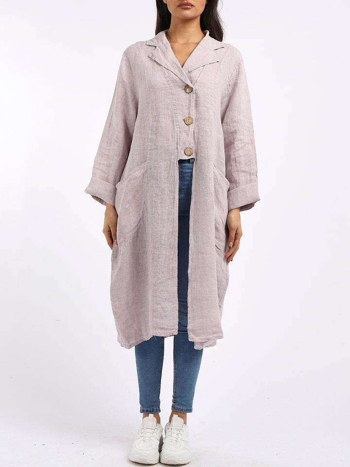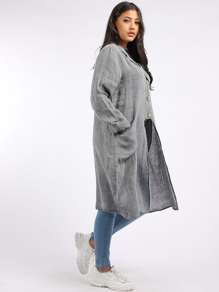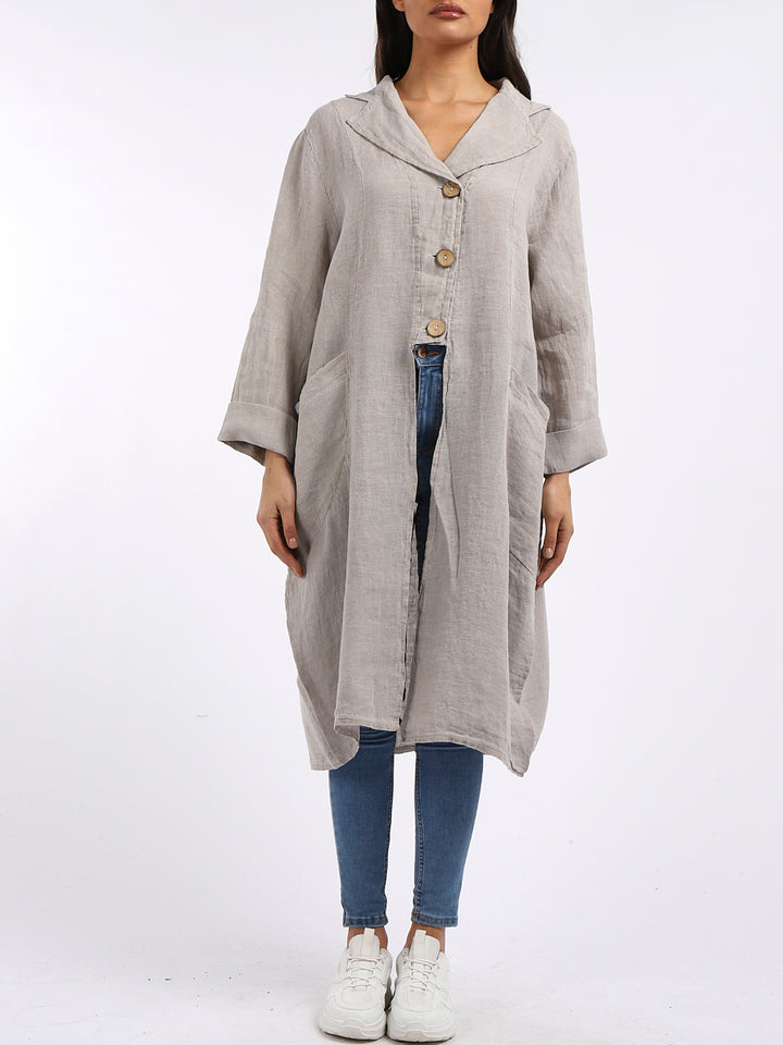 Plus Size Plain Vintage Wash Front Buttons Linen Lagenlook Jacket
