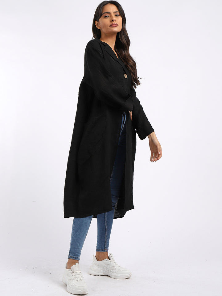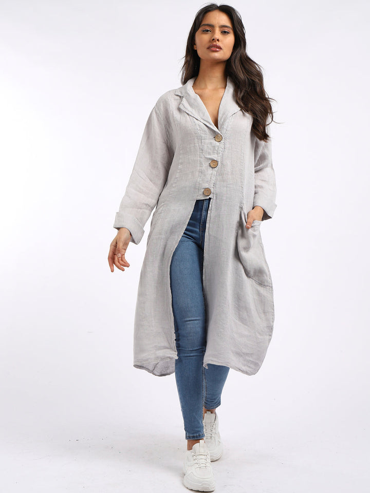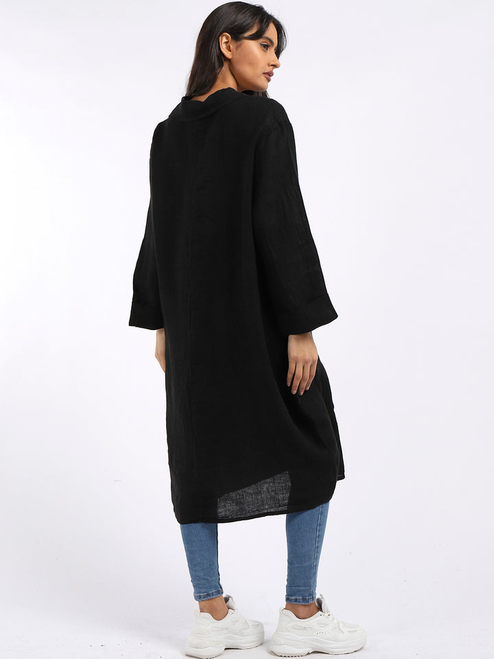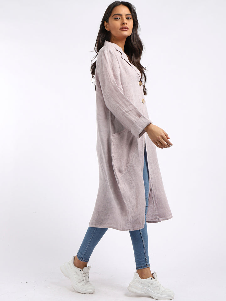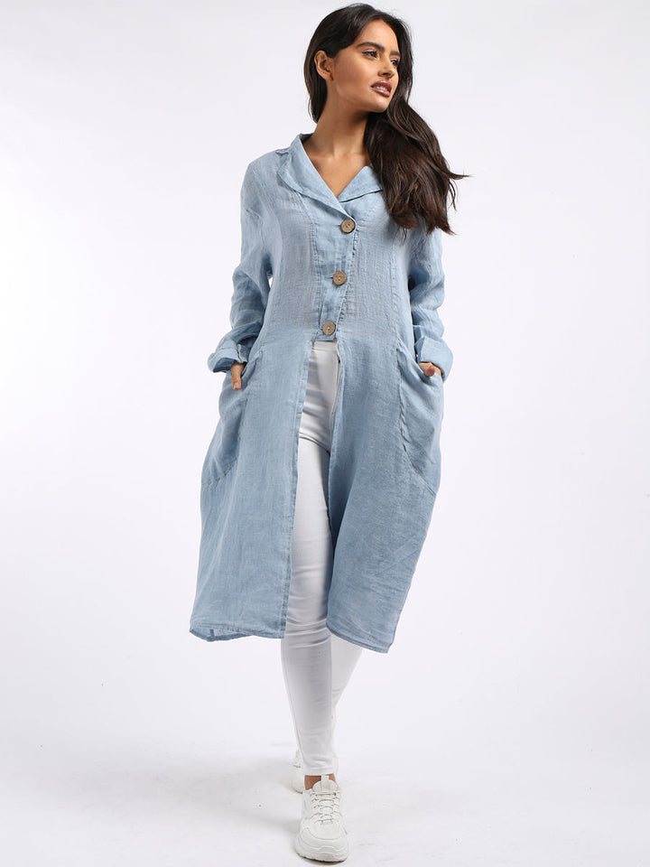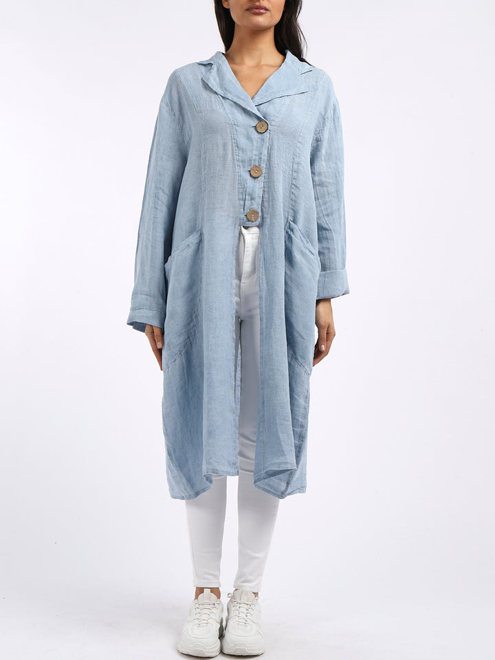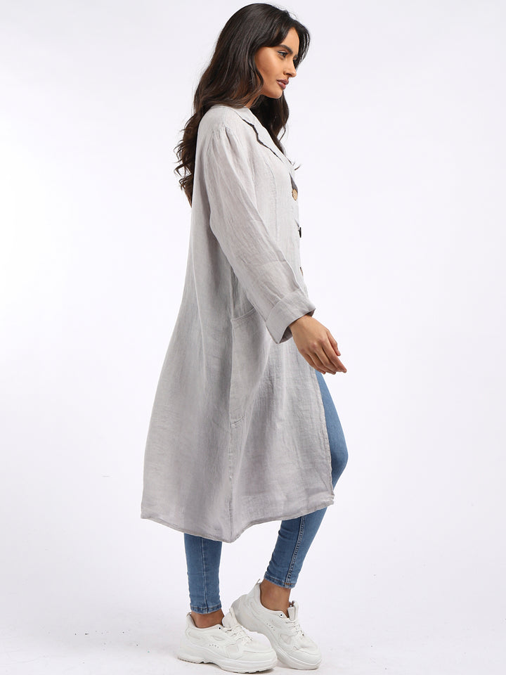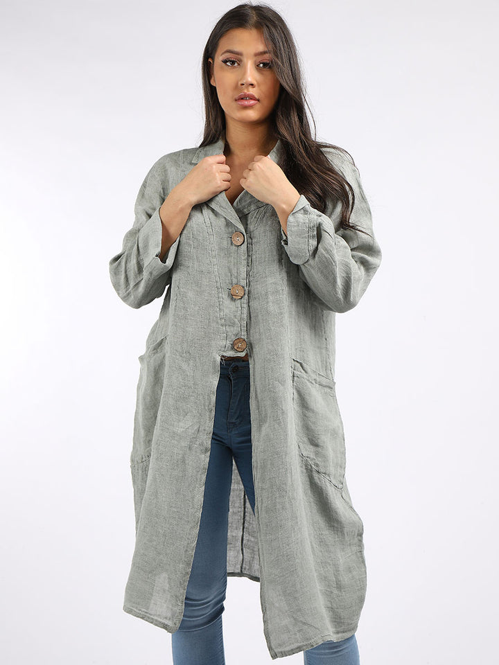 Plus Size Plain Vintage Wash Front Buttons Linen Lagenlook Jacket