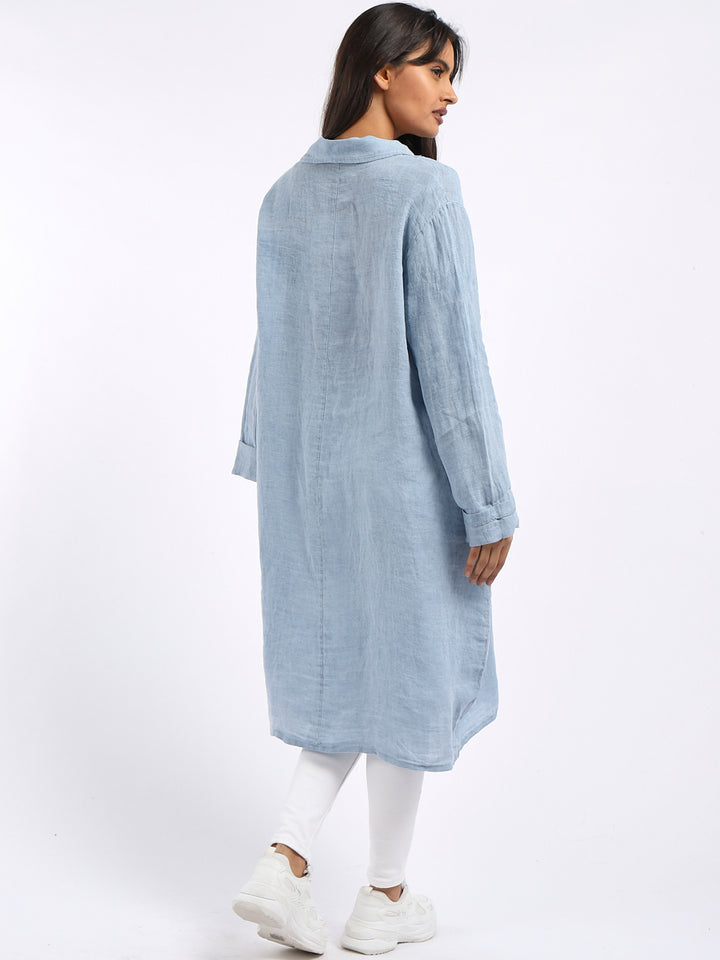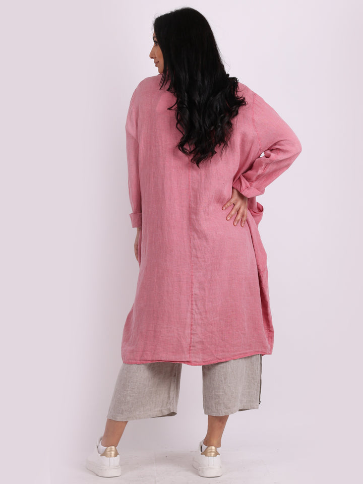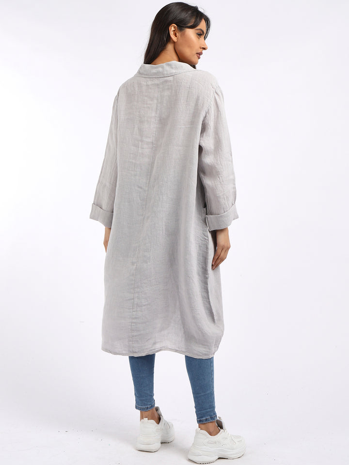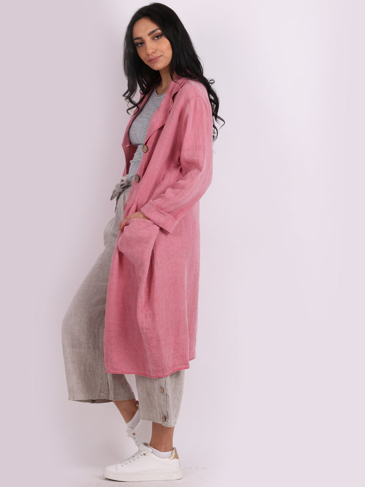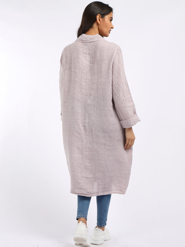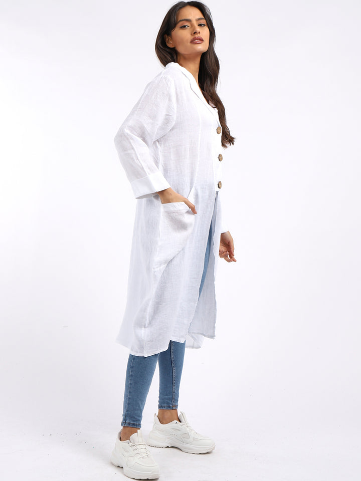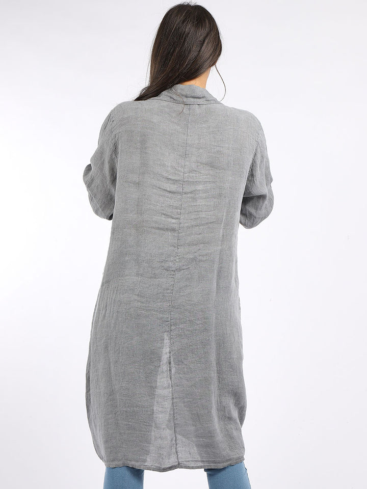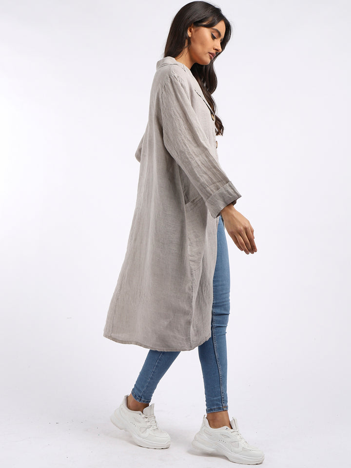 Plus Size Plain Vintage Wash Front Buttons Linen Lagenlook Jacket