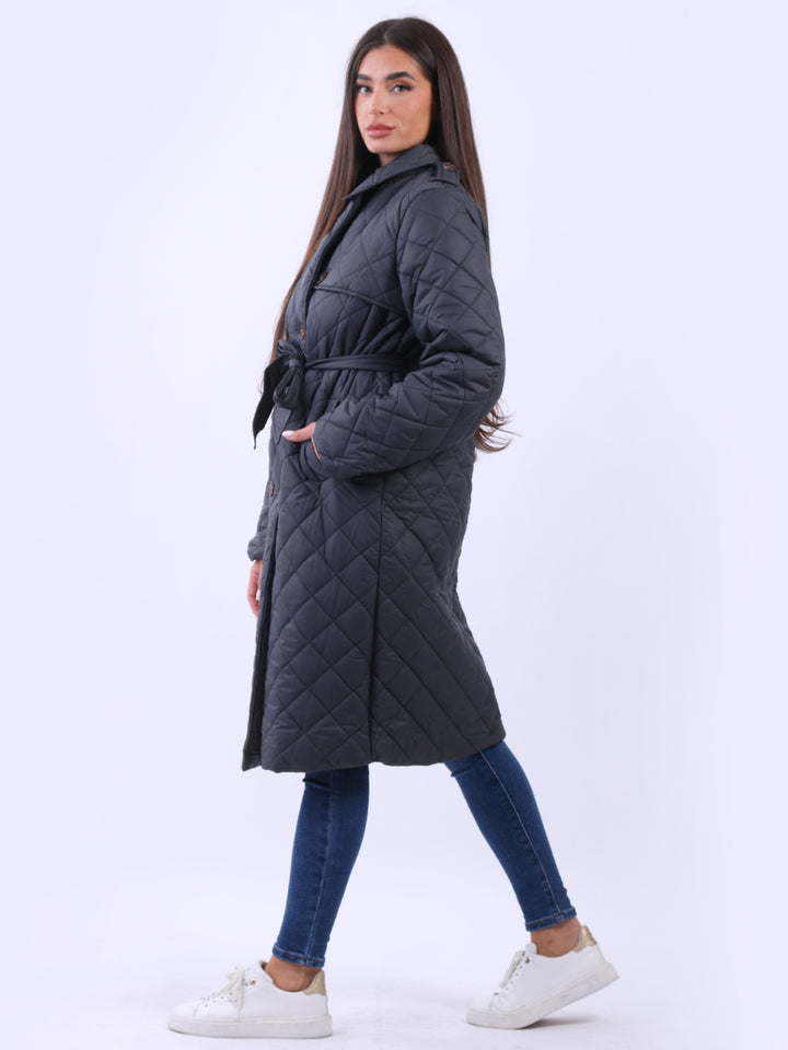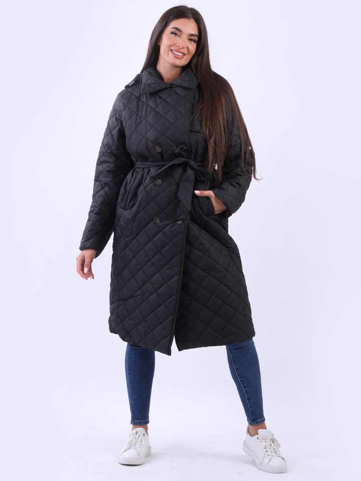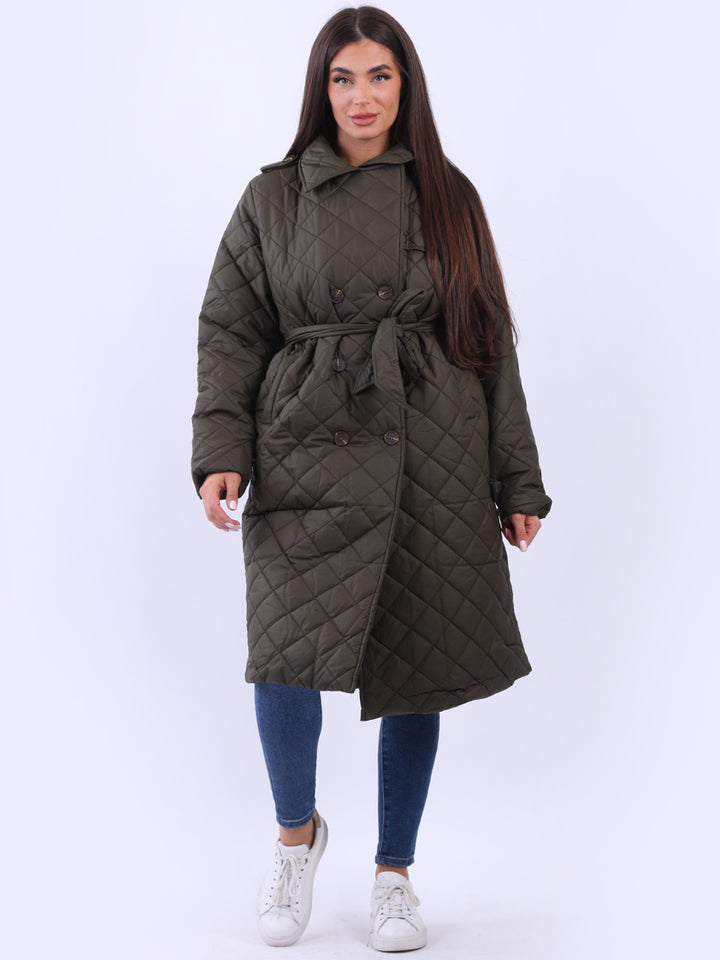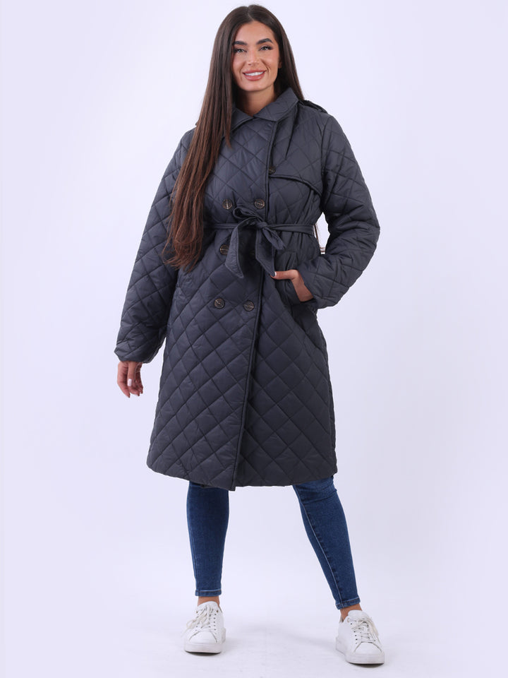 Redwholesale latest winter jackets collection that are trendy and very attractive. Made in Italy what Italian women like to wear, this padded jacket provides style and warmth both in one go. Front double breasted buttons, functional pockets and long length makes this plus size long jacket a super hit outfit this season.