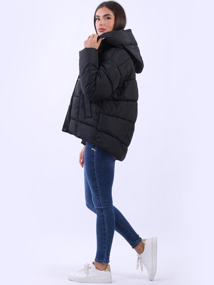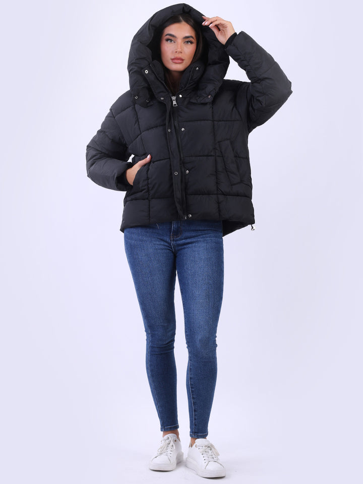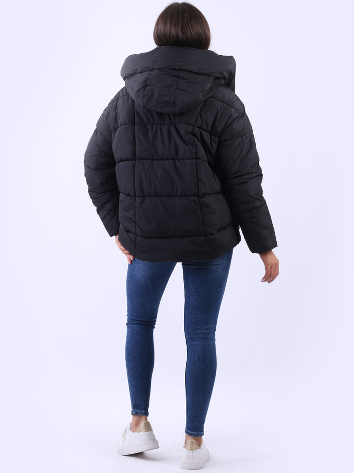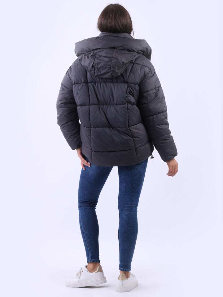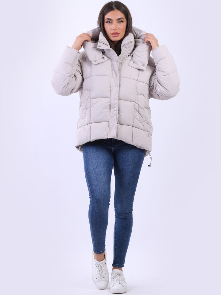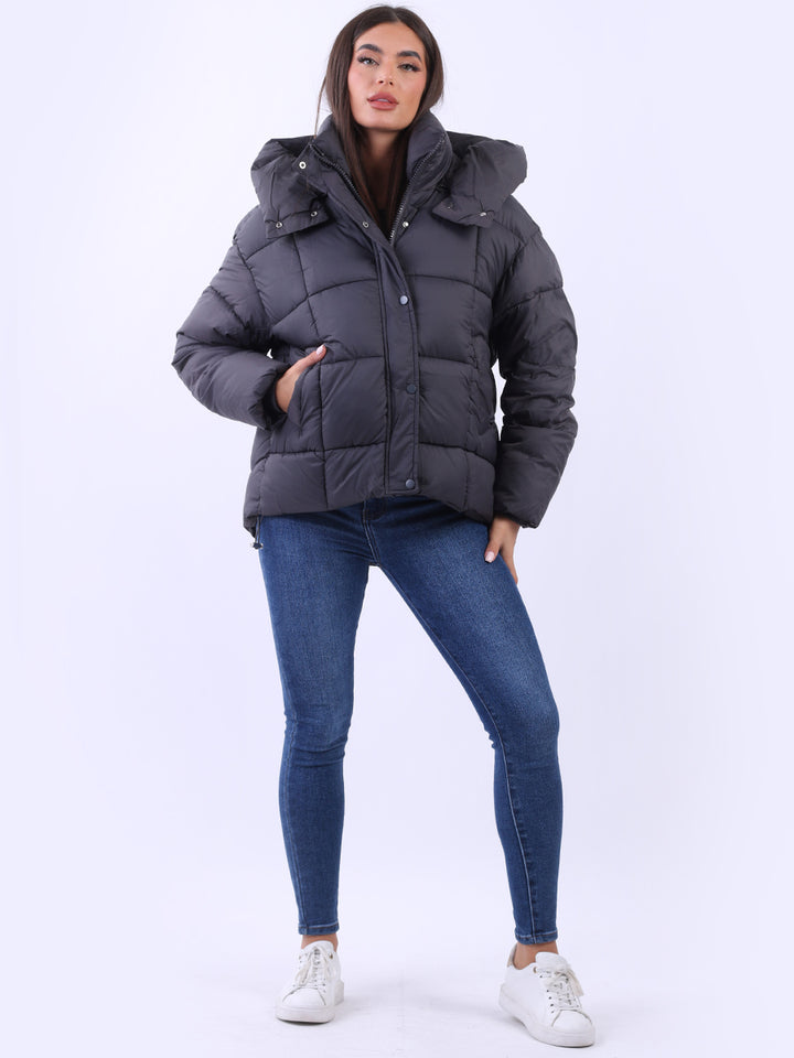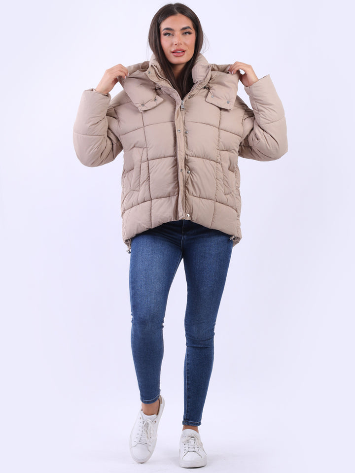 Women's winter jacket that is trendy and the style what ladies wear in Italy. Make a statement with this gold, lush and padded fluffy soft jacket with hood. Slightly longer back, front zipper and button detailing makes it uniquely boutique style that is ideal for ladies to wear in winter and enjoy warmth.