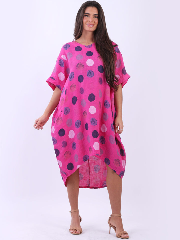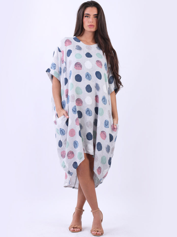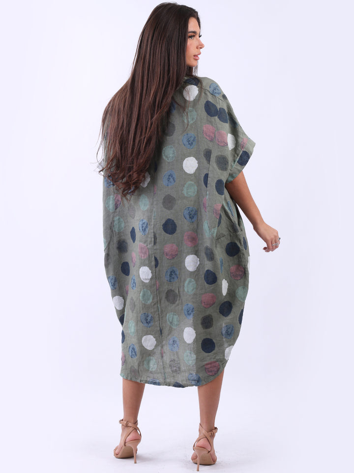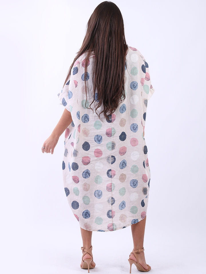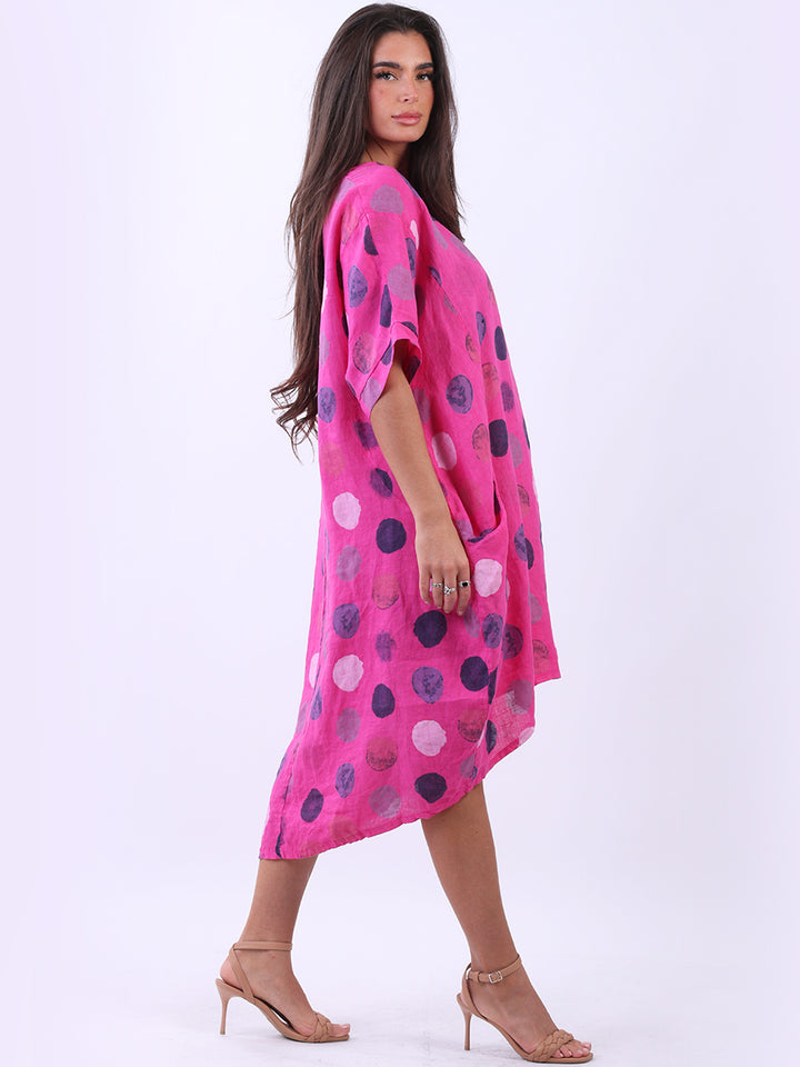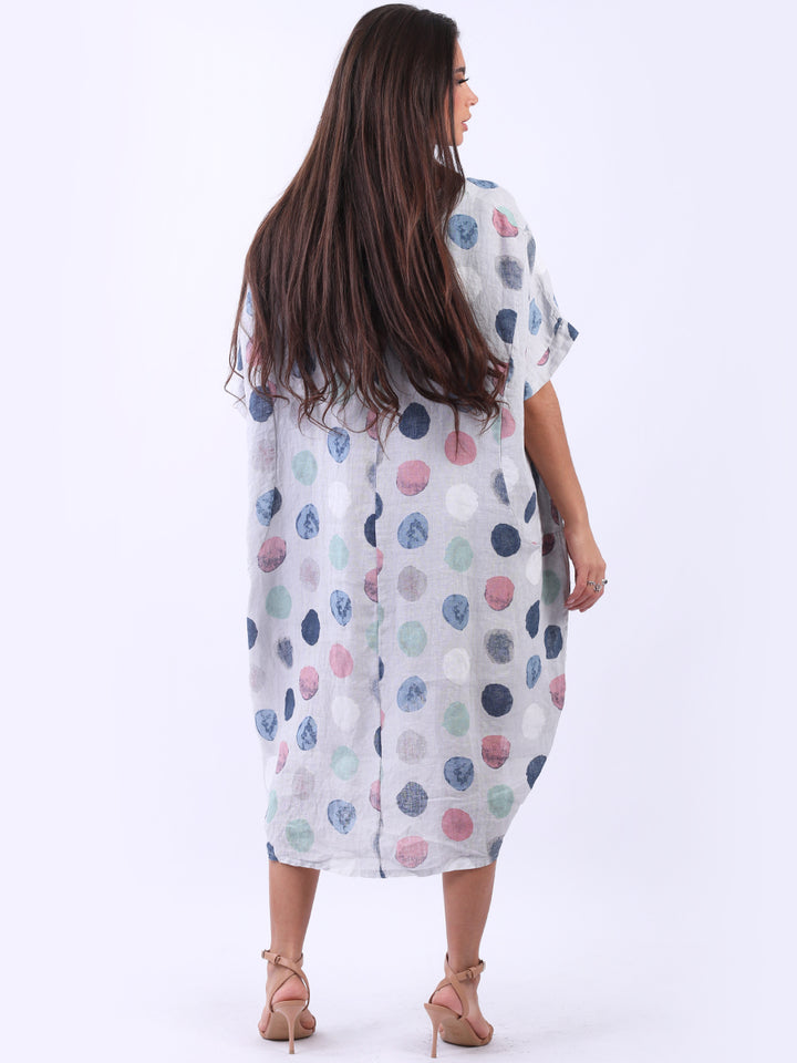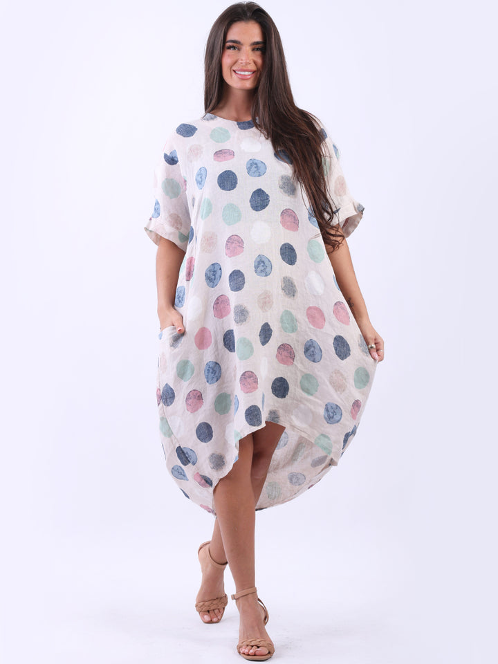 Artistic and authentic this is the look that women wearers dream to have for casual Italian women clothing. Dreamy and timeless multi polka dot print, that gives a painted style finish to the overall design, made in Italy with unique and durable linen fabric that is remarkable for every season and style. Functional pockets and high low hem makes it a unique Italian moda silhouette. Dress it with capris and high heels to finish the look in style.