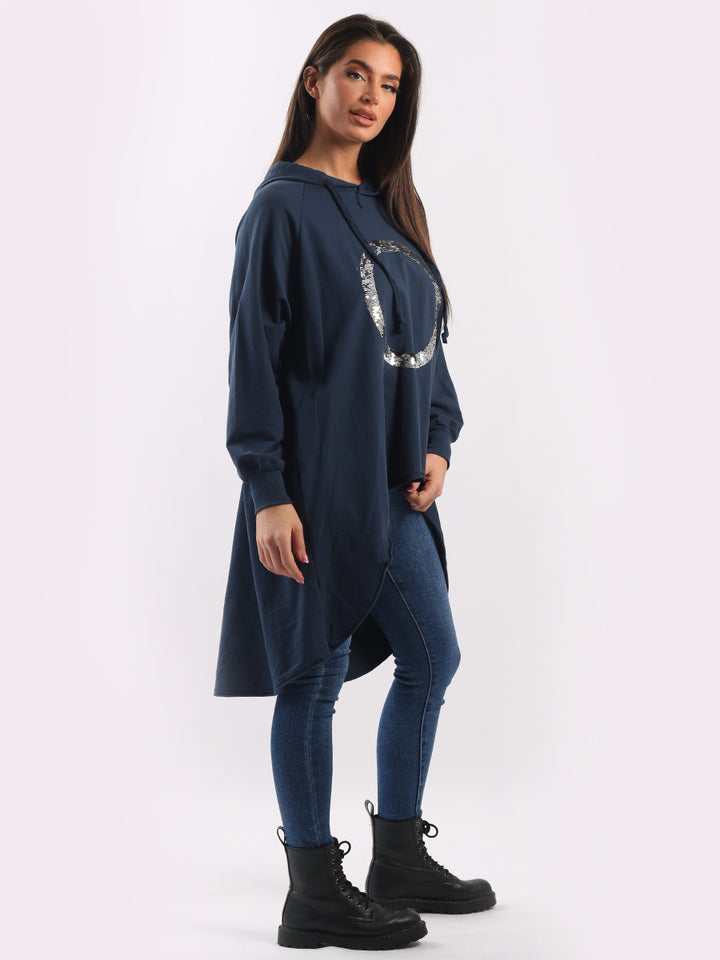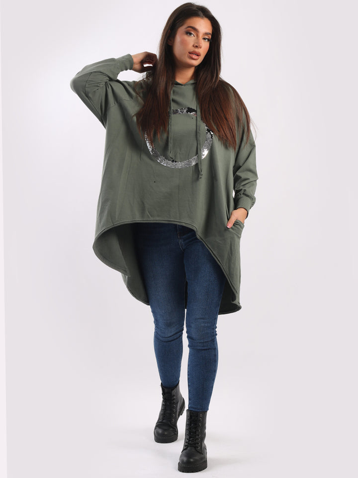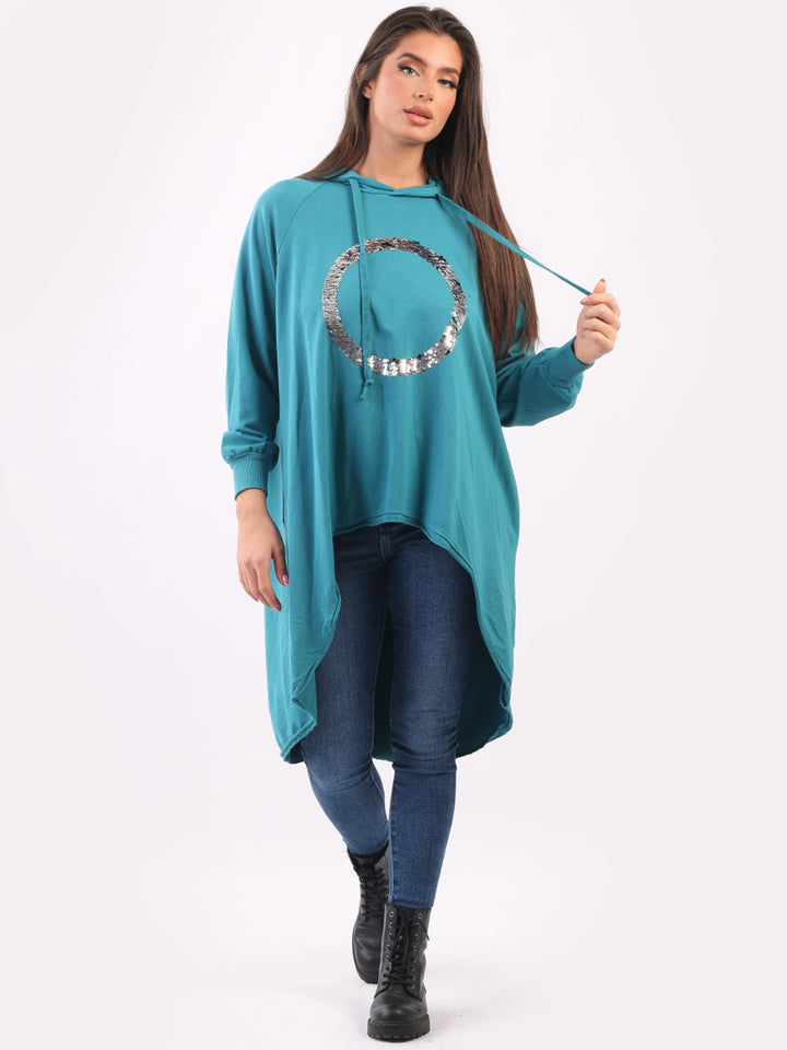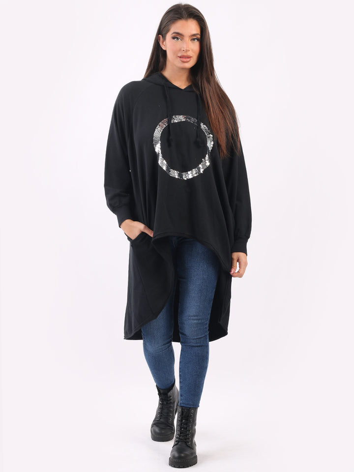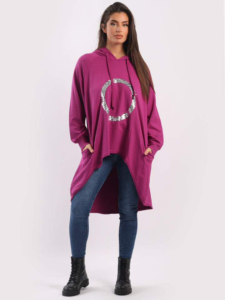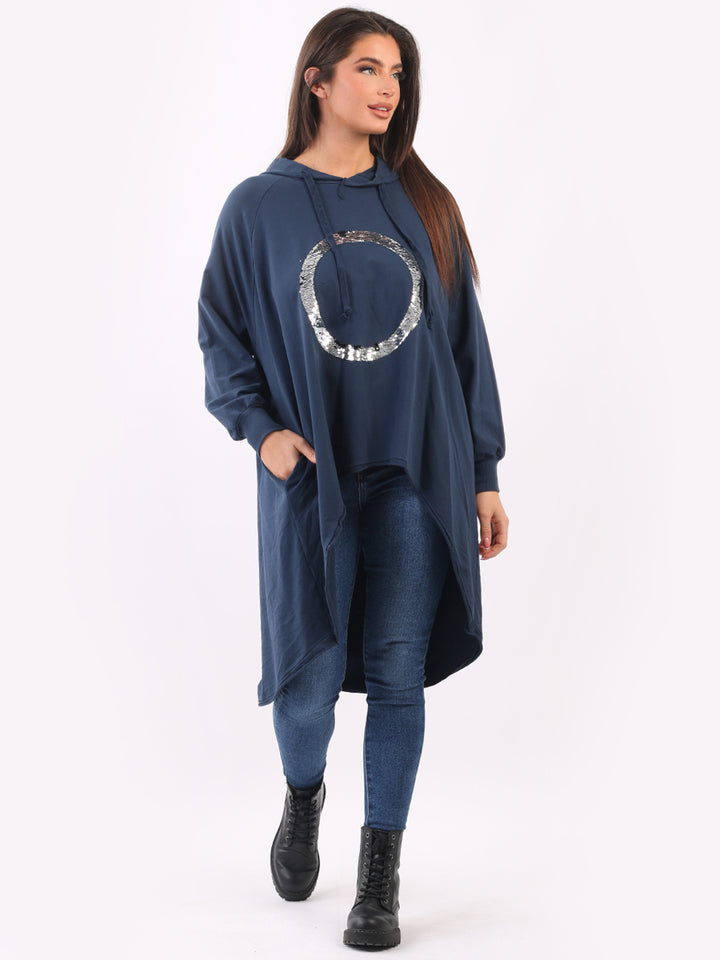 Celestial and magical this is one of the trendy clothes for seasonal bliss. Feature rich and made in Italy with pure and soft cotton, this winter dress has sequin halo style circular at the front, baggy plus size fit and high demand hood. Redwholesale plus size womens clothing store London designed this Italian moda dress with all the features that have made online shopping of clothes satisfying. Dress it with sequin plants and long boots.