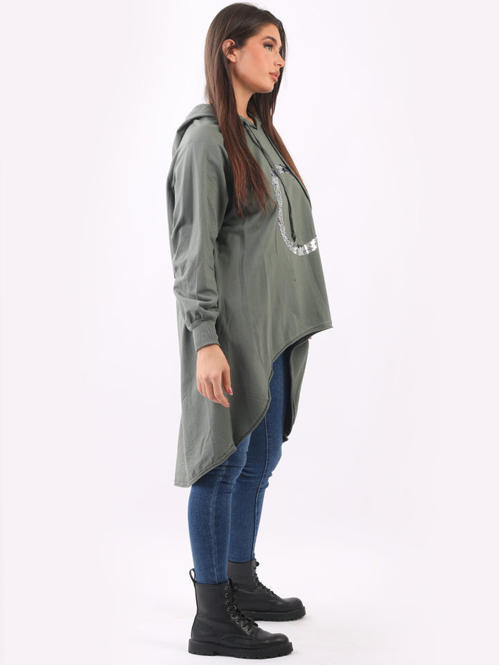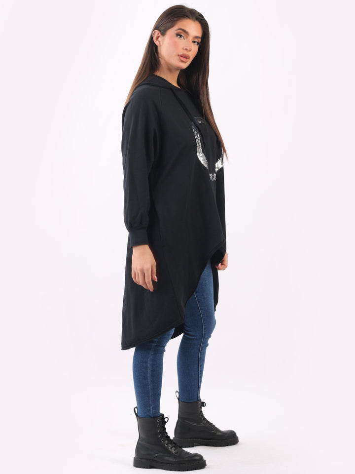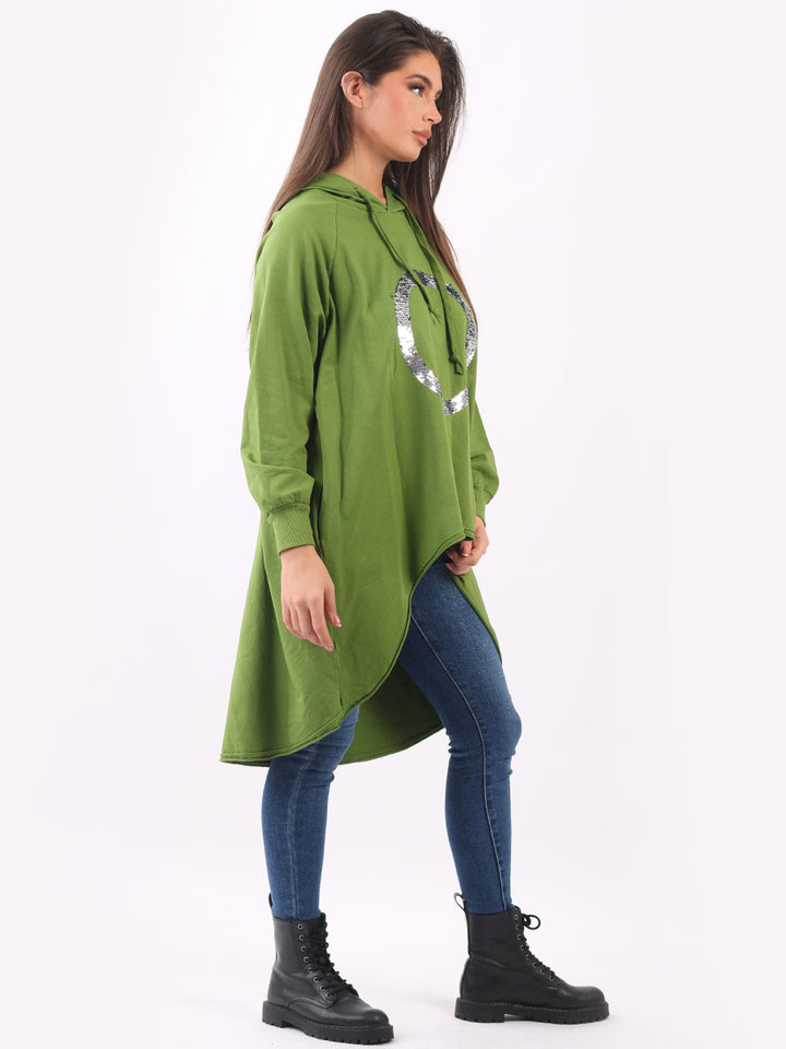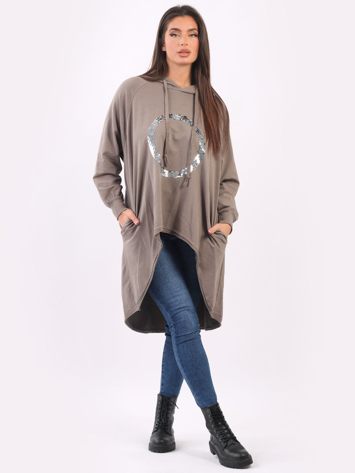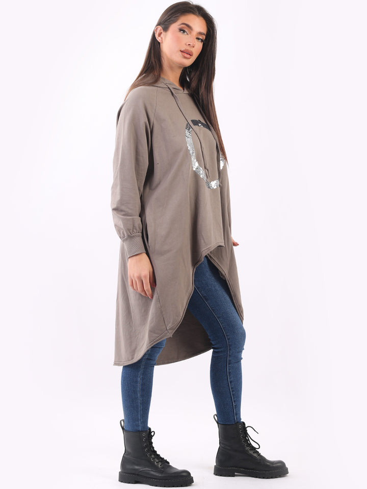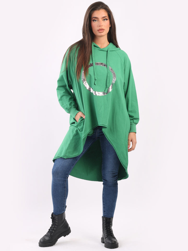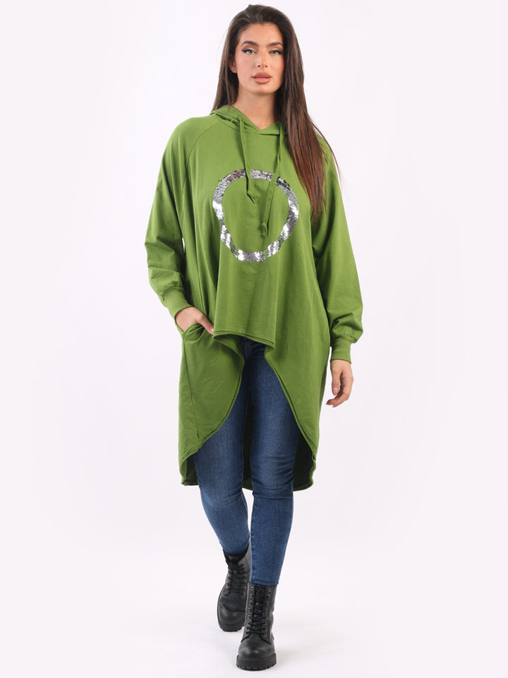 Celestial and magical this is one of the trendy clothes for seasonal bliss. Feature rich and made in Italy with pure and soft cotton, this winter dress has sequin halo style circular at the front, baggy plus size fit and high demand hood. Redwholesale plus size womens clothing store London designed this Italian moda dress with all the features that have made online shopping of clothes satisfying. Dress it with sequin plants and long boots.