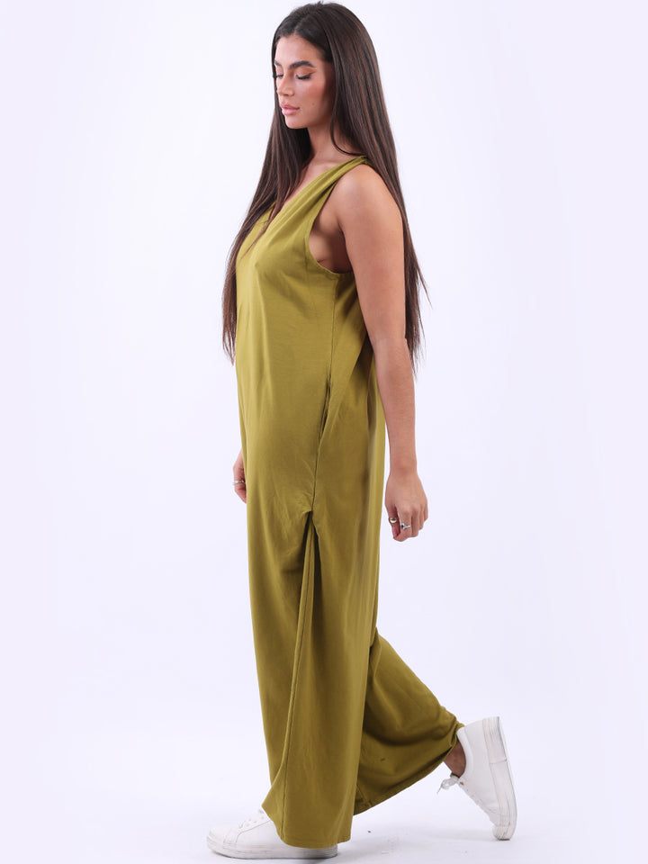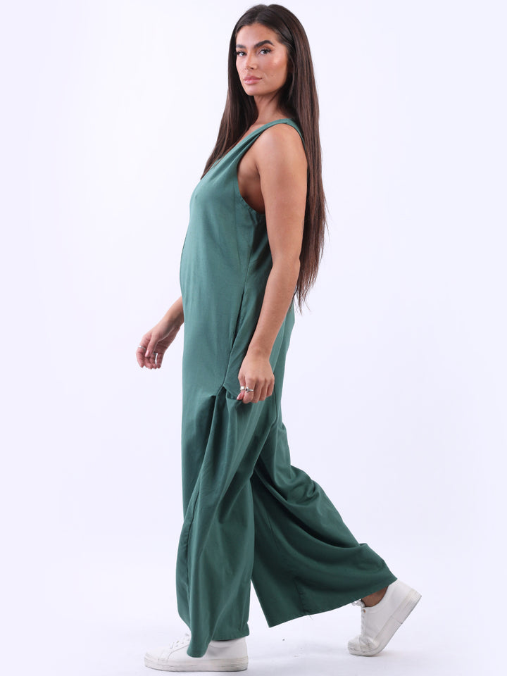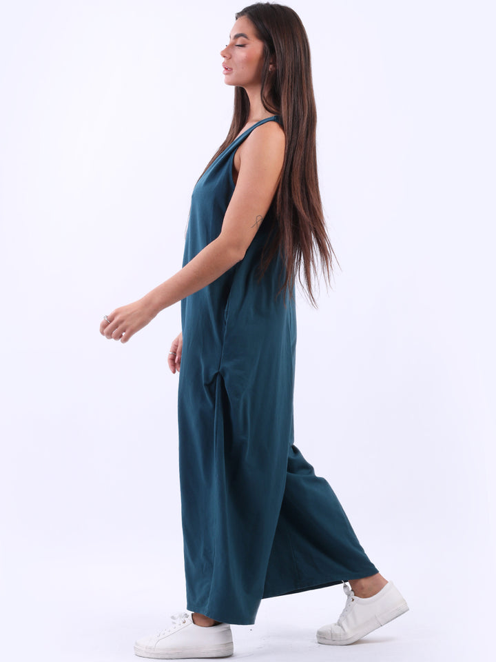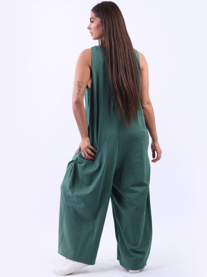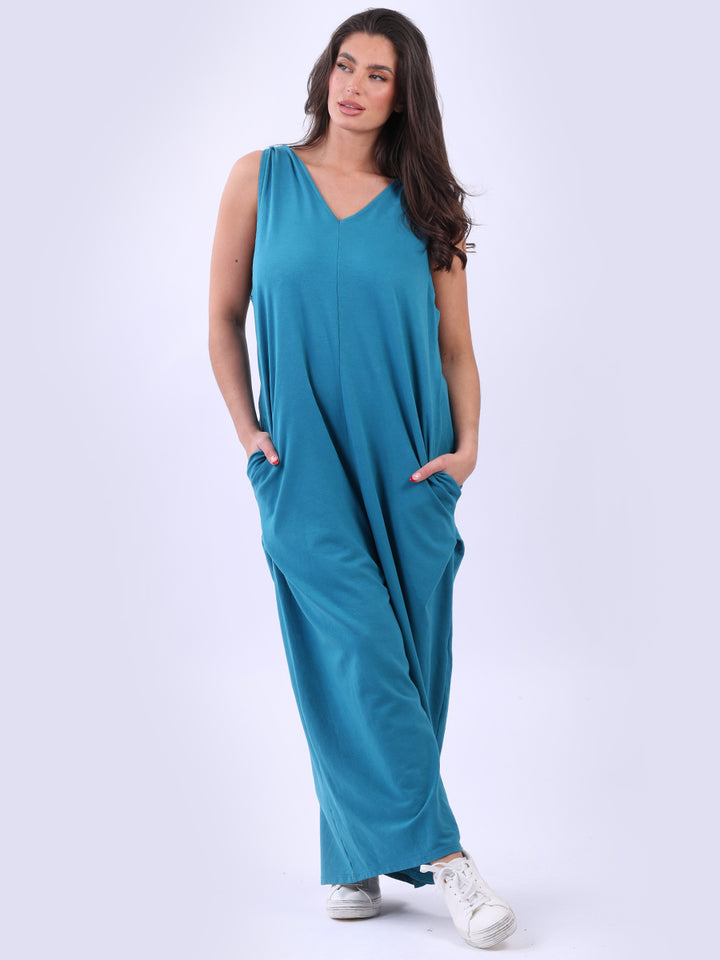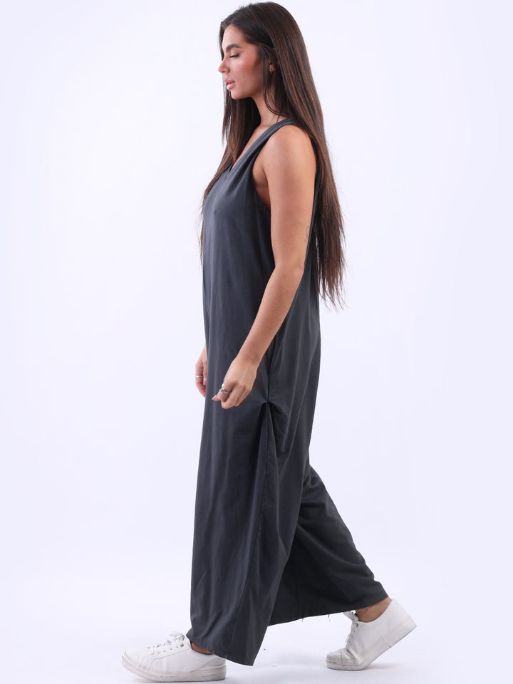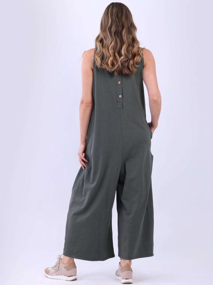 Casual Italian fashion at its best with Italian women look made easy. Jumpsuits are ideal for all seasons with its very comfy look and feel. Plunging V-neckline, baggy plus size fit with chic button detailing at the back. Mix and match with fine knit cardigans from Redwholesale London.