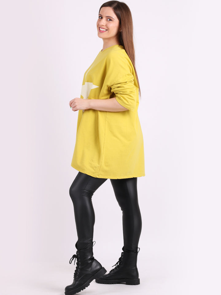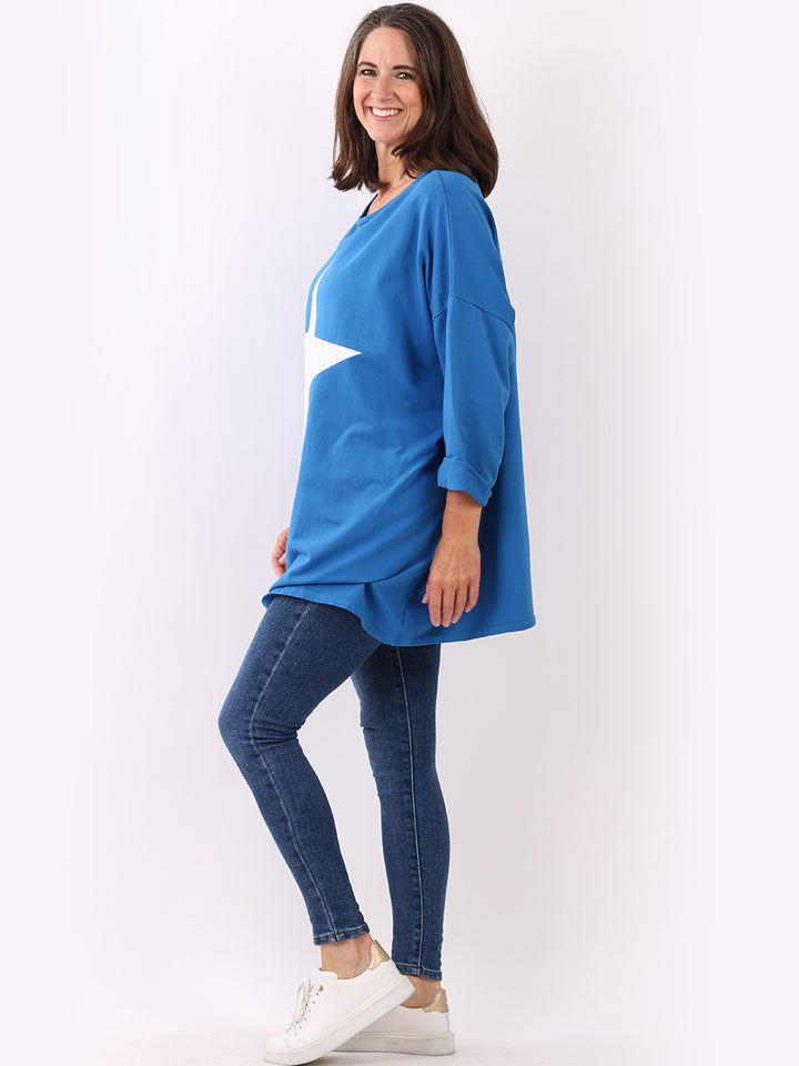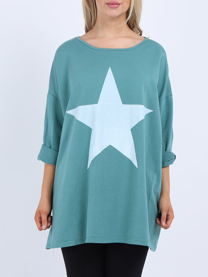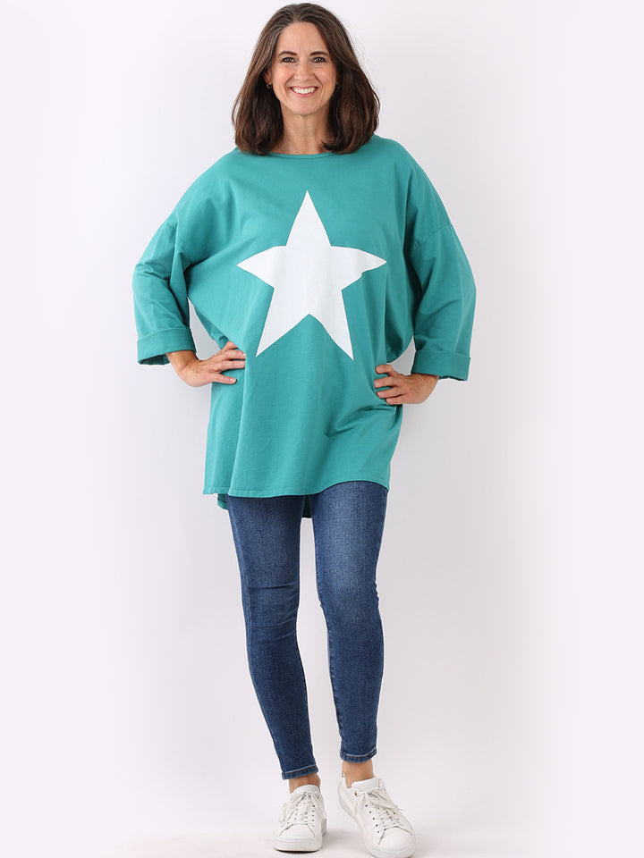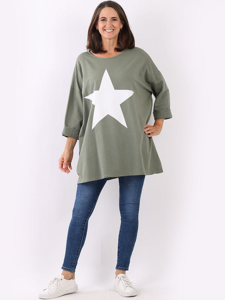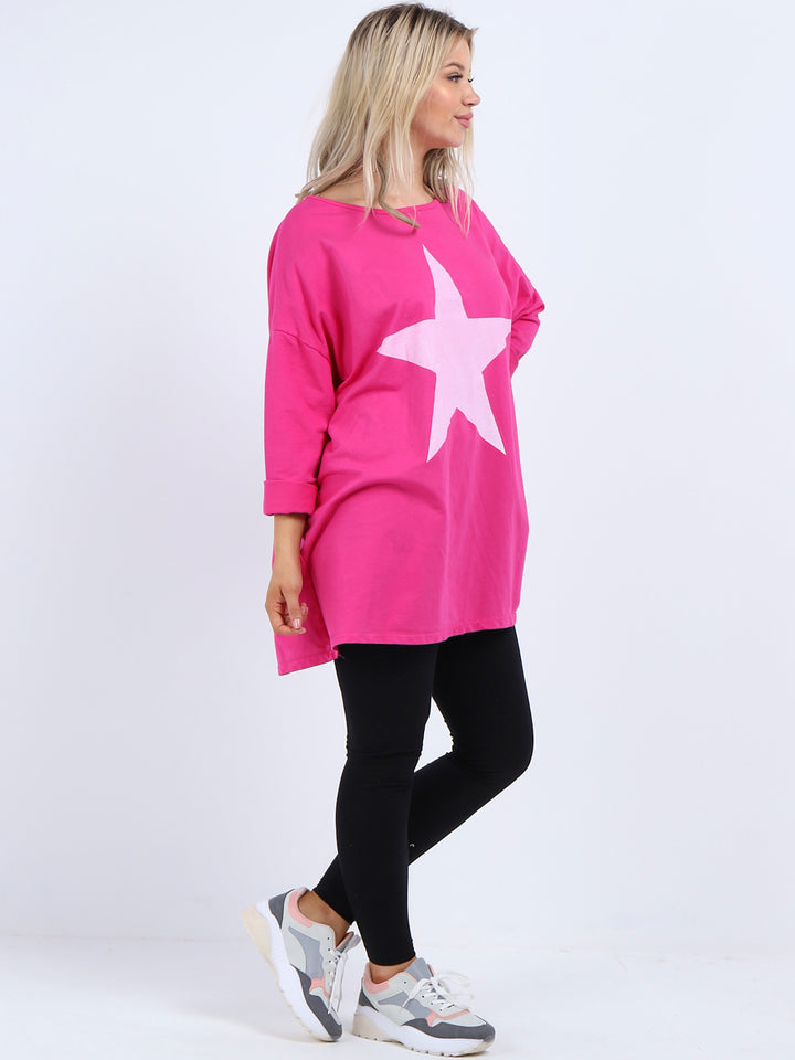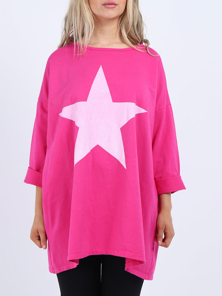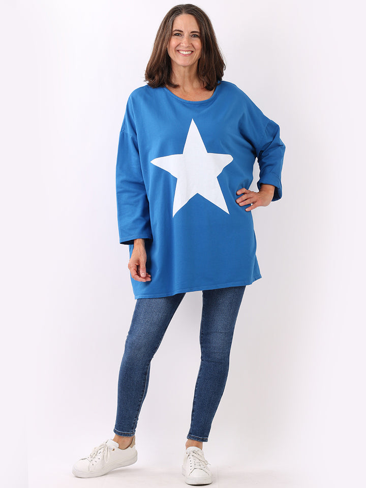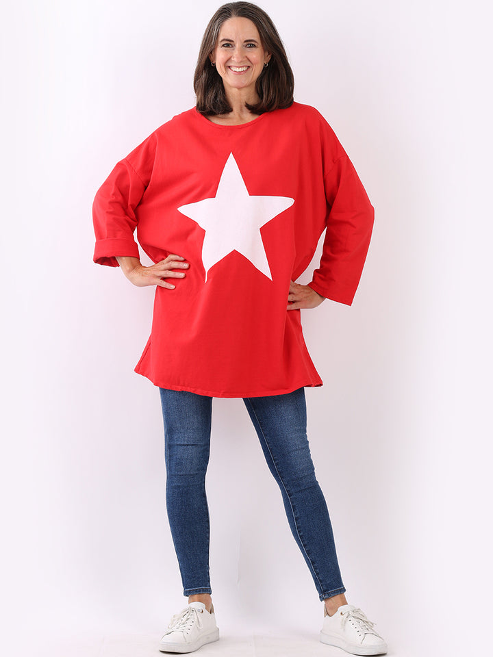 Style with simplicity is making this article more adoring and worth buying. Vibrant Color range and its baggy style would give wearer a modish, chic look. This Top with its star print at fornt presents a beautiful blend of modesty, style and simplicity.
