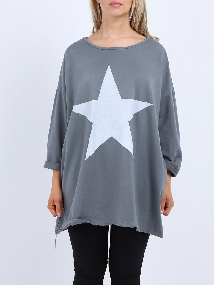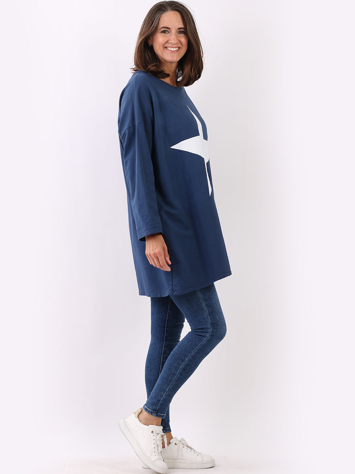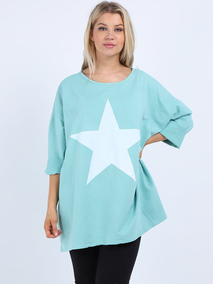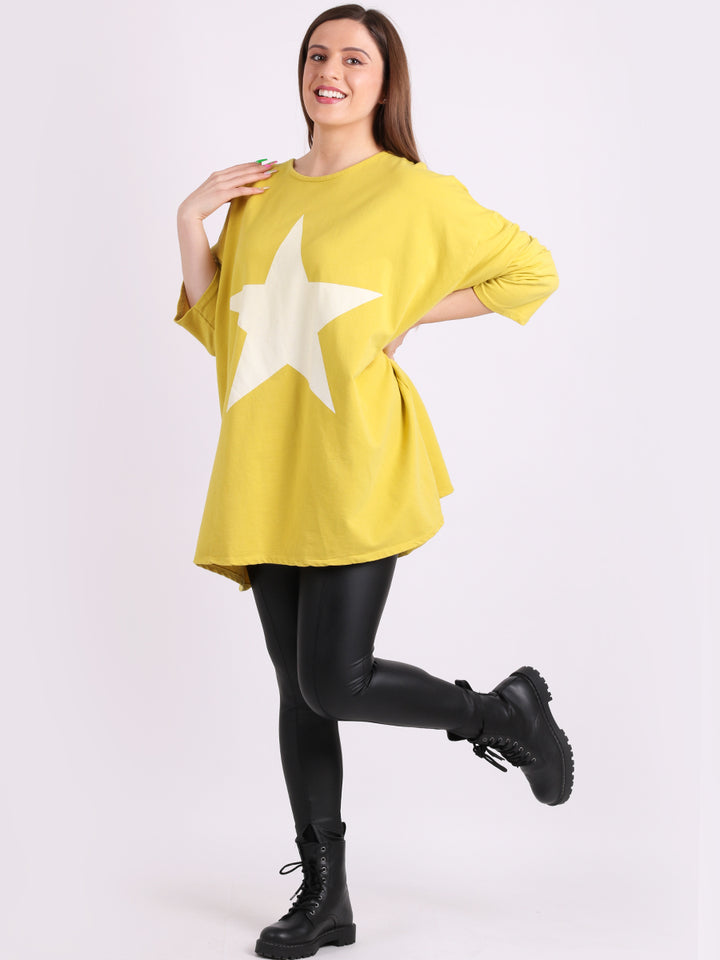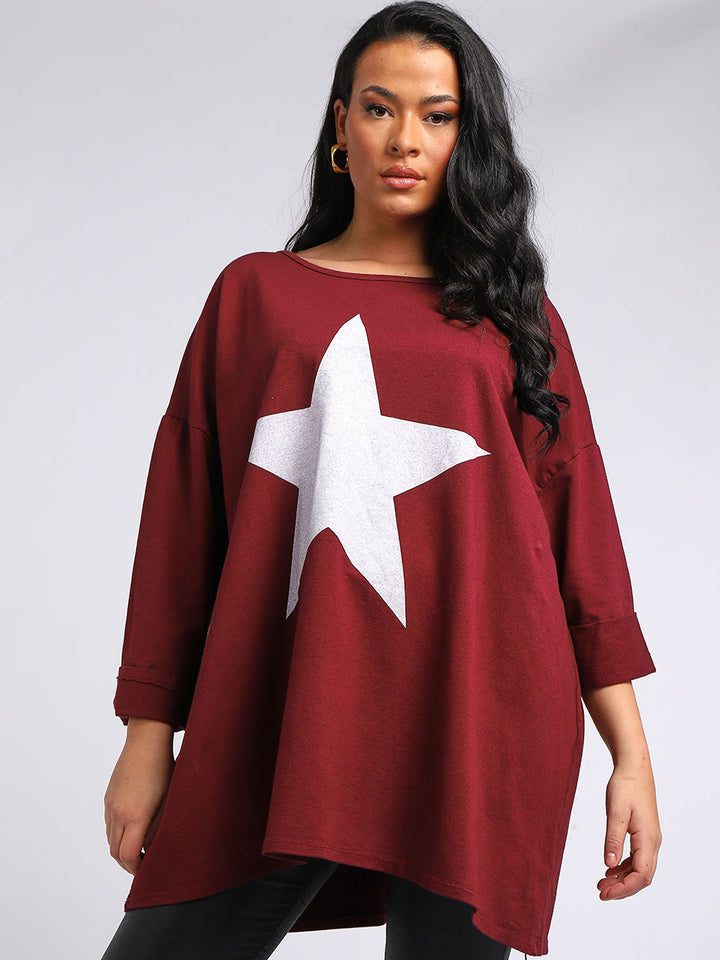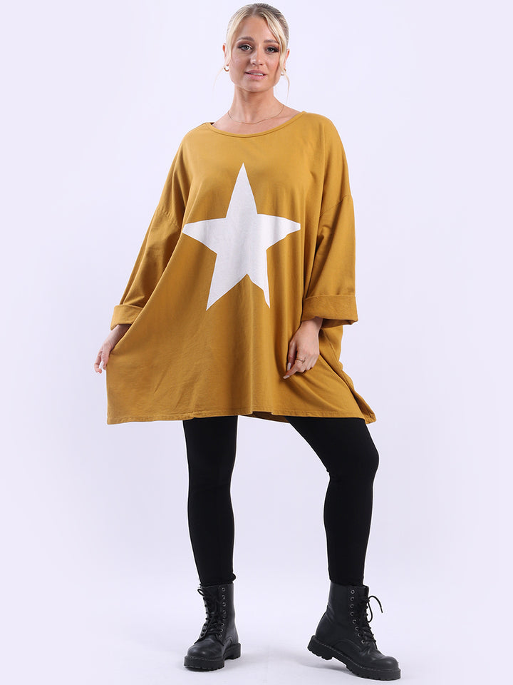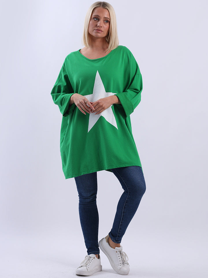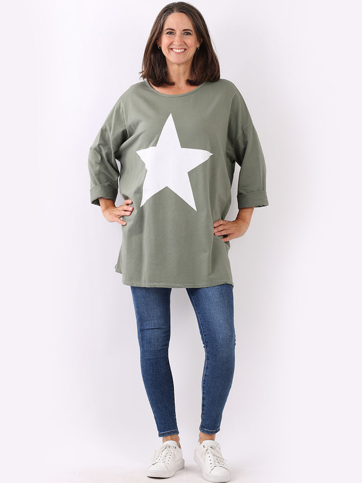 Style with simplicity is making this article more adoring and worth buying. Vibrant Color range and its baggy style would give wearer a modish, chic look. This Top with its star print at fornt presents a beautiful blend of modesty, style and simplicity.