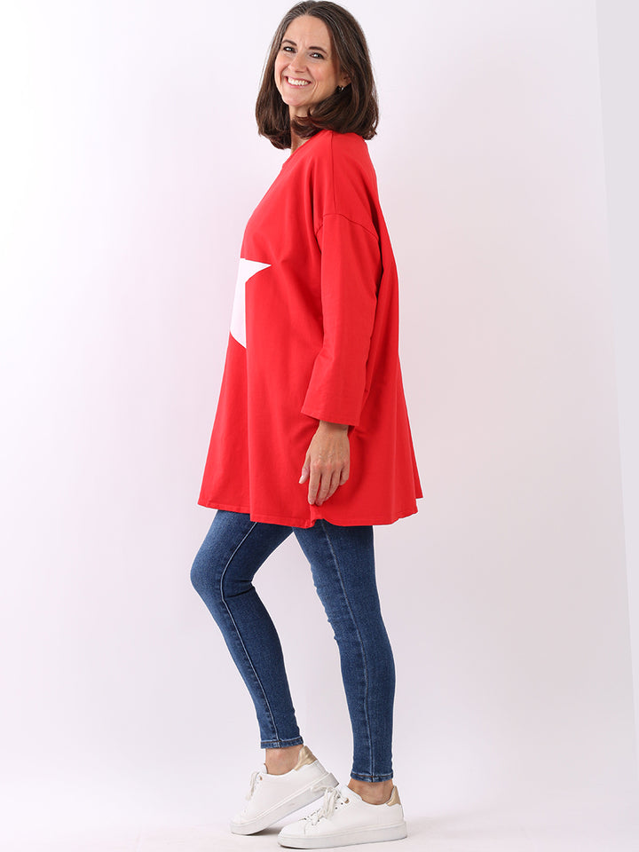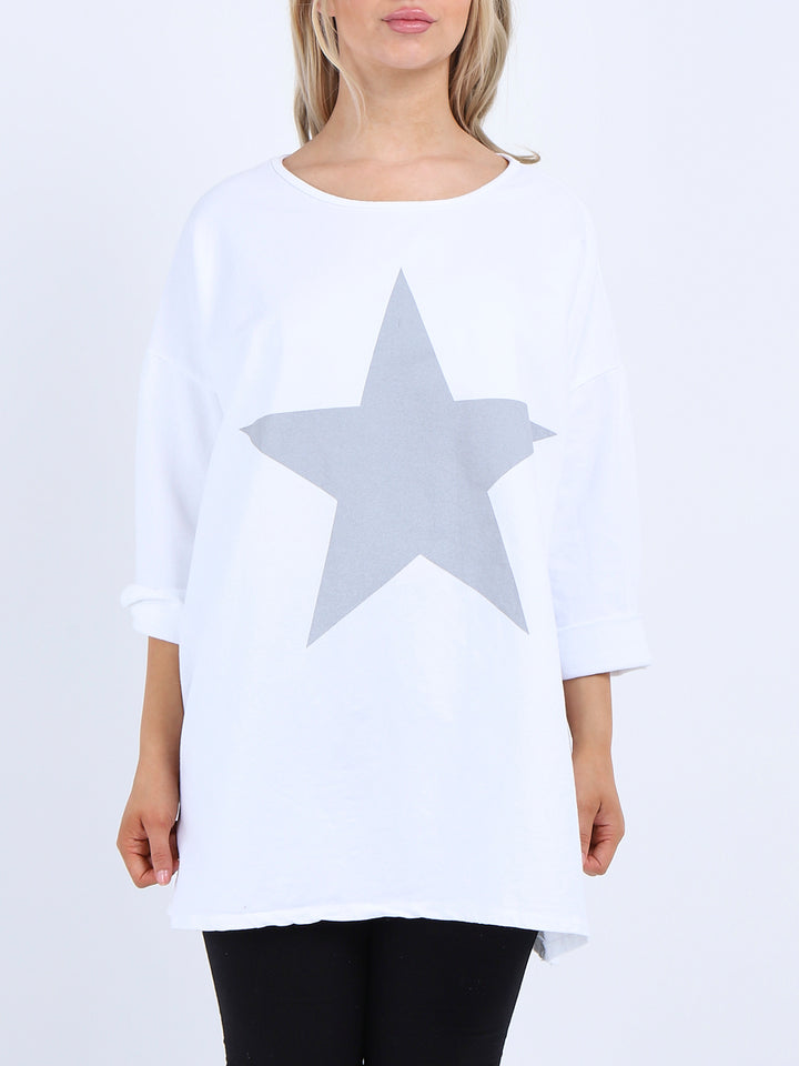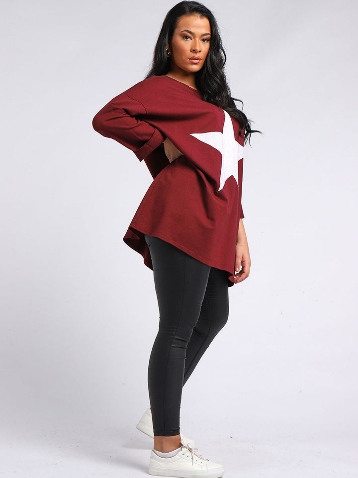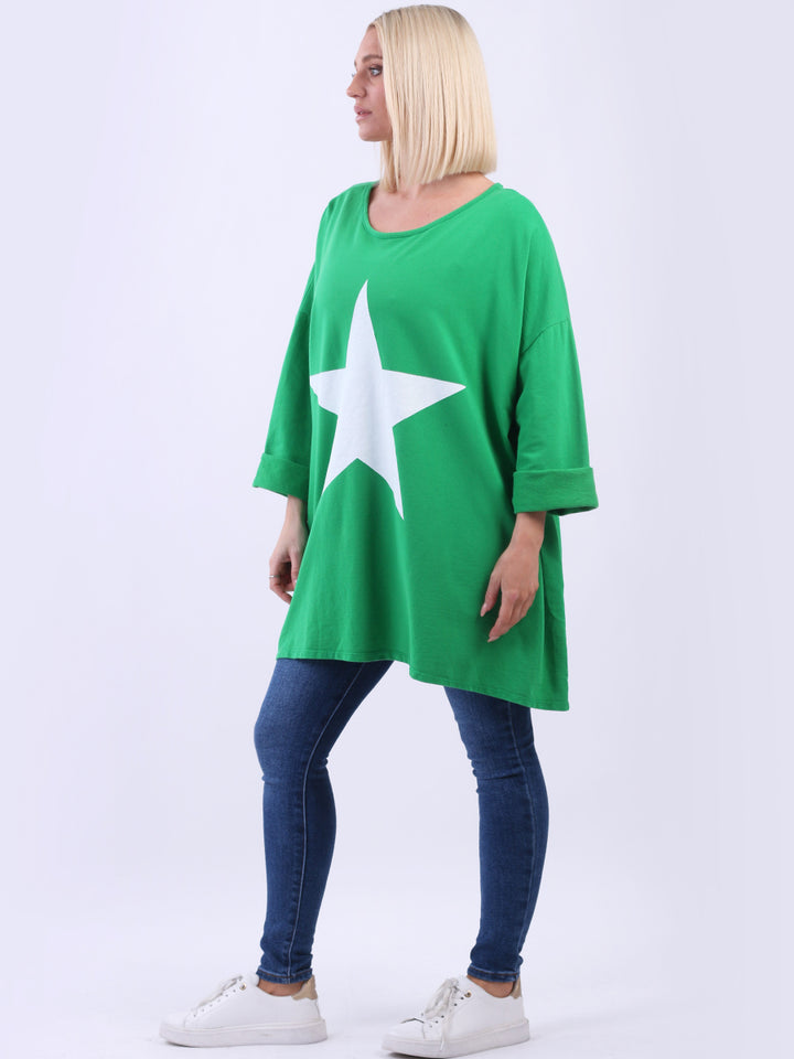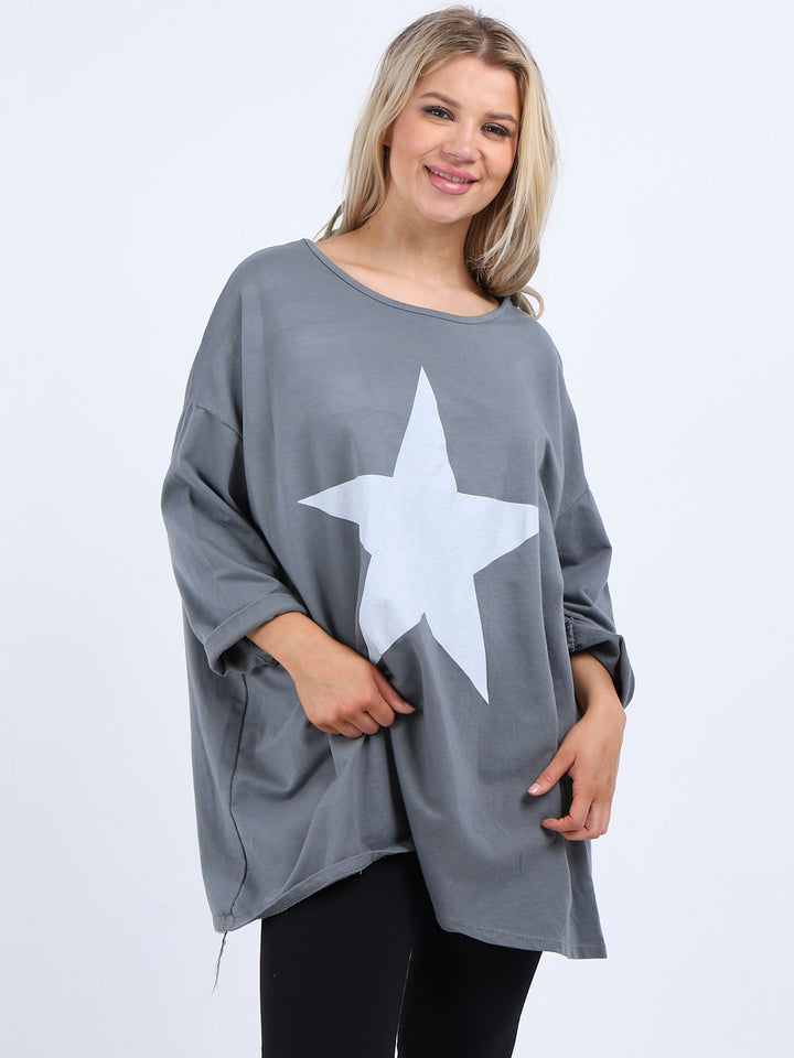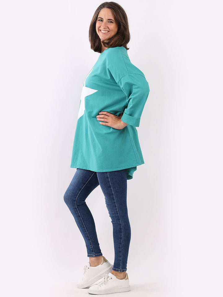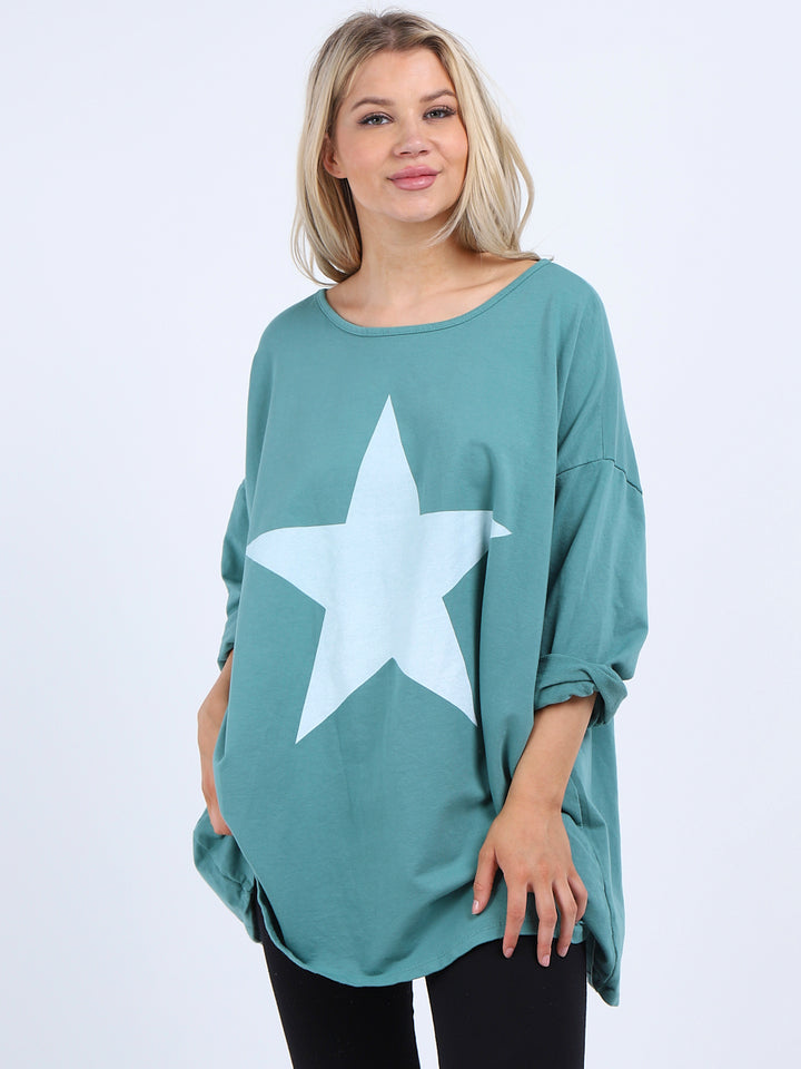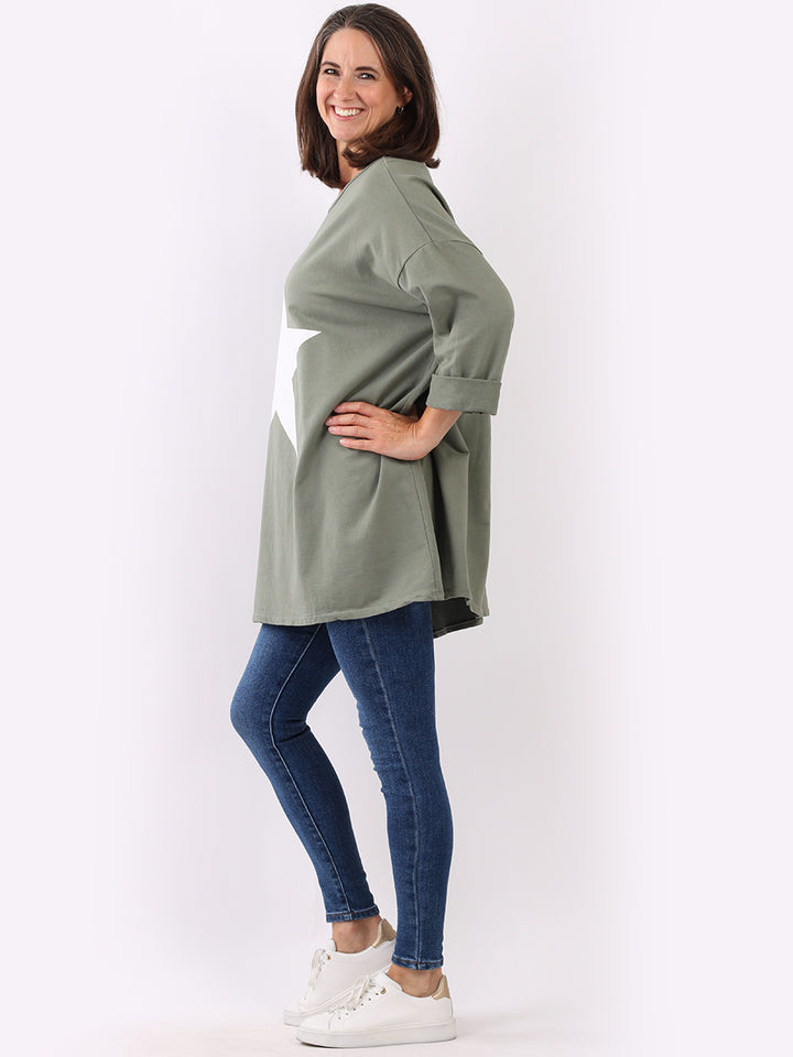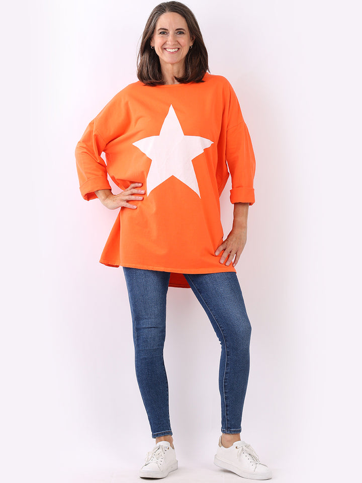 Style with simplicity is making this article more adoring and worth buying. Vibrant Color range and its baggy style would give wearer a modish, chic look. This Top with its star print at fornt presents a beautiful blend of modesty, style and simplicity.