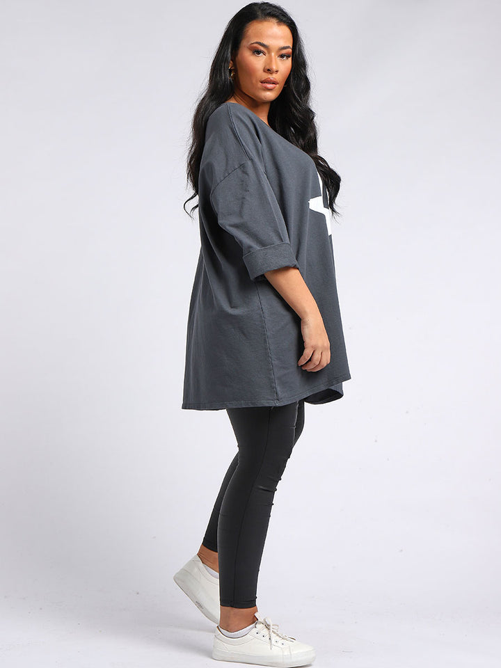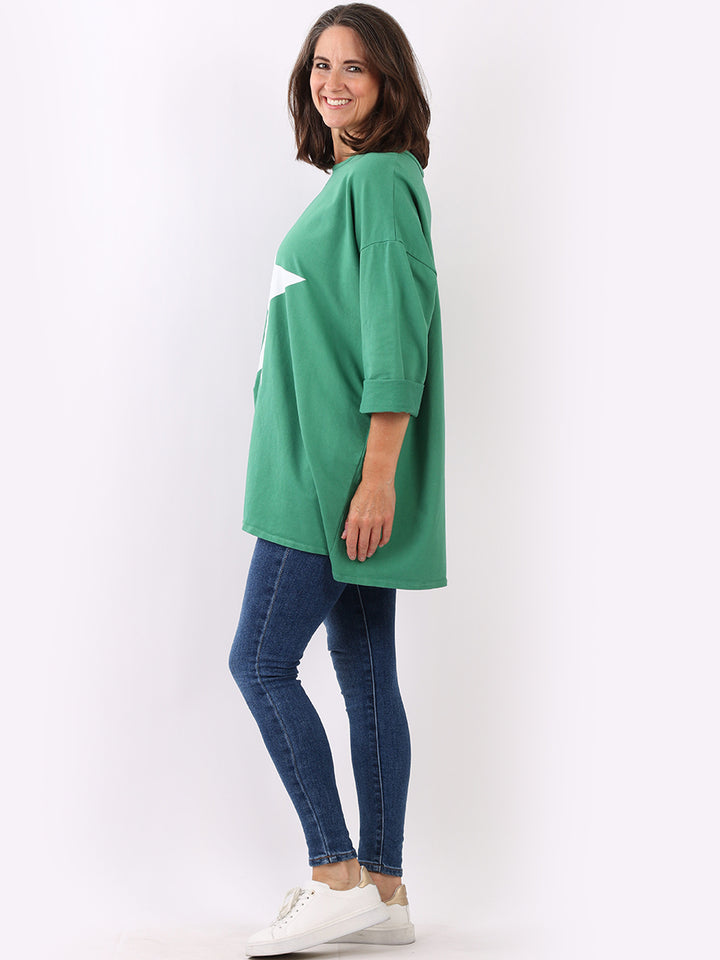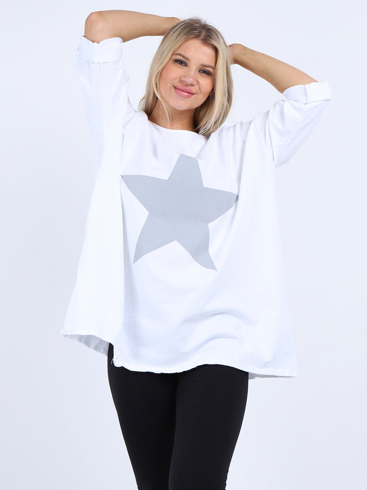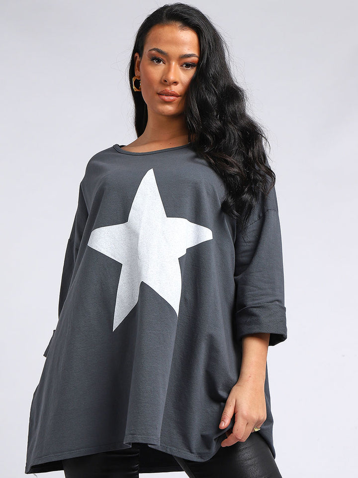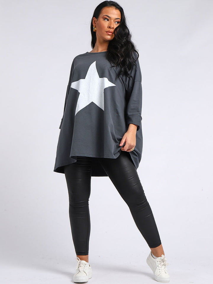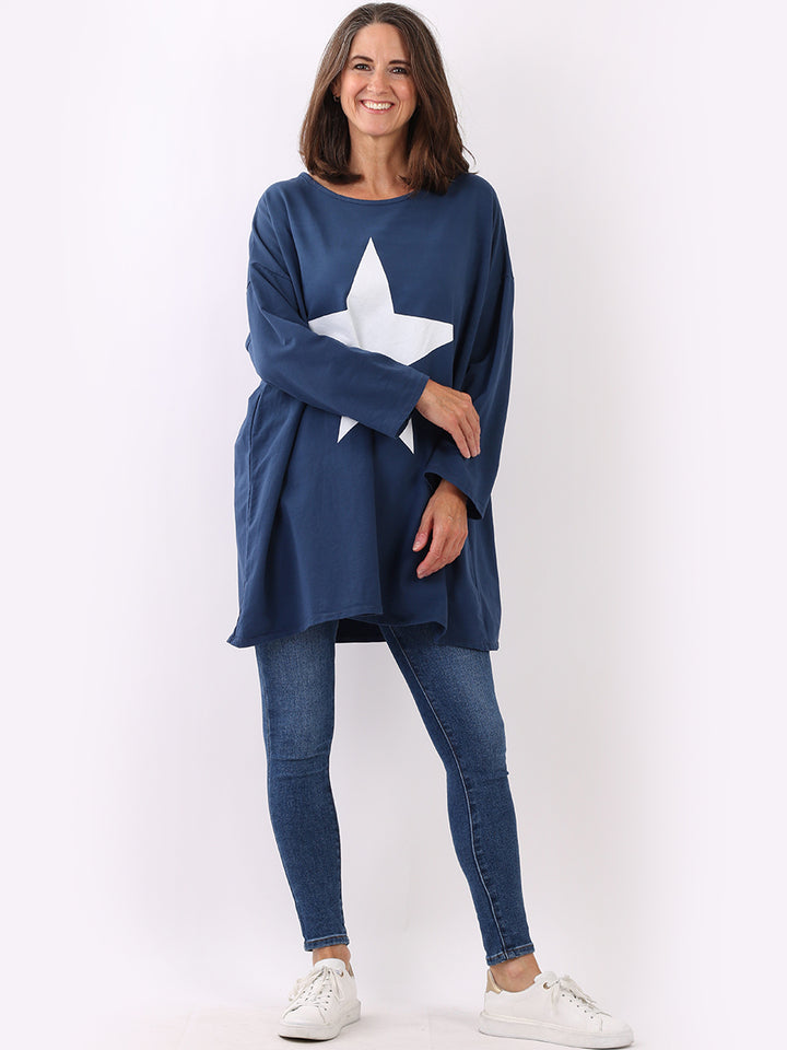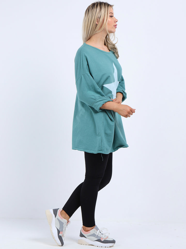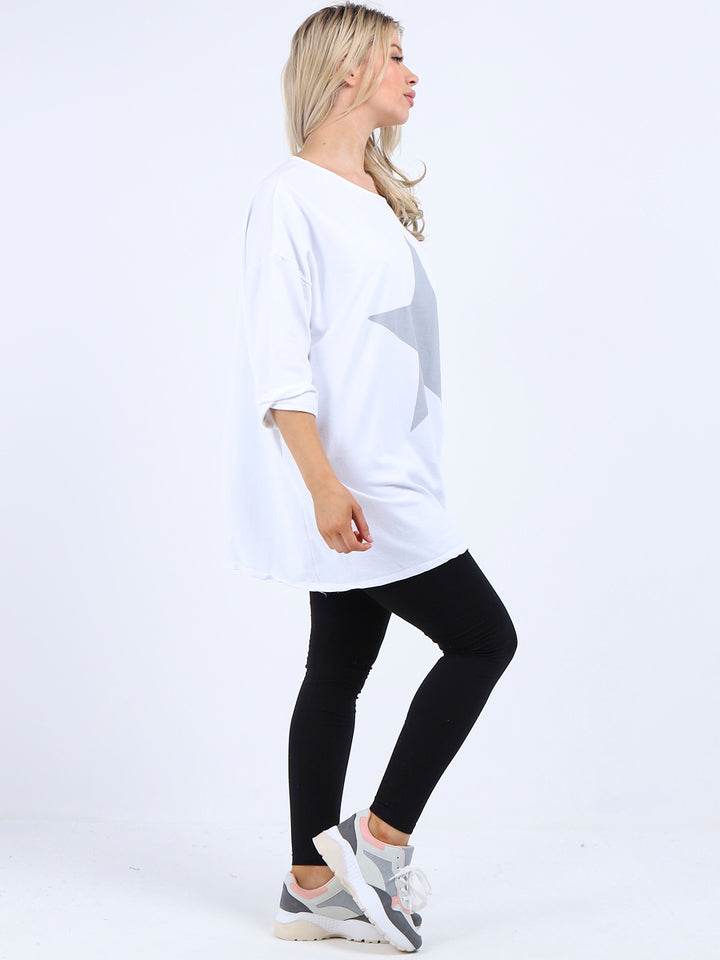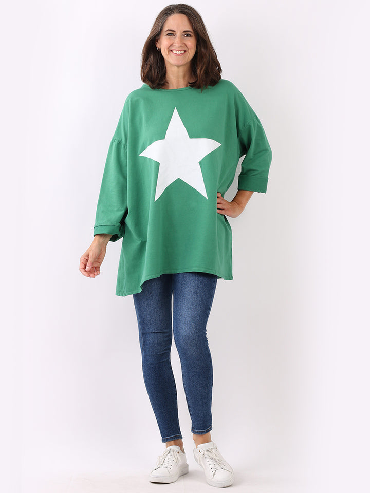 Style with simplicity is making this article more adoring and worth buying. Vibrant Color range and its baggy style would give wearer a modish, chic look. This Top with its star print at fornt presents a beautiful blend of modesty, style and simplicity.