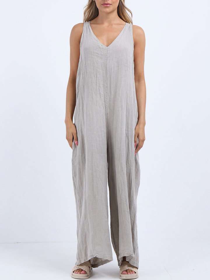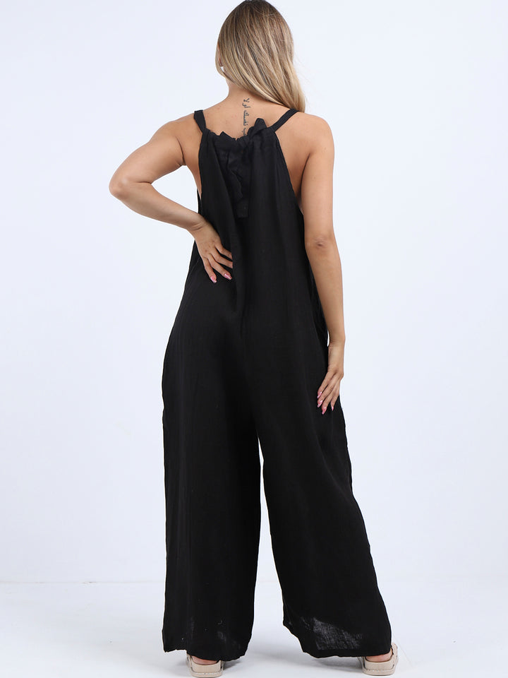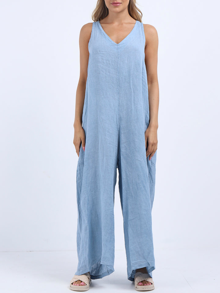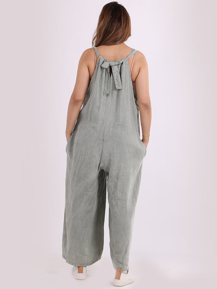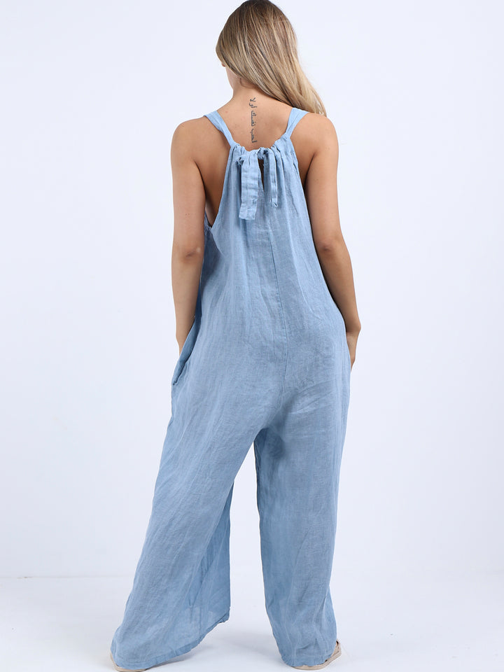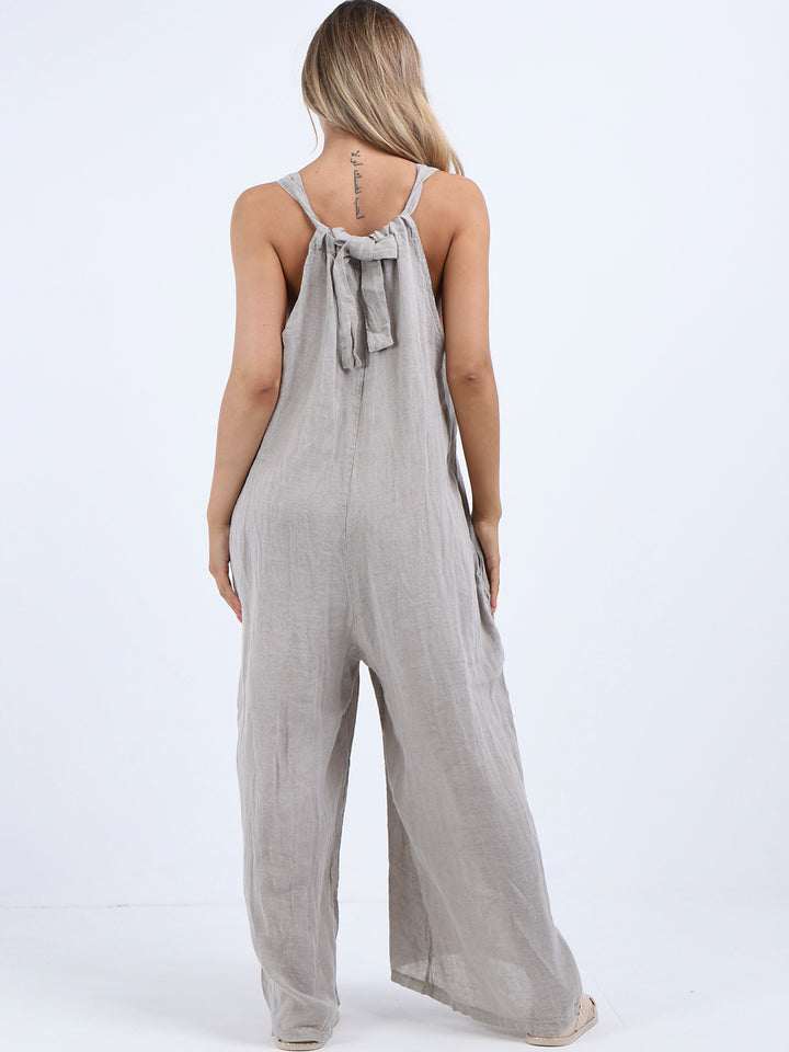 Plus Size Sleeveless Backside Knot Wide Leg Linen Jumpsuit