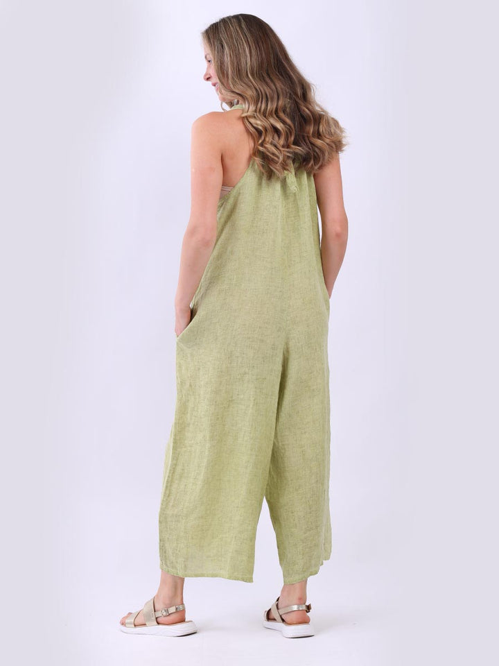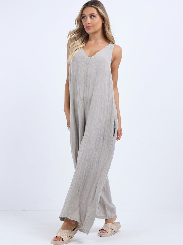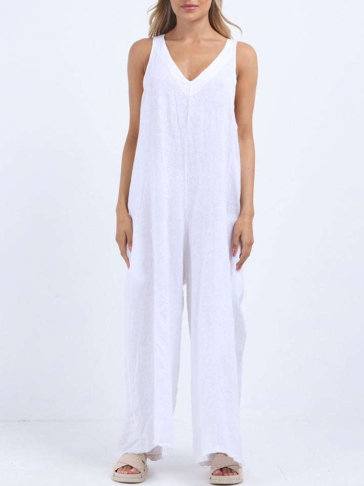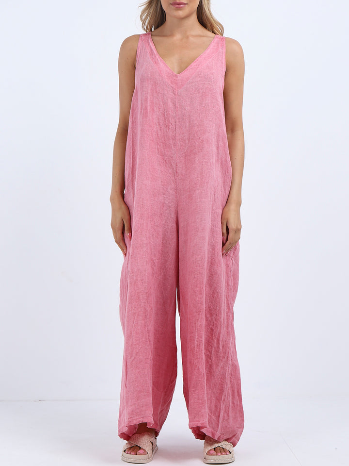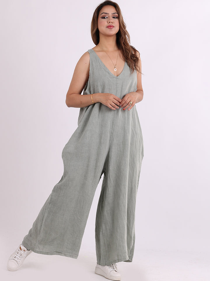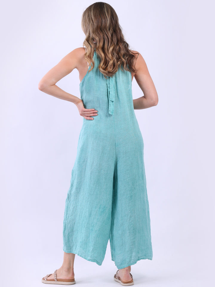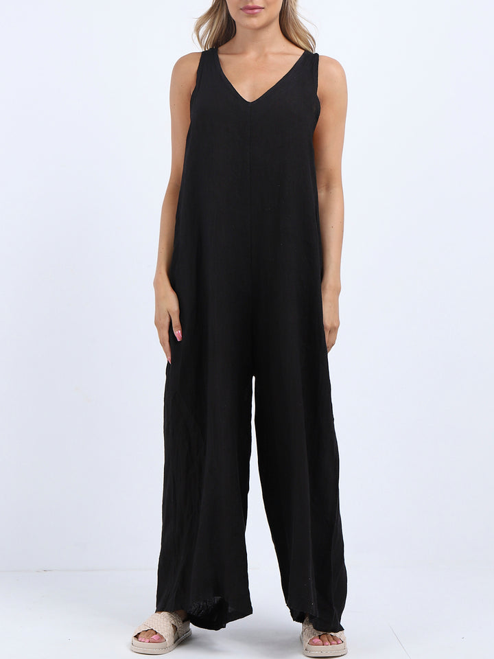 Plus Size Sleeveless Backside Knot Wide Leg Linen Jumpsuit