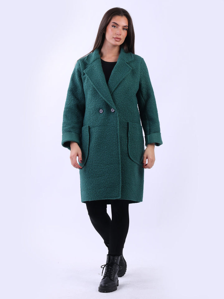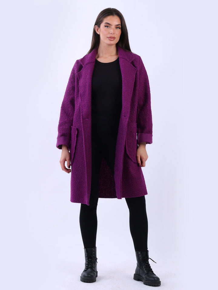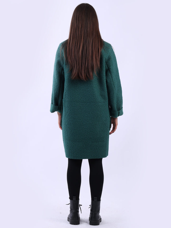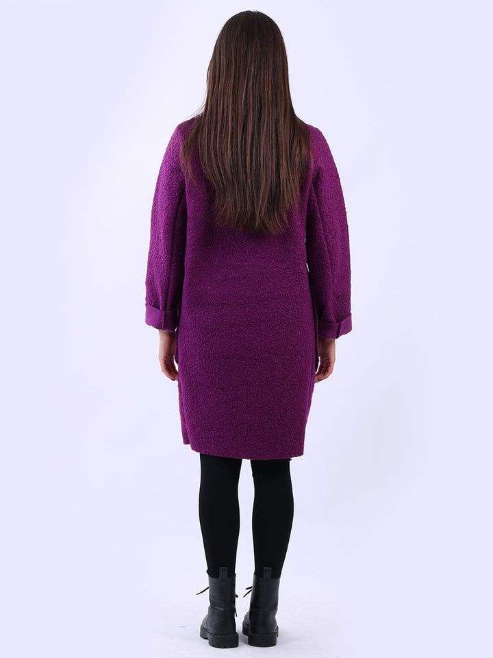Plus size and lagenlook, this women's solid coat offers a bold statement for fall and winter fashion. The woolen texture and oversized fit make it ideal for layering, adding warmth and a touch of formality to any outfit. Ladies will appreciate its clean lines and timeless cut. Suitable for formal and casual occasions it is a true staple.