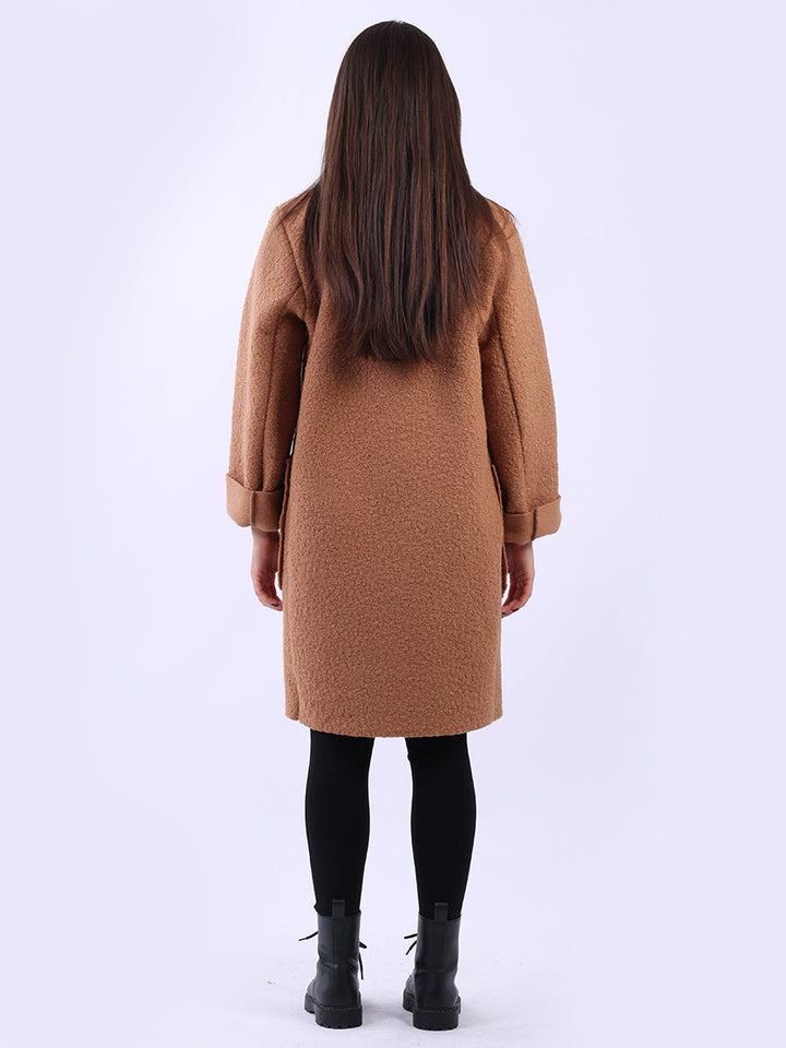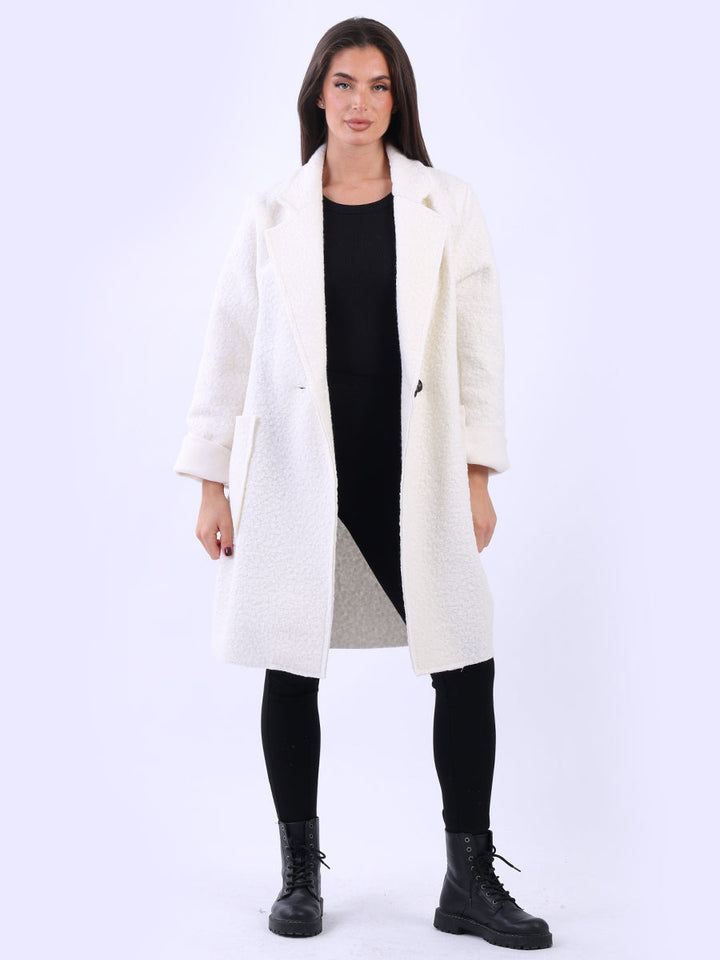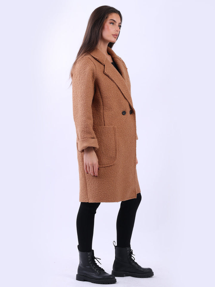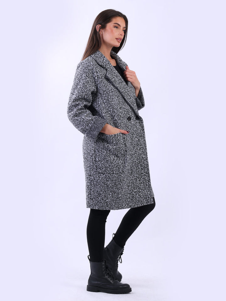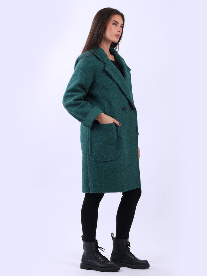 Plus size and lagenlook, this women's solid coat offers a bold statement for fall and winter fashion. The woolen texture and oversized fit make it ideal for layering, adding warmth and a touch of formality to any outfit. Ladies will appreciate its clean lines and timeless cut. Suitable for formal and casual occasions it is a true staple.