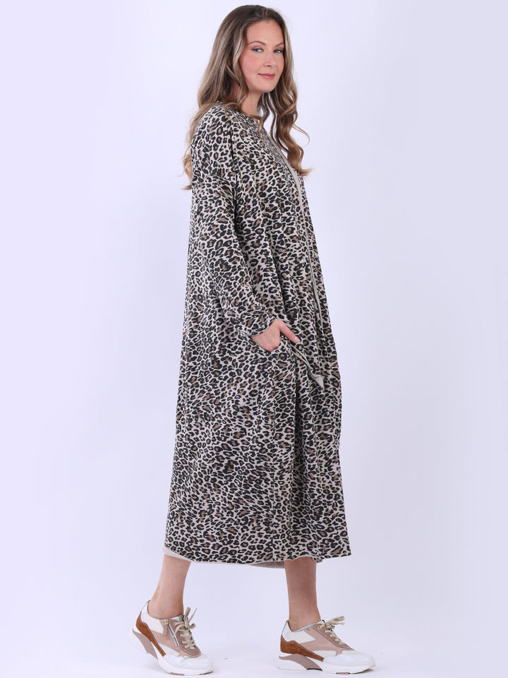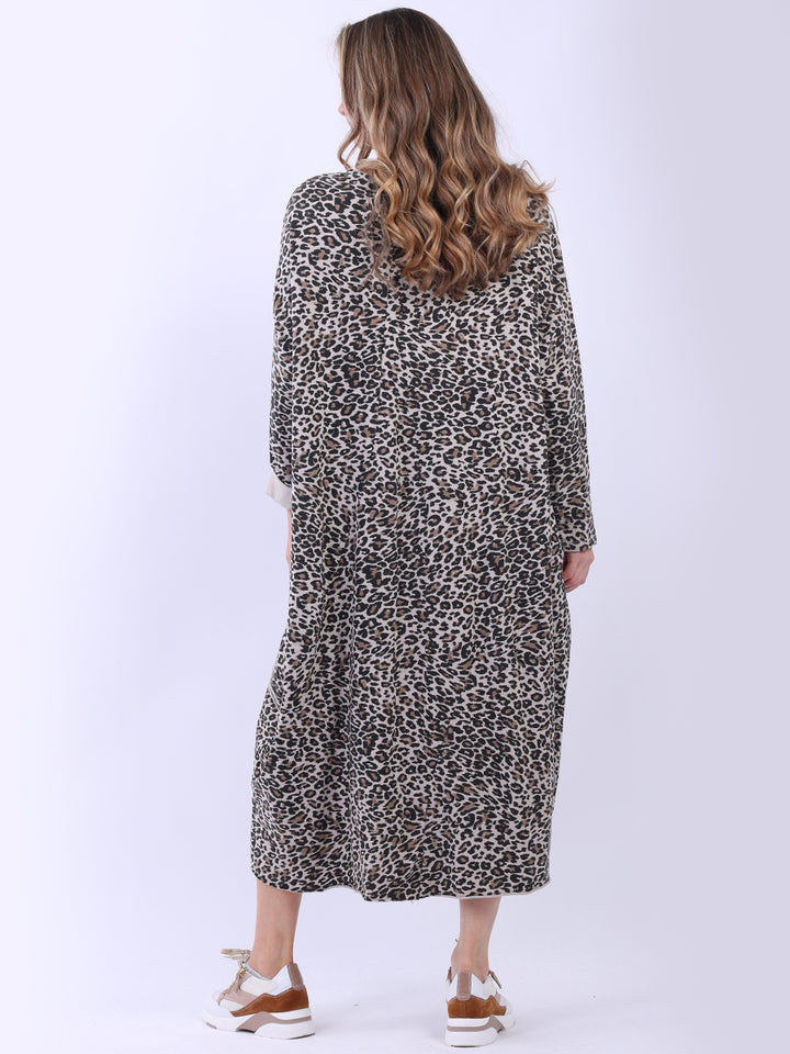 Women wearers who enjoy a pop of pattern in their wardrobe will appreciate this oversized leopard print dress. It’s designed with a loose fit, ideal for plus-size ladies looking to stay chic in cooler weather. This slouchy piece brings a touch of fun to a casual look, making it perfect for fall/winter outings.
