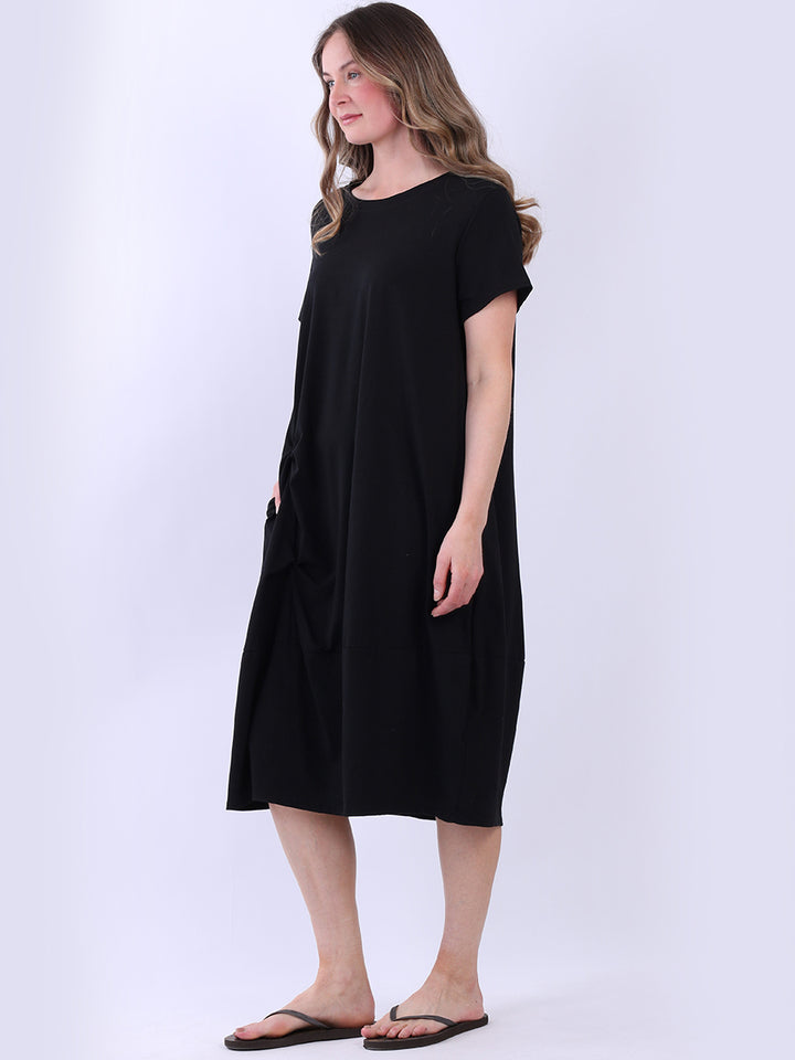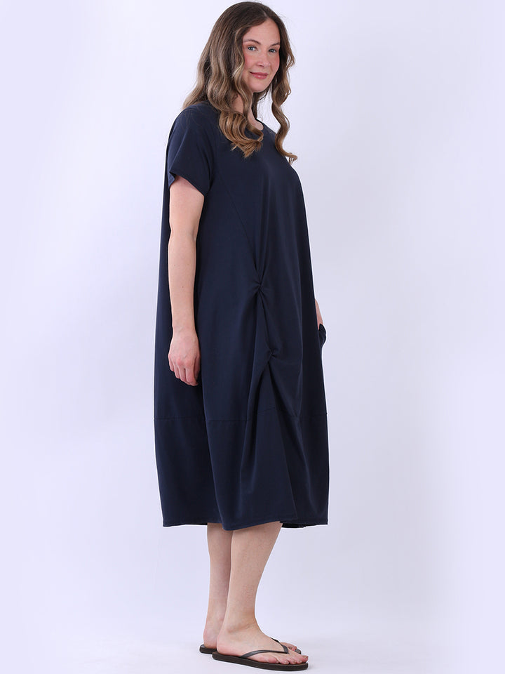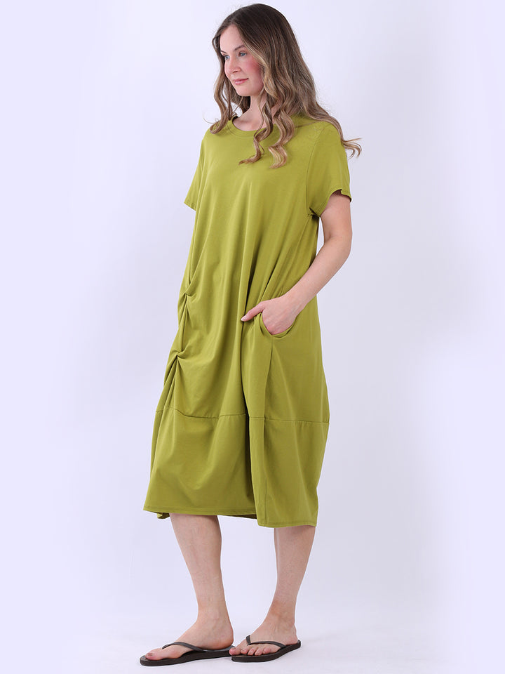 Simple yet striking, this cotton dress provides a plus-size fit and an attractive ruched detail. Its solid tone brings summer brightness, and its laid-back, casual fit suits ladies looking for easy, breathable clothing.