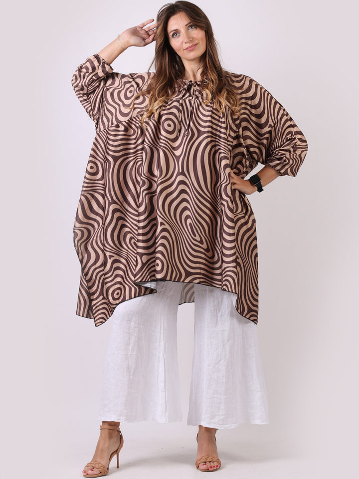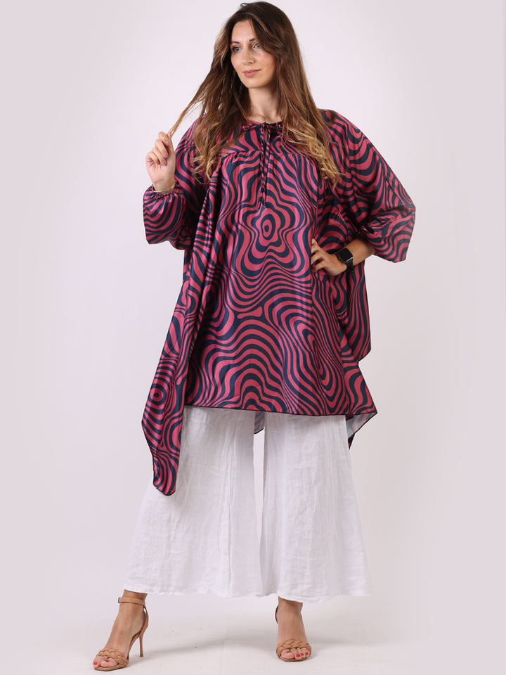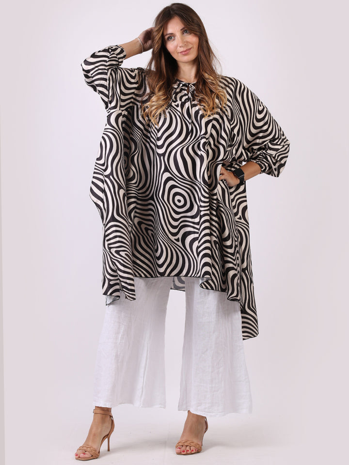 A delightful addition to the women's fashion wardrobe with essential features and iconic finish. Made in Italy with fine durable fabric, this dress is crafted by Redwholesale, a plus size womens clothing store in UK. This ladies tunic comes with an adventurous zebra print, plunging round neckline with a tie knot, baggy oversized fit and batwing balloon sleeves with kaftan style. Dress it with leather leggings and long boots for a casual Italian fashion look.