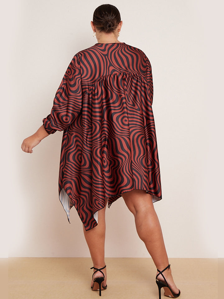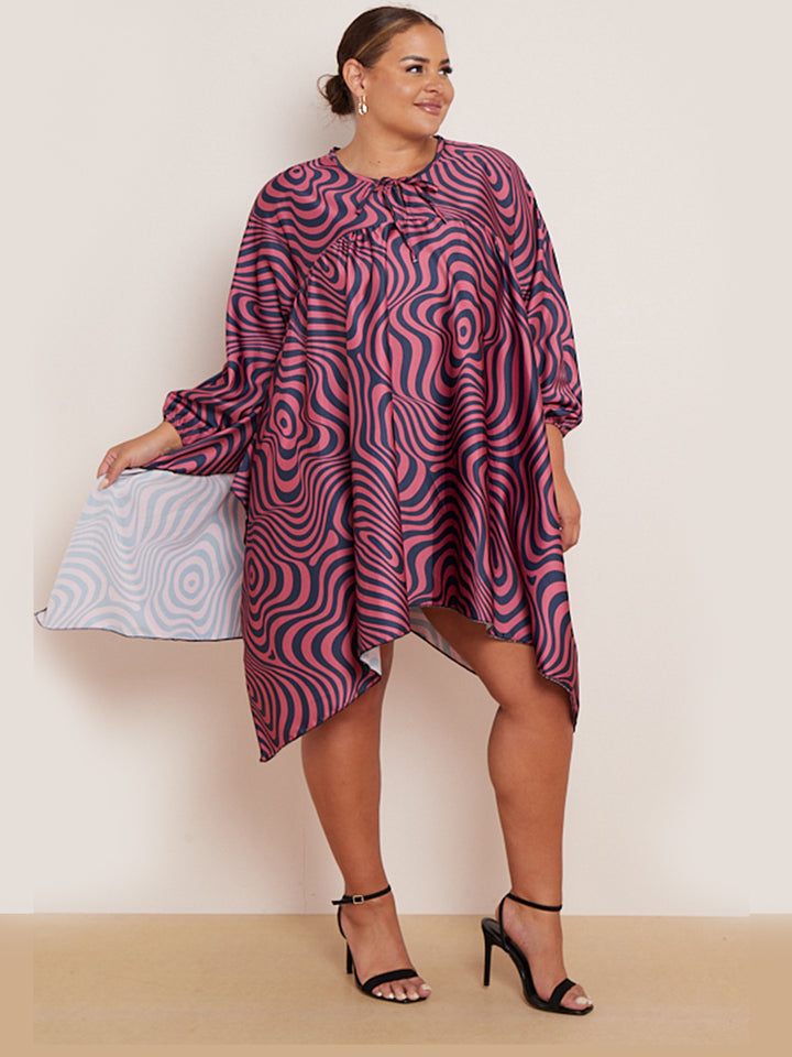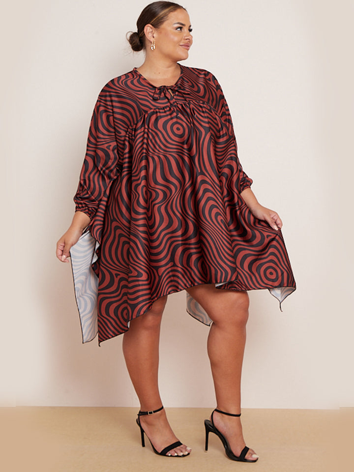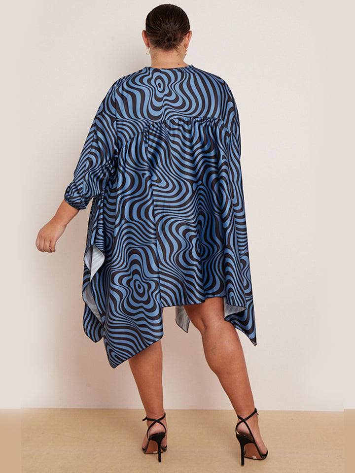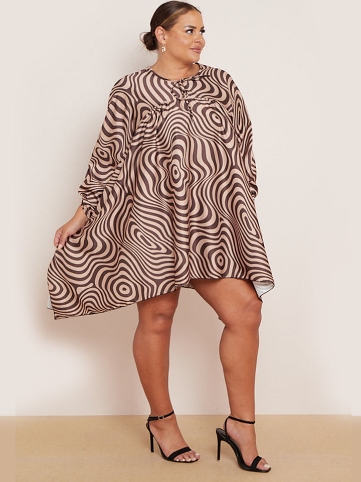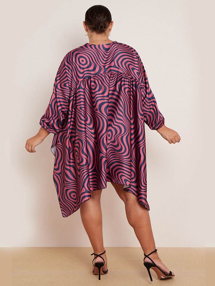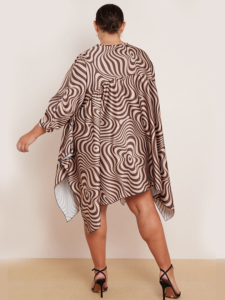 Plus Size Zebra Print Batwing Balloon Sleeves Tunic Kaftan Dress