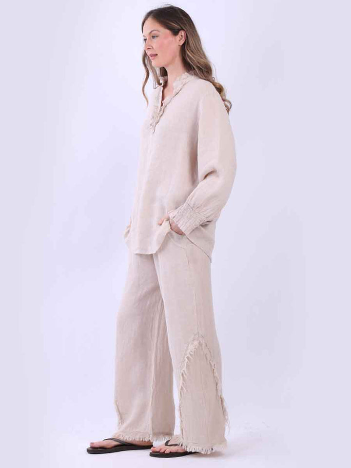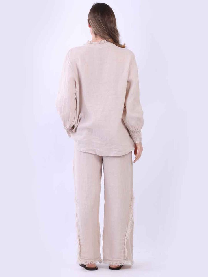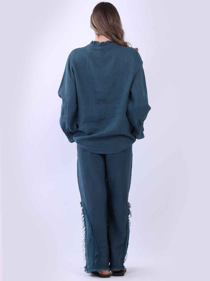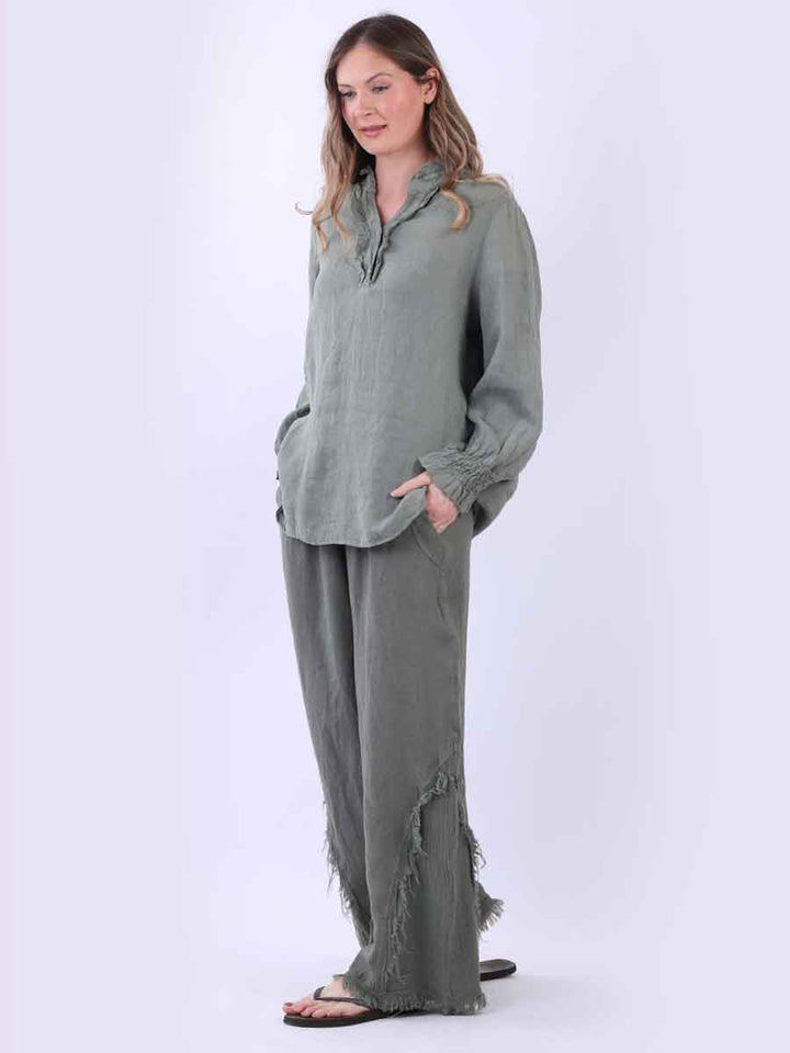 Ruffle Trim Solid Linen Lagenlook Top