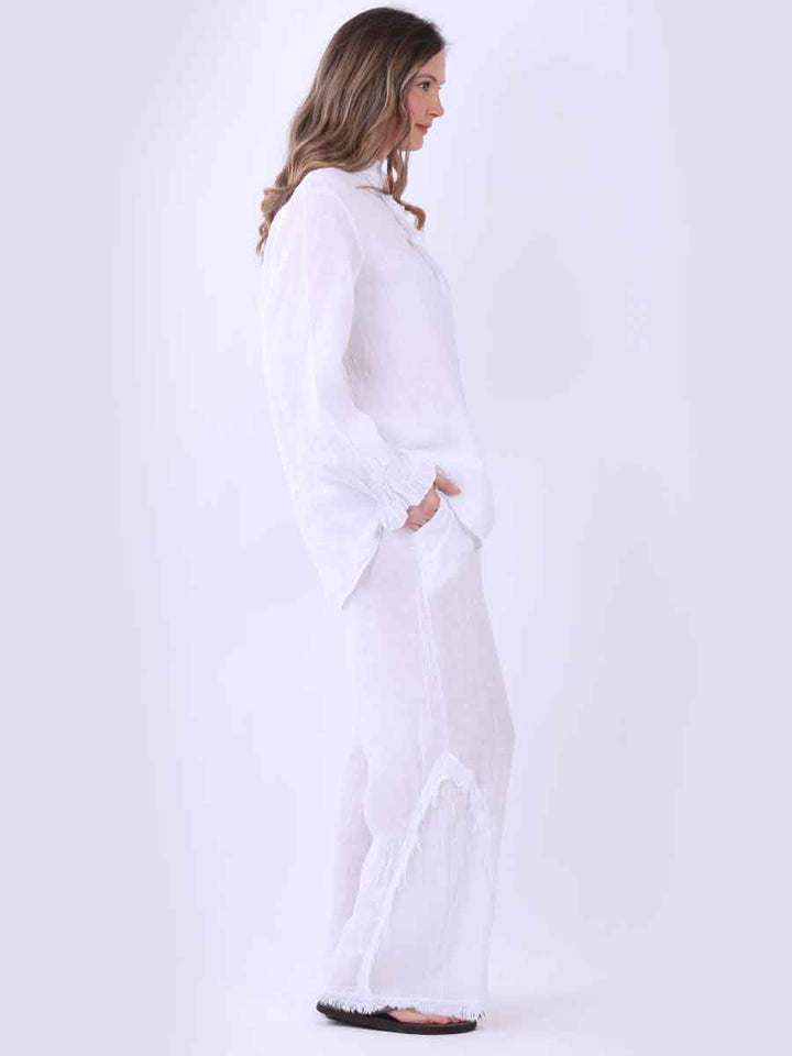 Redwholesale UK presents this top, meant for easy elegance. This made-in-Italy solid lagenlook blouse with ruffles is all about relaxed sophistication and airy comfort. Any summer wardrobe would benefit from this dreamy addition made from the soft, breathable linen fabric. Perfect for warm days and a laid-back style, it has a classic appeal and relaxed fit.